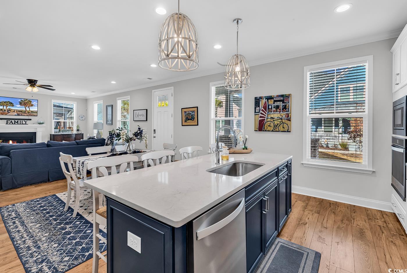 Wow! This stunning home in Longwood Bluffs Parkview section offers the ideal blend of comfort, convenience, and coastal living. It may just be the ideal floorplan with open concept living and primary bedroom suite on the main floor, with guest areas upstairs. Enjoy a low-maintenance lifestyle with HOA-managed lawn care, annual power washing, and fresh mulchperfect for full-time residents or a worry-free second home. Designed for a strong sense of community, the Parkview section features front sidewalks, shared green spaces, cozy sitting areas, and an outdoor fireplace. Residents also enjoy resort-style amenities including two pools, multiple pickleball & tennis courts, basketball, and nearby walking paths. Like new, this upgraded home features 3 oversized bedrooms, 2.5 baths, and a large upstairs bonus room ideal for a home office or additional guest space. The chefs kitchen stands out with white quartz countertops, a beautiful tile backsplash, a custom walk-in pantry, and extensive cabinetryincluding storage under the island. A privately located screened-in porch with epoxy flooring offers year-round enjoyment of the coastal climate. Or relax on the front porch. The first-floor primary suite features two spacious walk-in closets and an ensuite with a large tiled & glass enclosed shower and double vanity. Highlights include a Rinnai tankless water heater, natural gas fireplace, range, KitchenAid convection oven/microwave combo, gas heat, ceiling fans with lights in every room, and abundant natural light from the oversized windows. All appliances are included. At the rear of the home is a two-car garage plus an additional full garage that provides ample storage and is perfect to house a golf-cart. Located minutes from top golf courses, popular beaches, shopping, dining, and everyday conveniences, this home truly offers it all.