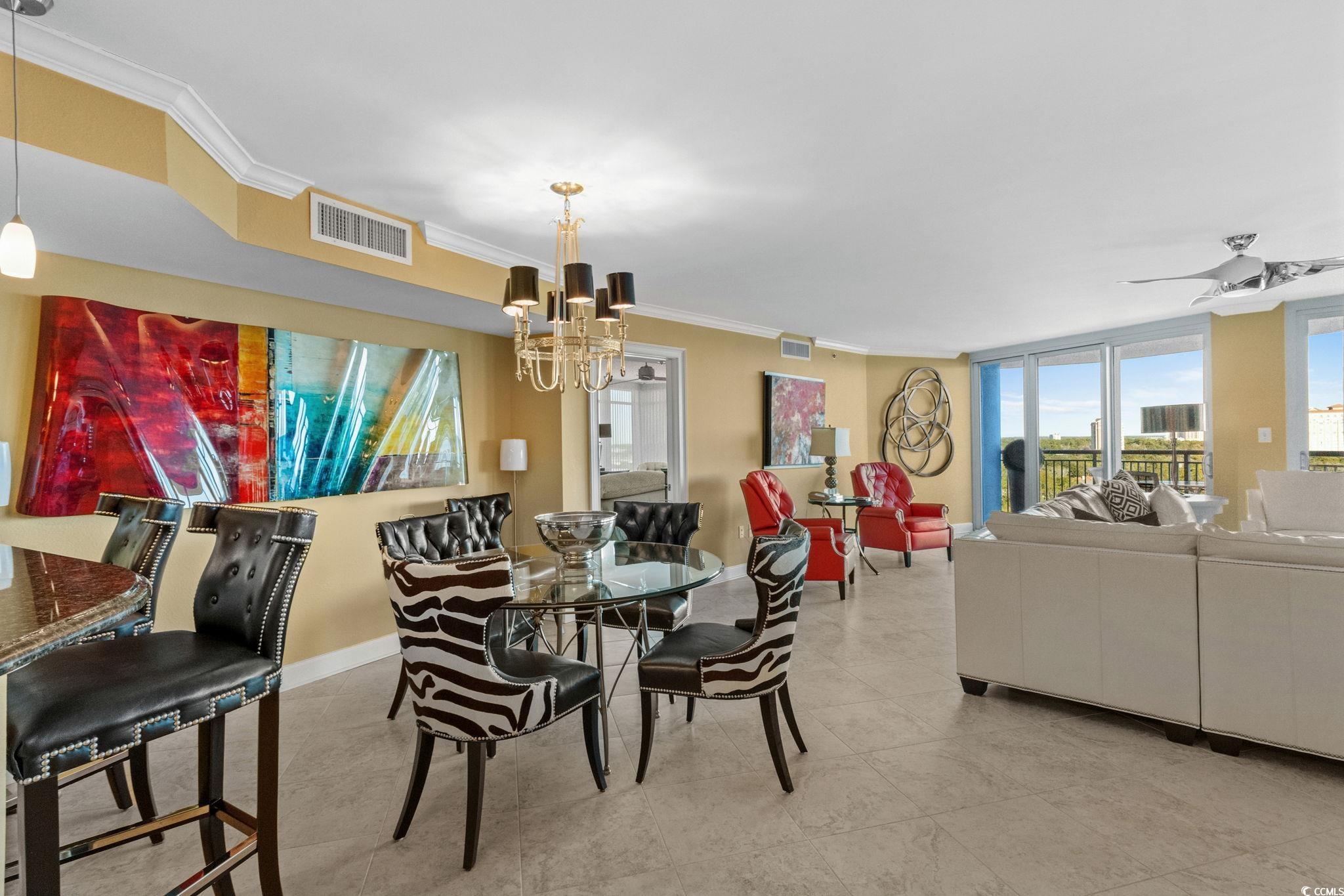 Experience spectacular ocean views from this spacious, professionally designed Corner unit, 2-bedroom, 3.5-bath condofully furnished with high-quality, top-name-brand pieces and offered completely all-inclusive. Relax on your private balconies where lush greenery meets the white sands of the Atlantic, creating the perfect backdrop for East and West views, morning coffee, or sunsets. The kitchen has Stainless steel appliances, granite countertops, a breakfast bar, and best of all, views overlooking the dining table, living room, and looking straight out to the blue skies and ocean. Inside, you have modern style meets comfort with luxurious upgrades throughout, offering a bright, open layout ideal for both everyday living and entertaining. There are plenty of closets for storage and an owner's closet that has electric for storage right outside the main entrance to the unit for easy access for bikes, etc. The Horizon Building offers ample gated garage parking, key-card-secured elevators, and overnight security. Resort-style amenities include indoor and outdoor pools, a lazy river, a hot tub, a fitness center, and a rooftop terrace. The HOA covers nearly everything: electricity inside your unit, water and sewer, cable, internet, trash pickup, exterior structure insuranceeverything except your property taxes. This condo has only been used by the sellers as a second home and has never been rented. The unit oferrs a 3 bedroom configuration.