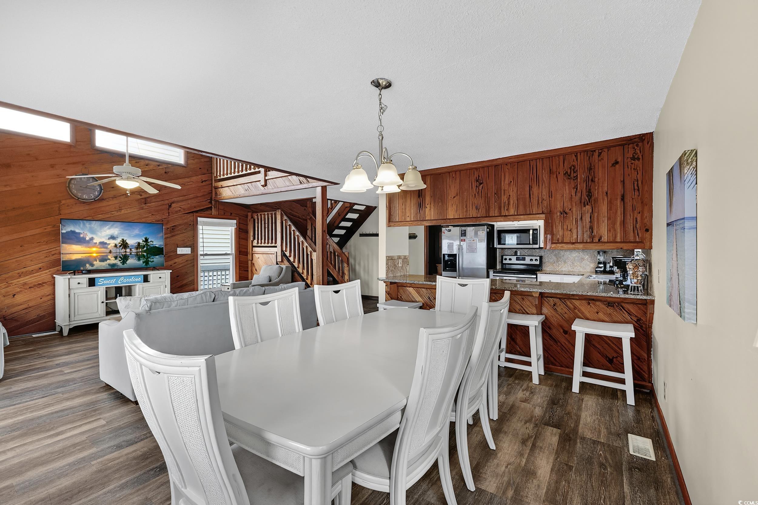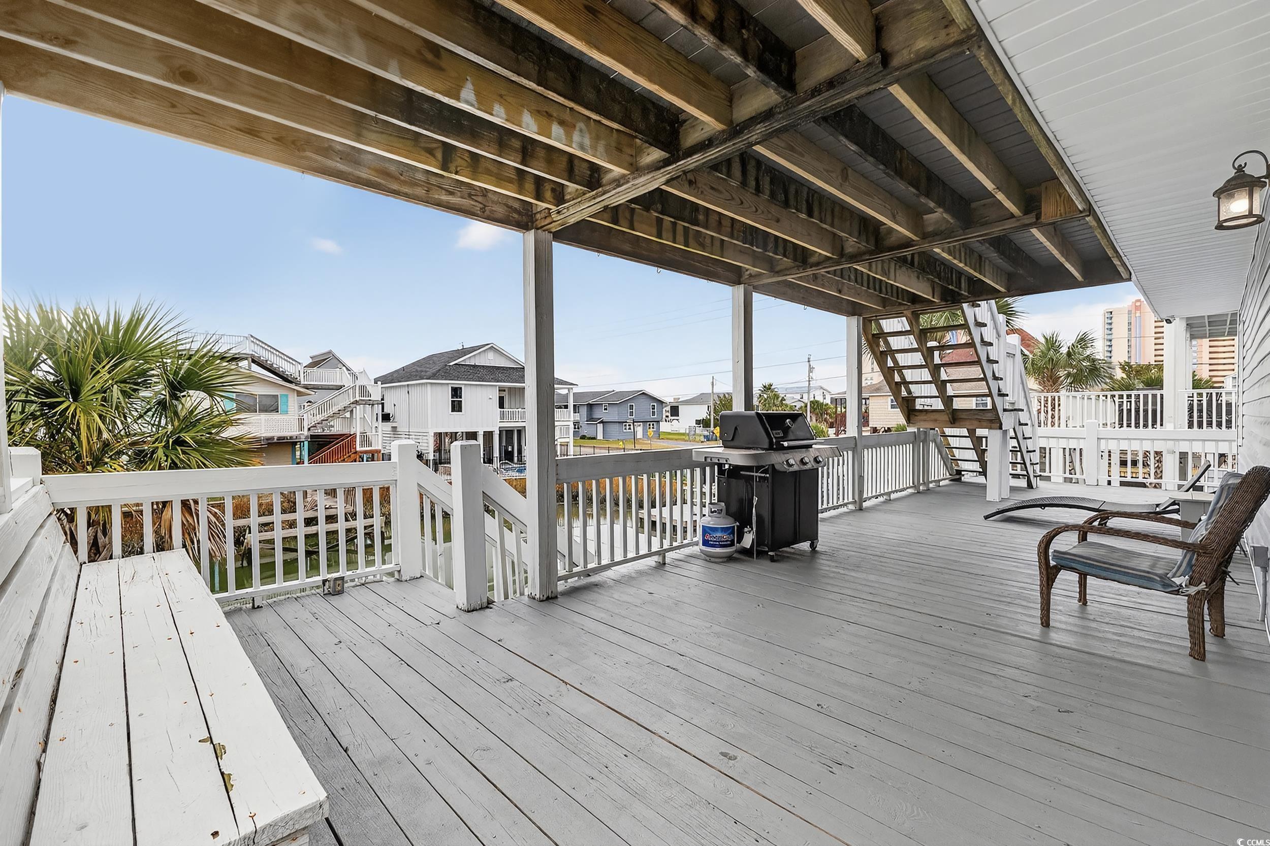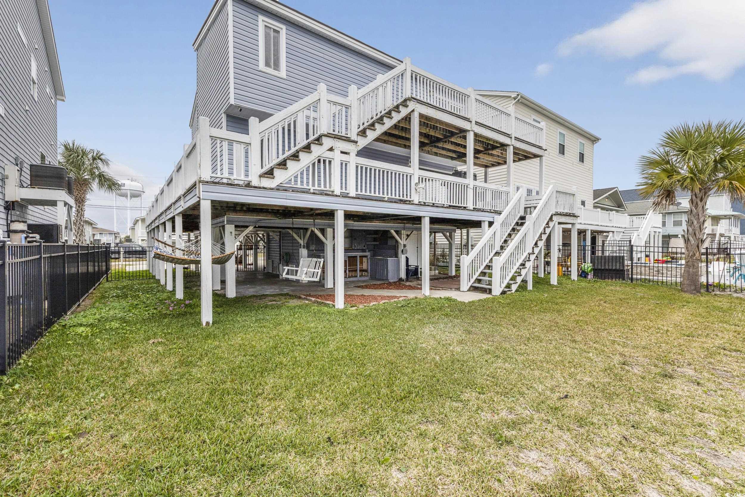 Welcome to Margaritavillea classic raised beach home in the highly sought-after Cherry Grove Beach community, perfectly situated on a peaceful canal and just an easy walk or golf cart to the beach and the beautiful Atlantic Ocean. This fully furnished 4-bedroom, 3-bath retreat delivers the ideal mix of coastal charm, comfort, and investment potential. Inside, youll find a spacious living area with LVP flooring, high vaulted ceilings, and a stunning wood accent wall and staircase that create a warm, inviting atmosphere. The large kitchen features granite countertops and stainless steel appliancesperfect for hosting family and friends or maximizing appeal for short-term rental guests. Enjoy outdoor living on the expansive two-level deck overlooking the canal, and rest easy with an updated bulkhead. The home also includes a 1-car garage and additional large workshop area for convenient storage of beach gear, golf carts, and more. With golf-cart access to Sea Mountain Hwy and Main Streets popular restaurants, bars, and shops, Margaritaville offers the ultimate Cherry Grove lifestylewhether for personal enjoyment or a strong rental investment potential. Call for your private showing today