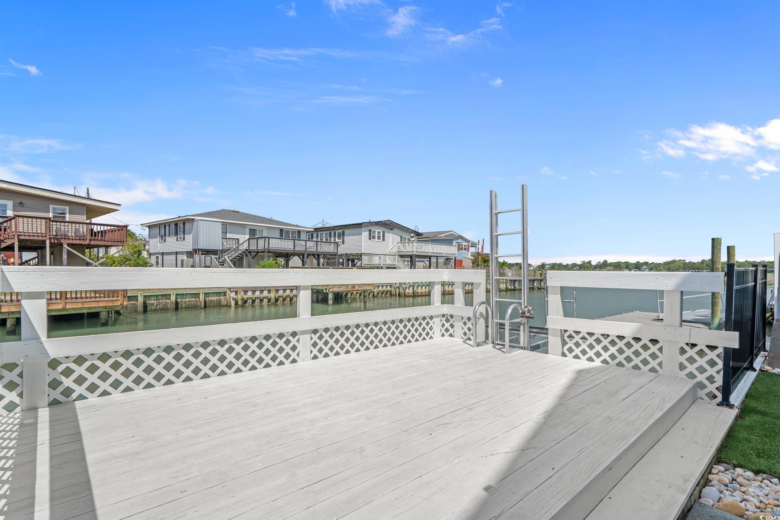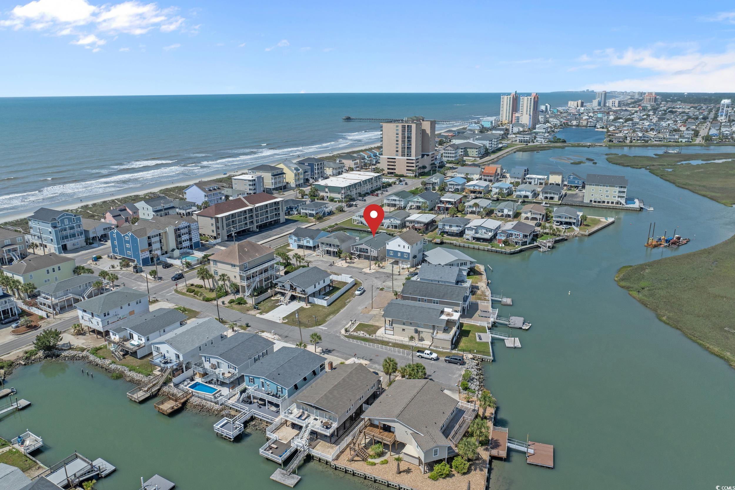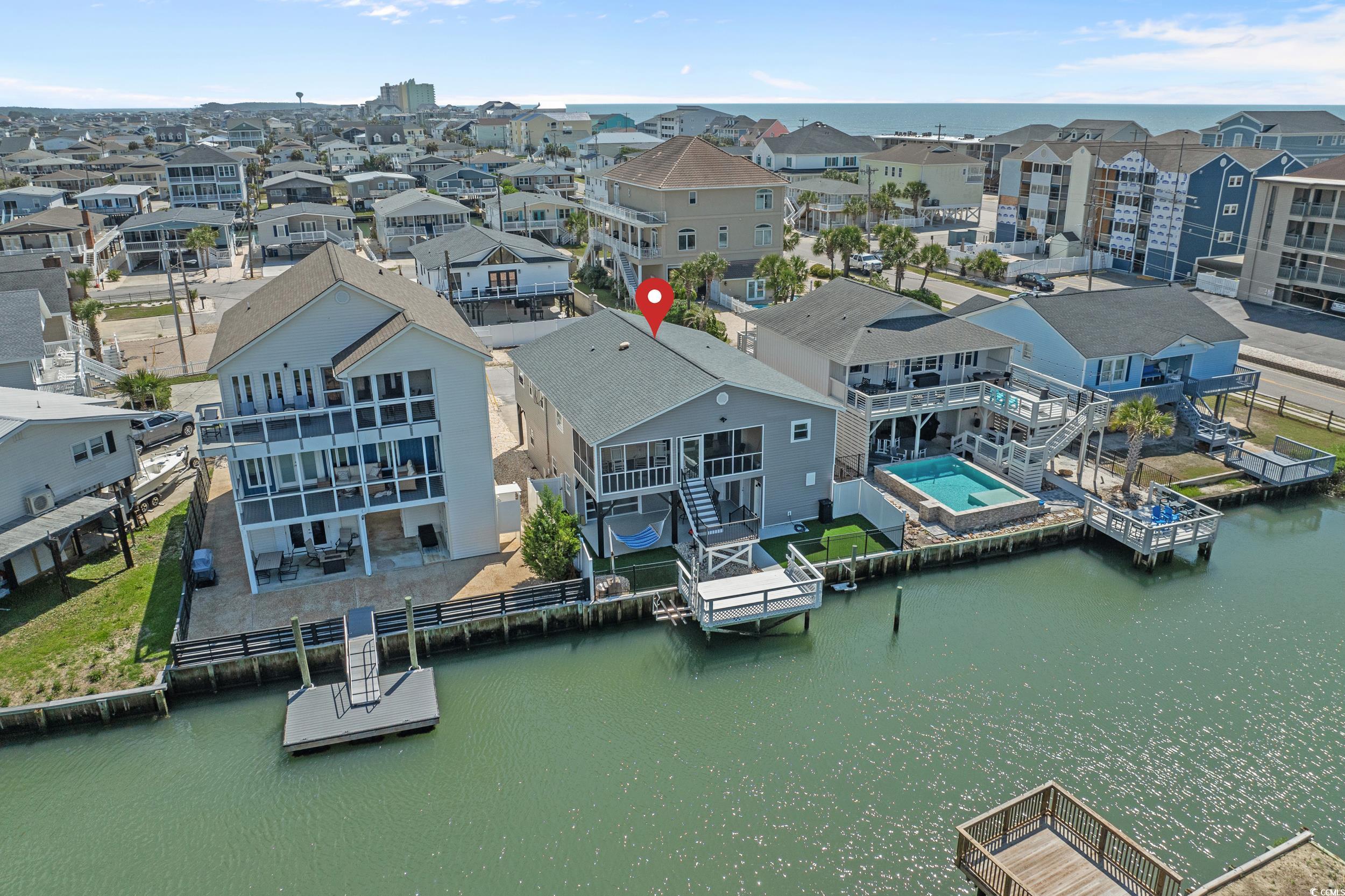 Welcome to this stunning move in ready home located on the channel in the highly sought after area of Cherry Grove! This 4 bedroom, 3 bathroom, raised beach style home is just one block from the ocean and sits on a wide channel with incredible marsh views. This is a huge bonus to your already fantastic, direct water view! Being offered fully furnished and tastefully finished and decorated, this home will WOW you. Upstairs you will step into a bright and open space where the living and dining areas flow together seamlessly and include a large wet bar. Adjacent to the dining area is the kitchen featuring SS appliances, granite countertops, a pantry and a laundry closet with full size stackable washer and dryer. The split bedroom floor plan provides privacy for all. The primary bedroom is located at the rear of the home, offering a peaceful water view and private ensuite with double vanity and walk in shower. A second bedroom with its own private bath sits at the front of the home on the same side. On the opposite side, two additional bedrooms share a convenient Jack-and-Jill bath. All bathrooms have new lights, fans and shower fixtures. The entire upstairs has been freshly painted with new lights and ceiling fans installed. Step outside to access your oversized screened in porch through either the sliding glass doors in the kitchen or the dining area. This spot is truly magical and versatile and is large enough to gather, eat, entertain, work, relax or whatever you choose! Downstairs you will find an additional 1200+ square feet that is climate controlled by a brand new Samsung mini split. This space is currently equipped as a gaming and entertaining area including a ping pong table, corn hole boards, dart board and a 90 inch TV. This indoor/outdoor living space is the perfect spot to relax, watch the game or entertain your family and friends! This downstairs area also has a 495 square foot storage/workshop space which is heated and cooled as well. The entire downstairs floor, as well as the outdoor rear walkway has gorgeous new polyaspartic coating. Step outside to savor the views and the soothing sounds of nature- perfect for an afternoon nap in the hammock or an evening cocktail with picturesque sunsets. Some of the recent additions outdoors include a brand new 7 step, extra wide kayak launch/lift, new cement pad for kayak loading, a new deck area for washing off sand, new rock/landscaping, new Trex decking (front and rear) as well as new black porch railings. There is also an outdoor shower for your convenience. Whether you are looking for primary, secondary or investment property, this is the channel home you have been wishing for. This home is located close to everything including dining, shopping, health care, golf, entertainment and more. Don't miss this one, schedule your showing today!