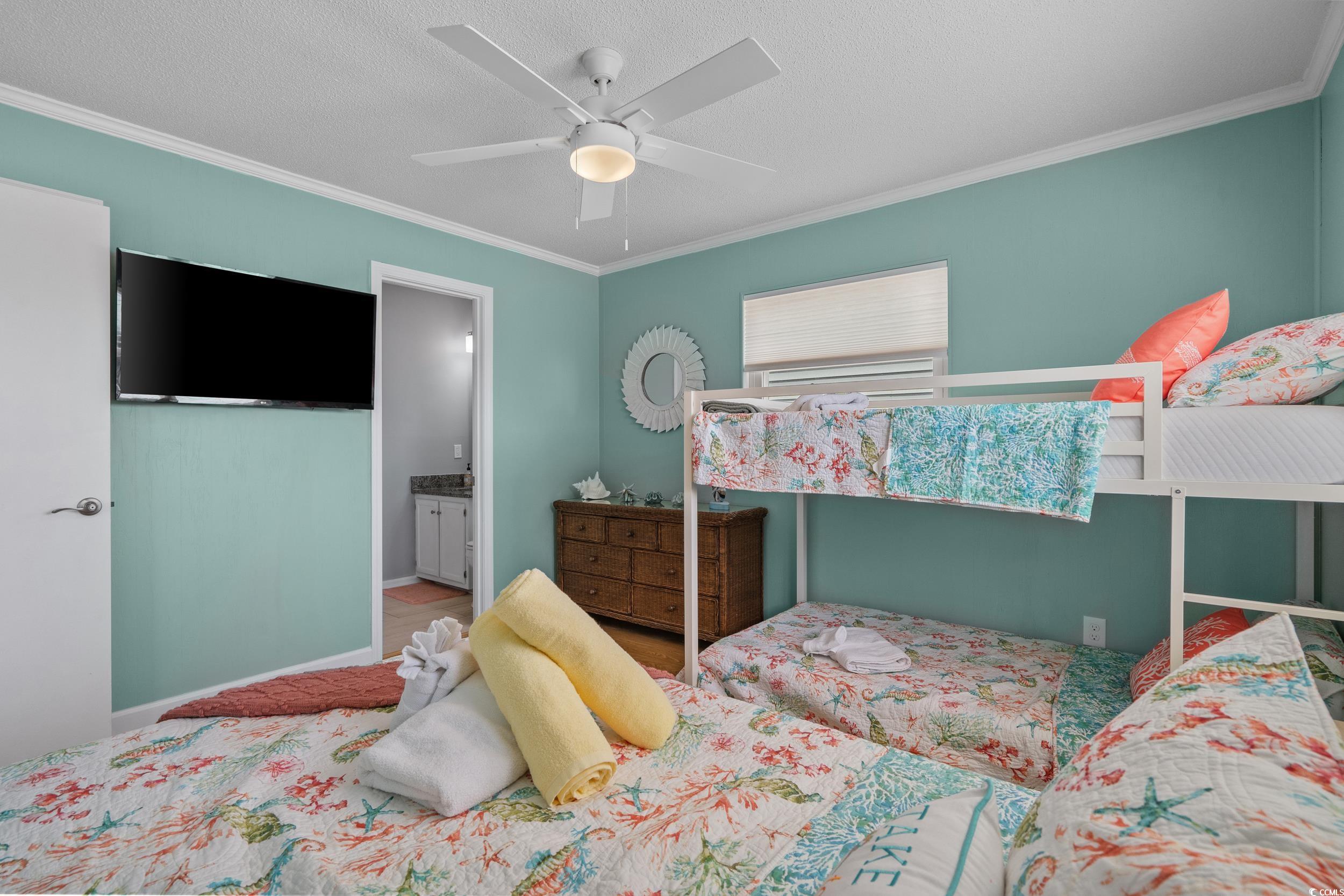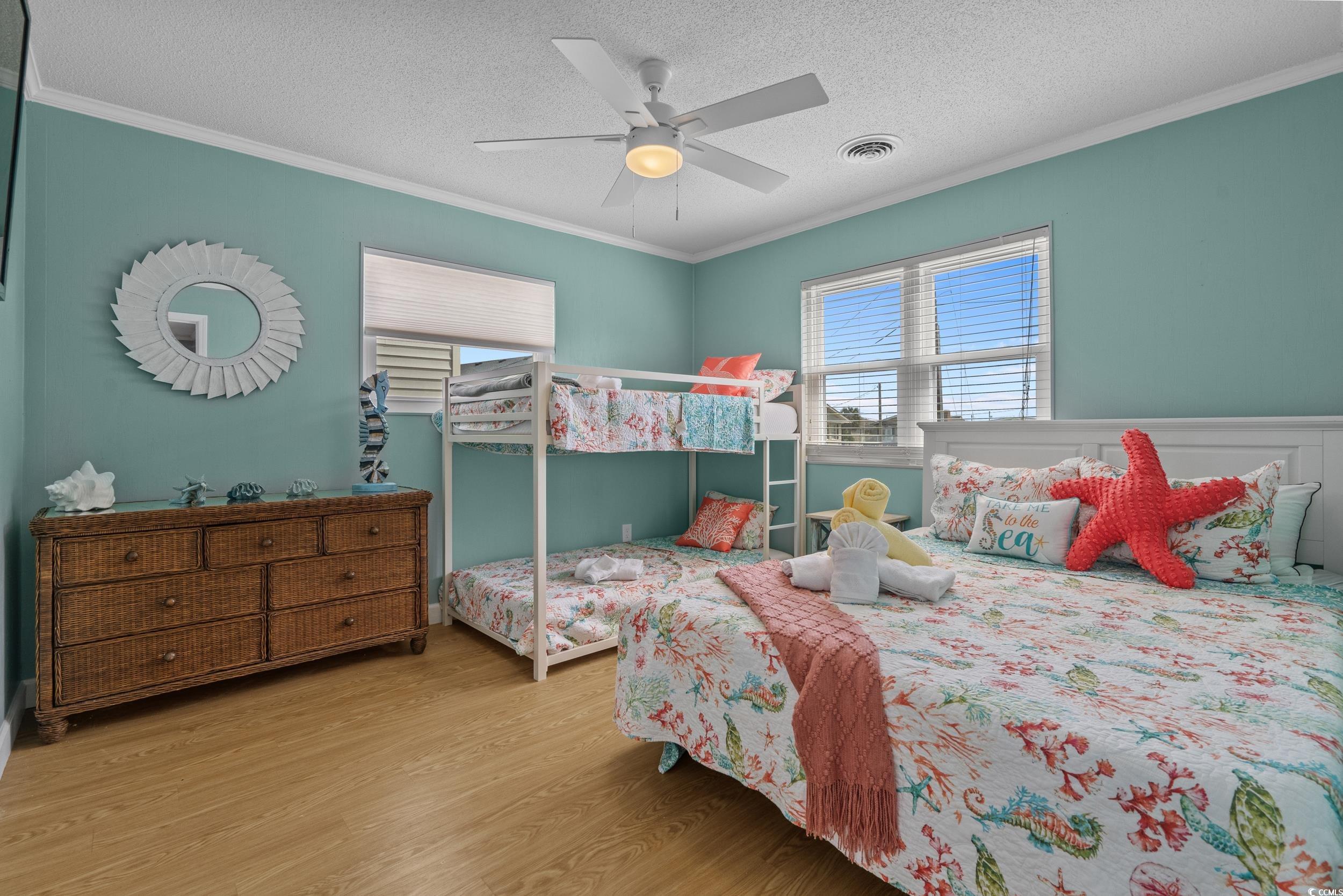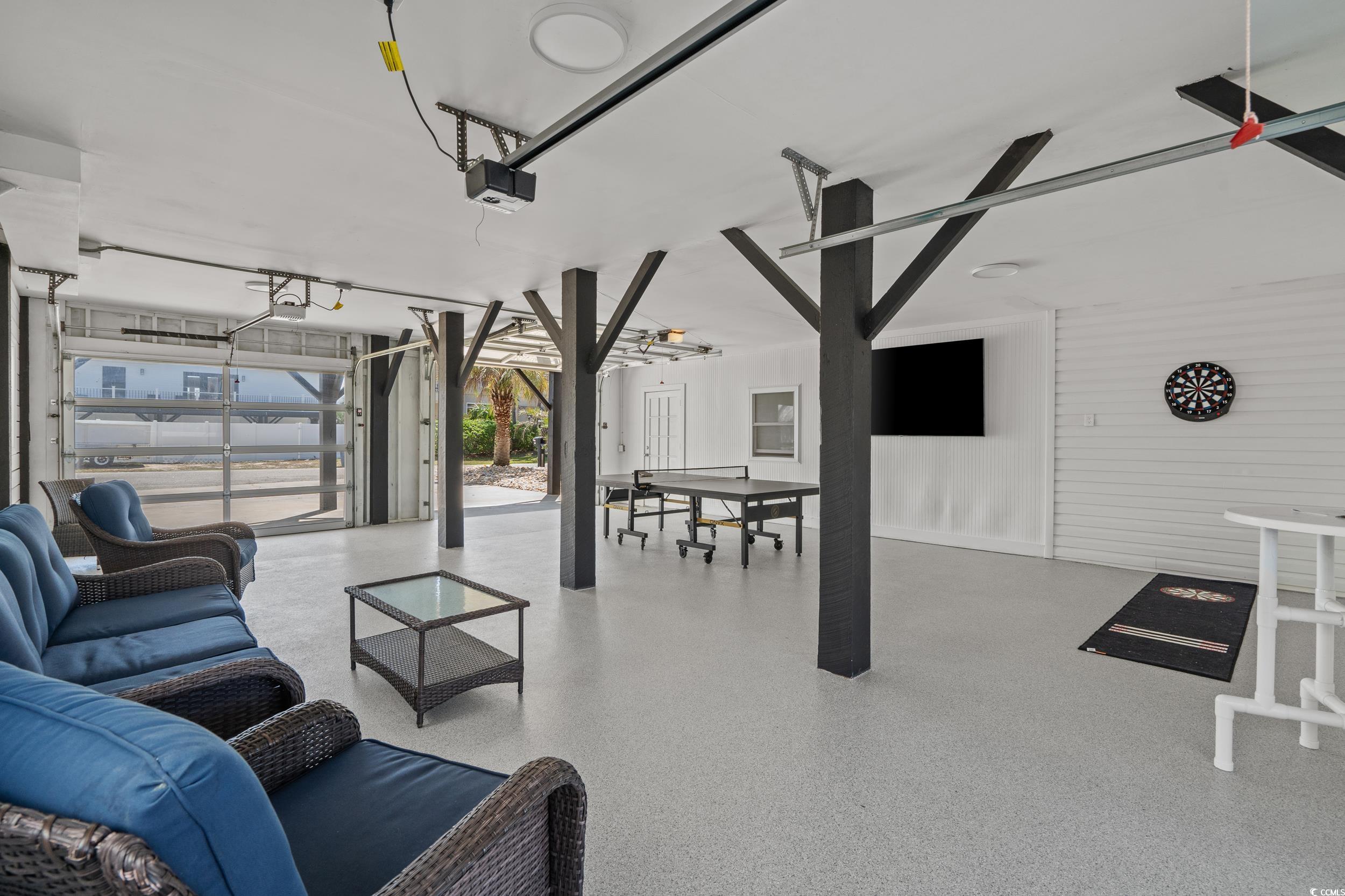 Welcome to this stunning move in ready home located on the channel in the highly sought after area of Cherry Grove! This 4 bedroom, 3 bathroom, raised beach style home is just one block from the ocean and sits on a wide channel with incredible marsh views. This is a huge bonus to your already fantastic, direct water view! Being offered fully furnished and tastefully finished and decorated, this home will WOW you. Upstairs you will step into a bright and open space where the living and dining areas flow together seamlessly and include a large wet bar. Adjacent to the dining area is the kitchen featuring SS appliances, granite countertops, a pantry and a laundry closet with full size stackable washer and dryer. The split bedroom floor plan provides privacy for all. The primary bedroom is located at the rear of the home, offering a peaceful water view and private ensuite with double vanity and walk in shower. A second bedroom with its own private bath sits at the front of the home on the same side. On the opposite side, two additional bedrooms share a convenient Jack-and-Jill bath. All bathrooms have new lights, fans and shower fixtures. The entire upstairs has been freshly painted with new lights and ceiling fans installed. Step outside to access your oversized screened in porch through either the sliding glass doors in the kitchen or the dining area. This spot is truly magical and versatile and is large enough to gather, eat, entertain, work, relax or whatever you choose! Downstairs you will find an additional 1200+ square feet that is climate controlled by a brand new Samsung mini split. This space is currently equipped as a gaming and entertaining area including a ping pong table, corn hole boards, dart board and a 90 inch TV. This indoor/outdoor living space is the perfect spot to relax, watch the game or entertain your family and friends! This downstairs area also has a 495 square foot storage/workshop space which is heated and cooled as well. The entire downstairs floor, as well as the outdoor rear walkway has gorgeous new polyaspartic coating. Step outside to savor the views and the soothing sounds of nature- perfect for an afternoon nap in the hammock or an evening cocktail with picturesque sunsets. Some of the recent additions outdoors include a brand new 7 step, extra wide kayak launch/lift, new cement pad for kayak loading, a new deck area for washing off sand, new rock/landscaping, new Trex decking (front and rear) as well as new black porch railings. There is also an outdoor shower for your convenience. Whether you are looking for primary, secondary or investment property, this is the channel home you have been wishing for. This home is located close to everything including dining, shopping, health care, golf, entertainment and more. Don't miss this one, schedule your showing today!