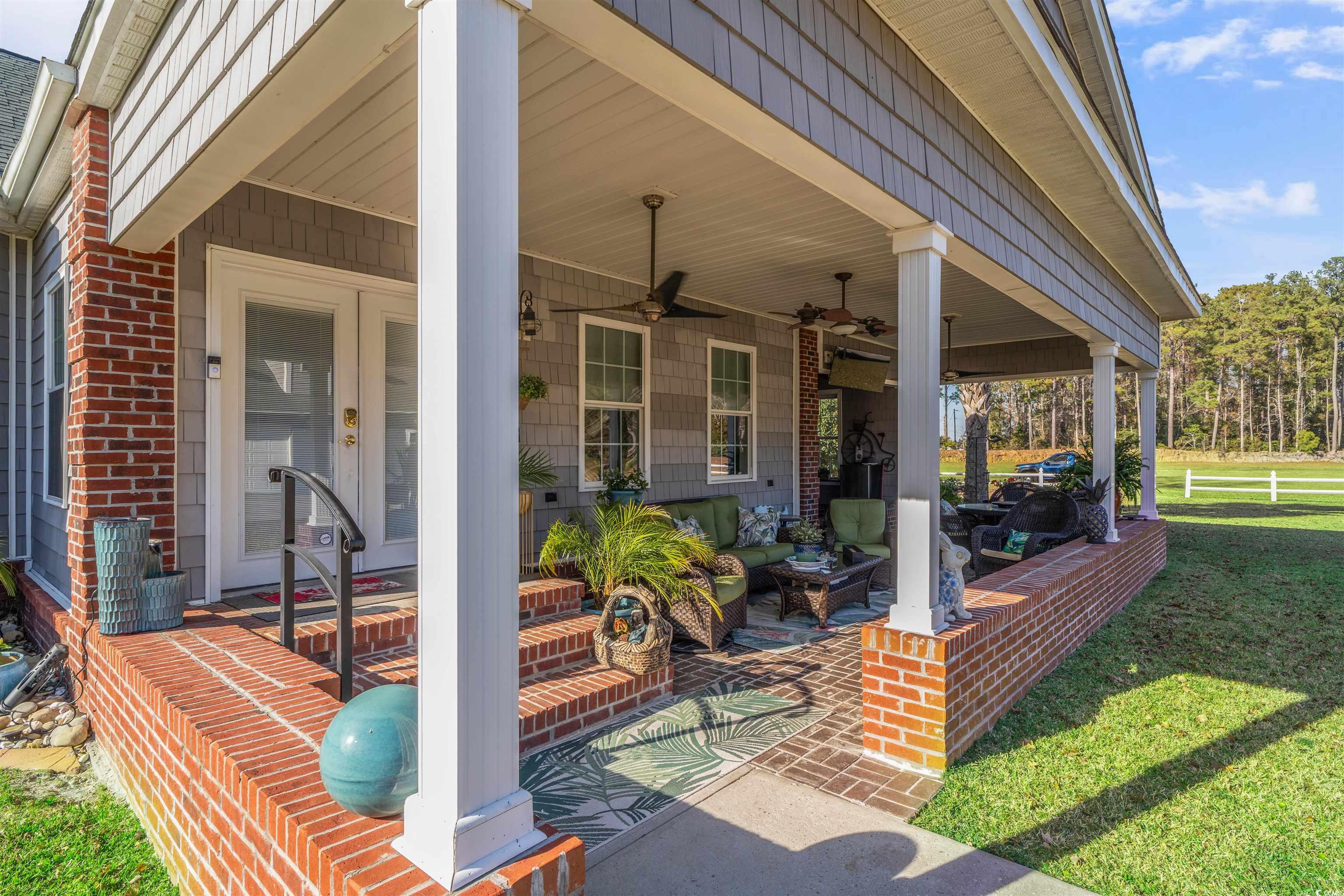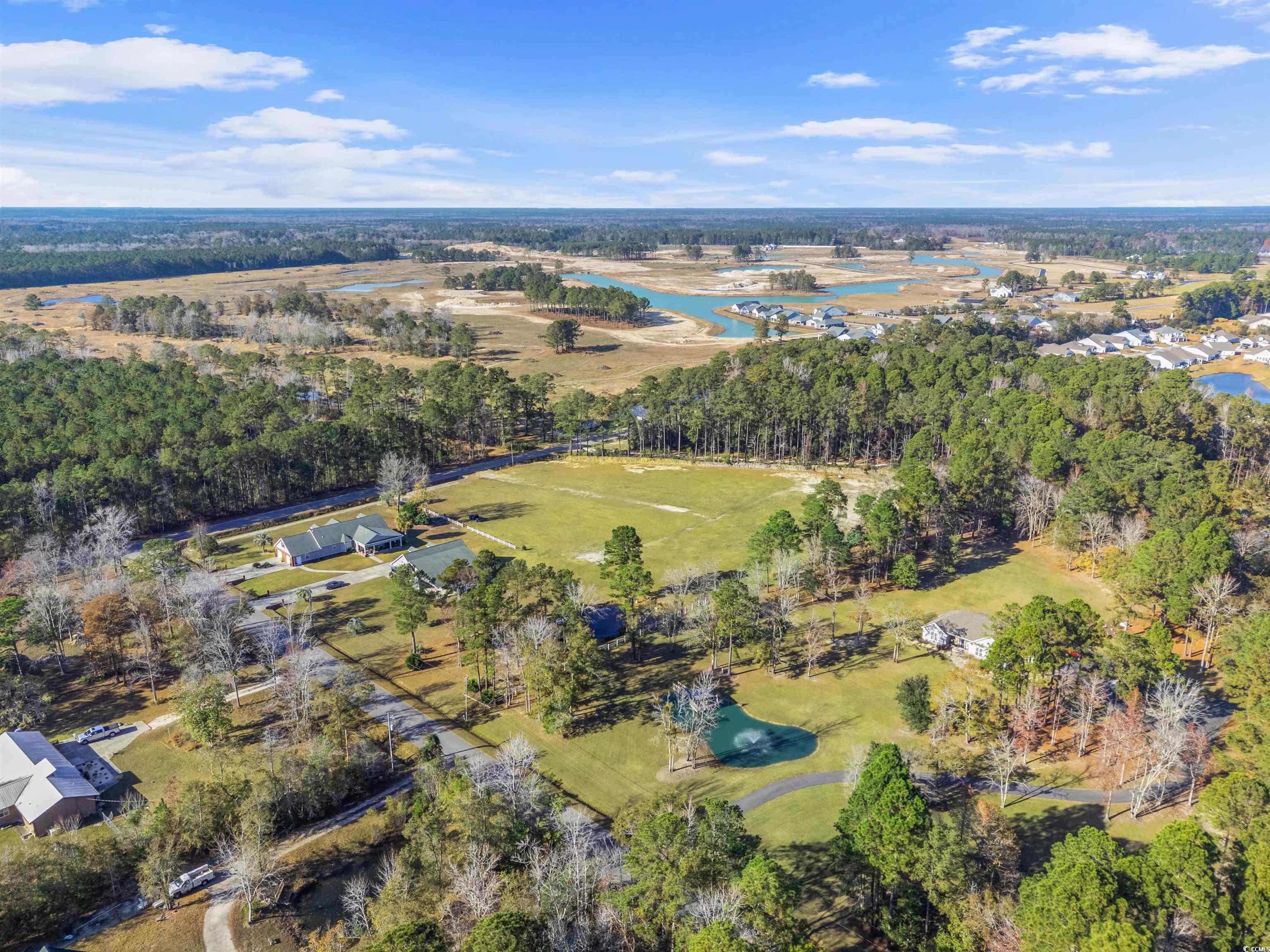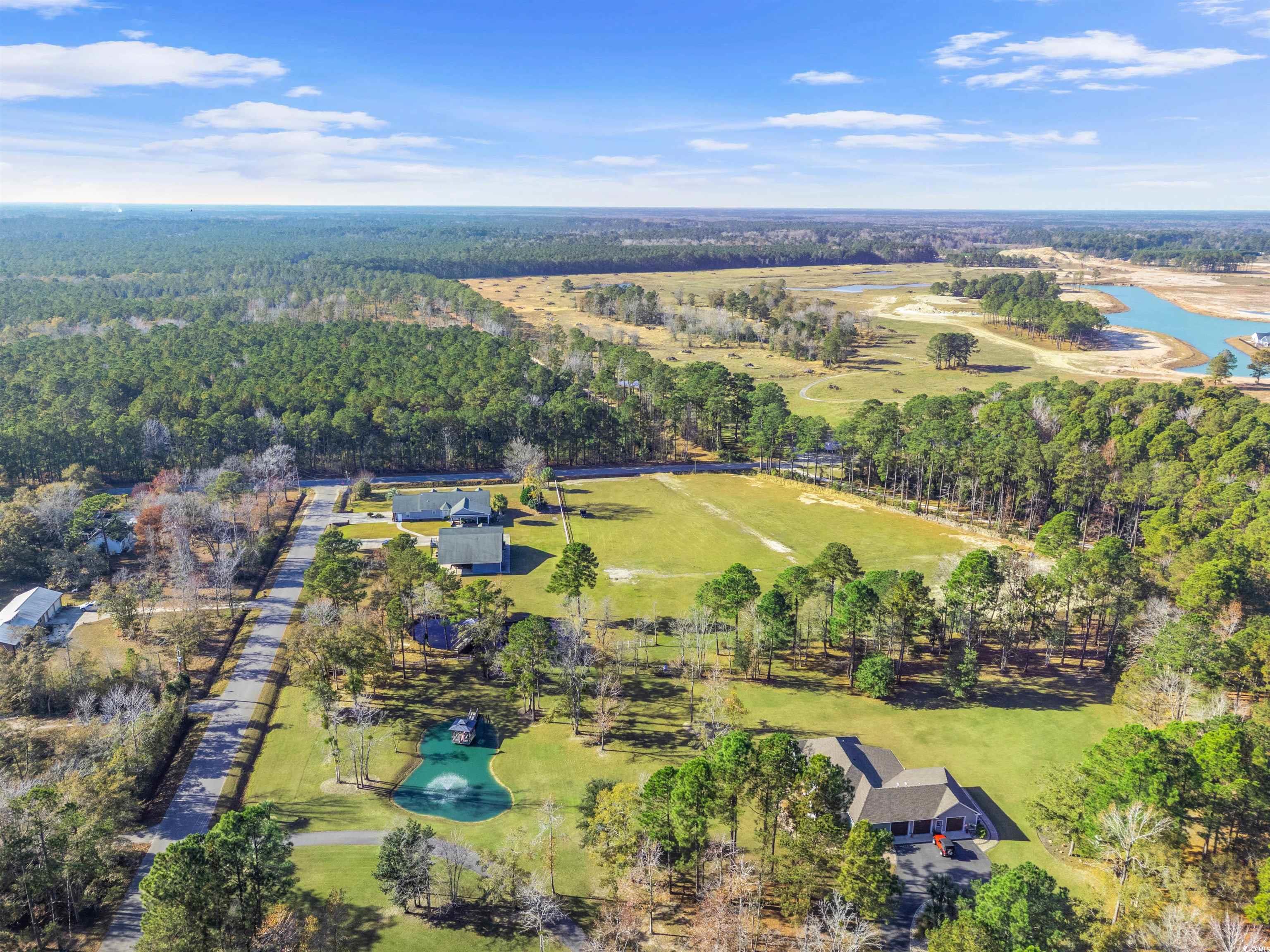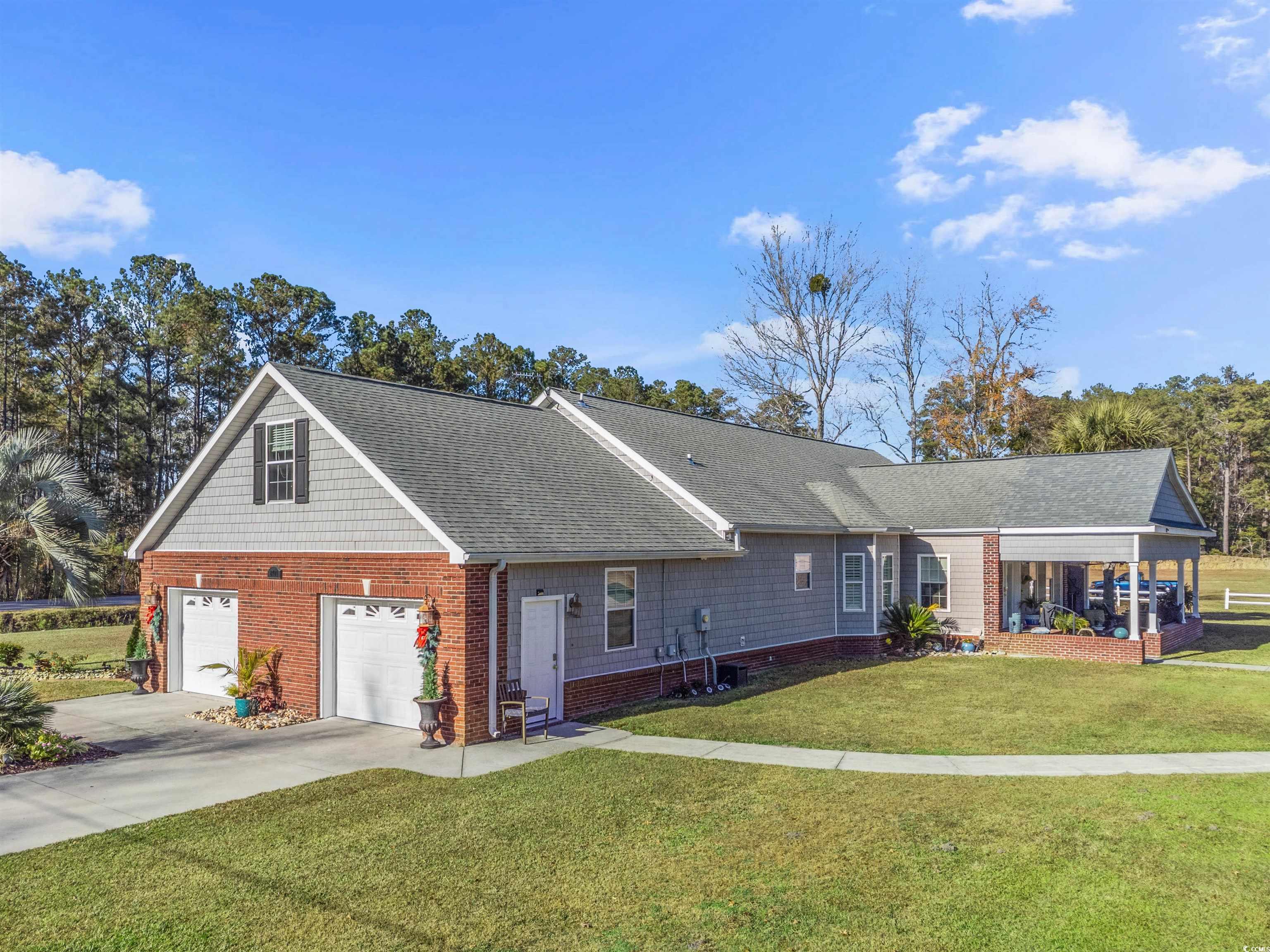 Welcome to the perfect blend of COUNTRY LIVING and COASTAL CONVENIENCE in Little River South Carolina. CUSTOM BUILT HOME on 1.83 acres with NO HOA! This country estate located on a corner lot off Hwy 50 just 2 miles from downtown Little River and ICW, not to mention just under 10 miles from beaches at Cherry Grove. This property features a two story 4 bedroom/2 car garage main house and a detached two story building with 4 car garage/workspace on first floor and studio/parent or in-law suite on second floor. The 2822 sq ft (heated) home has a primary suite and two other bedrooms on first floor and forth bedroom plus bonus room and bath on second floor. Updated spacious kitchen with small island and extra bar area, custom cabinets, corian countertops and stainless steel appliances. Plantation shutters throughout, vaulted ceilings and fireplace in living room & carolina room. There is an attached covered patio with outdoor kitchen between main house and detached garage. This property has a generous size driveway with ample outside and inside parking for numerous vehicles. Ideal for RV, boats, multi sized cars/trucks and all the toys! The detached 3000 sq ft building provides for large amounts of storage and or workshop for multi purpose use. It also has an office space, laundry facilities, kitchen and half bath. Upstairs is a 800 Sq ft studio apartment. Currently used for rental income but tenant is month to month lease. Well maintained landscaping, some fencing throughout property and two separate driveway entrances. Saving the best feature for last.... a serene picturesque small pond with a wooden bridge and benches nestled in the back of the property all to yourself! Unique opportunity... this type of property is difficult to find this close to the beach. Contact listing agent for home tour!