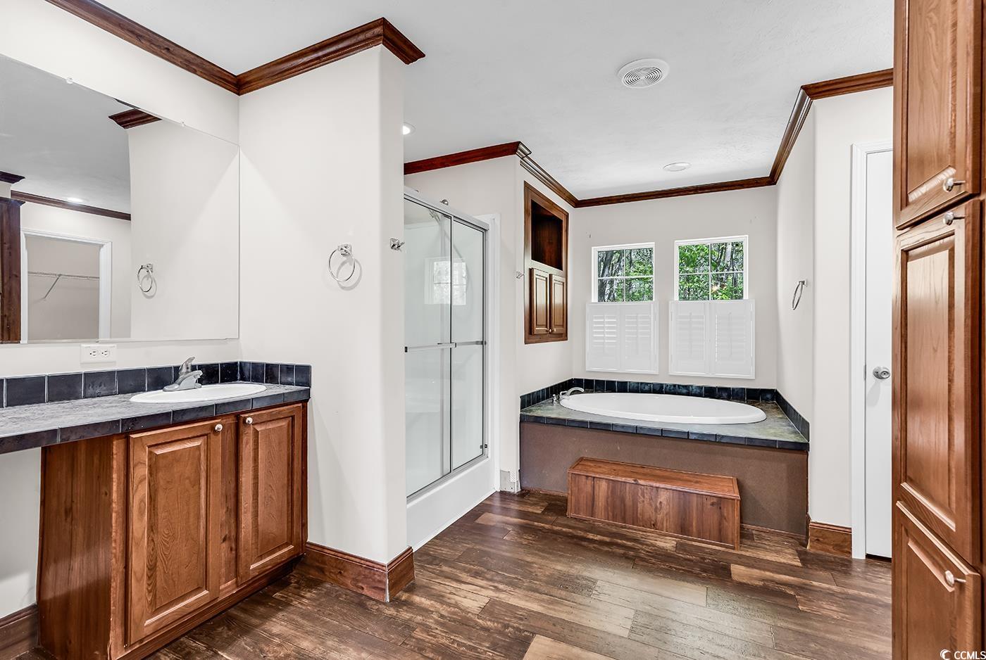 Where can you find a spacious home on a large (over one-third acre lot) close to the beach at an affordable price? Right here! This three bedroom, two bathroom home is just west of US 17 Business in GARDEN CITY BEACH, South Carolina in a small community tucked away in a cul de sac. This home has many convenient and desirable features including: front porch, open concept, large kitchen with island, extra spacious great room, split bedroom plan, fireplace, garden tub and shower in primary bath en-suite, large laundry room with extra cabinets and sink for entertaining guests in the Carolina room in the back with a view of the tree line. Don't forget to check out the virtual tour and call your Realtor to schedule to see this opportunity CLOSE TO THE BEACHES in person!