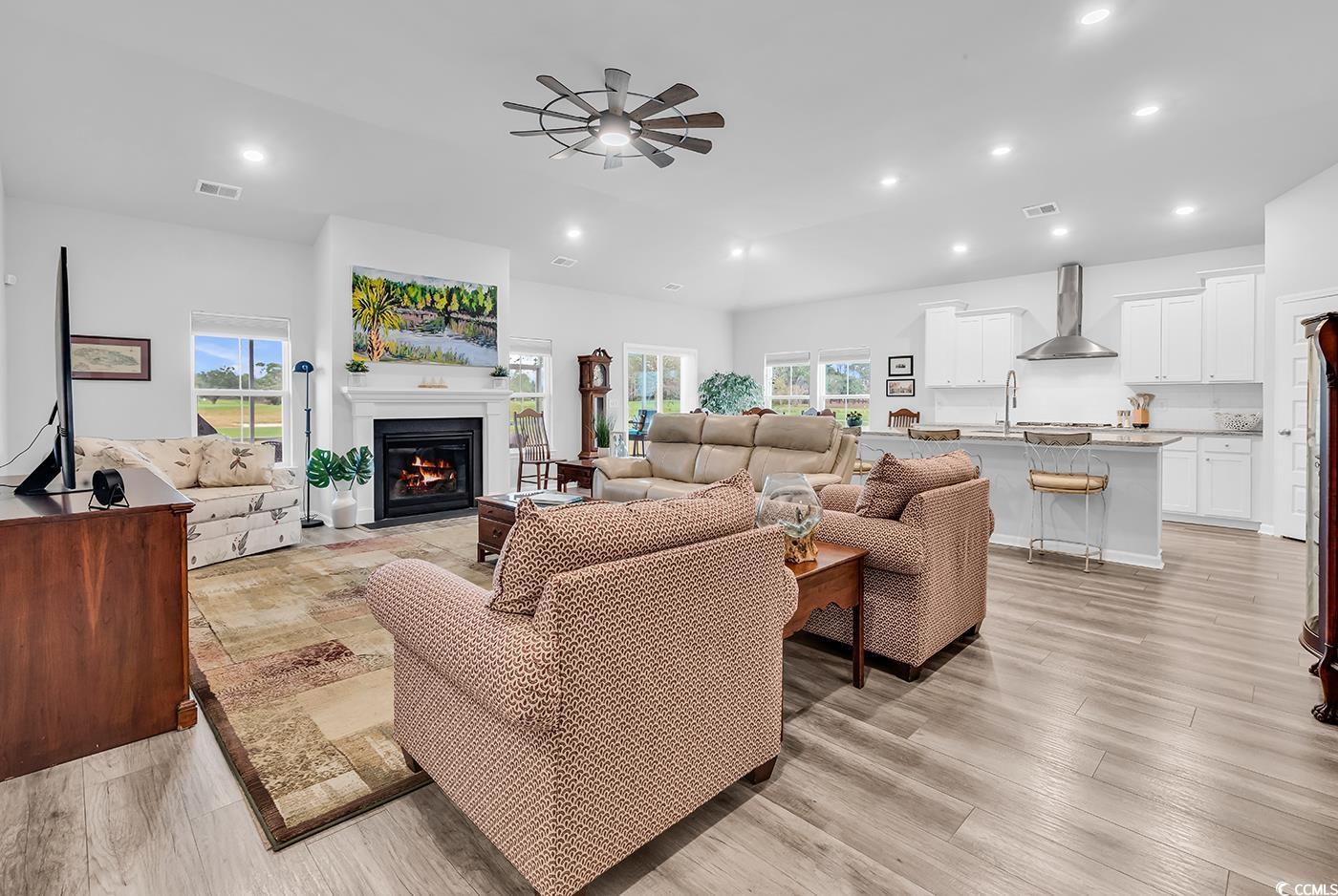 Open house on Sunday, December 7th 1-3:30pm. Located on a quiet cul-de-sac and nestled on one-third of an acre, this exceptional 3-bedroom home with a dedicated office and formal dining room offers the perfect blend of coastal luxury and modern design. Set on the 8th hole of Pine Lakes Country Club, Myrtle Beach's first golf course, established in 1927 and fully restored in 2021! This property delivers breathtaking views of rolling greens and serene ponds, all just a golf cart ride to the beach. Step inside to an expansive open floor plan highlighted by cathedral ceilings in the great room, a gorgeous fireplace, and luxury vinyl flooring throughout. The heart of the home is the gourmet kitchen, featuring granite countertops, stainless steel appliances, abundant cabinetry, and an oversized island perfect for entertaining. The spacious primary suite and two additional bedrooms offer comfort and versatility, while the private office provides the ideal space for work or hobbies. Enjoy outdoor living year-round on the massive 26 x 22 screened-in porch, capturing sweeping views of the 8th fairway, greens, and tranquil water features. The community amenities include large pool with a clubhouse, kids' playground and pickleball court. Not to mention all the walking trails around the neighborhood. This is a rare opportunity to own a beautifully crafted, nearly new home on a historic and meticulously restored golf course, just minutes from the ocean. Schedule your showing today and experience the best of coastal golf-course living.