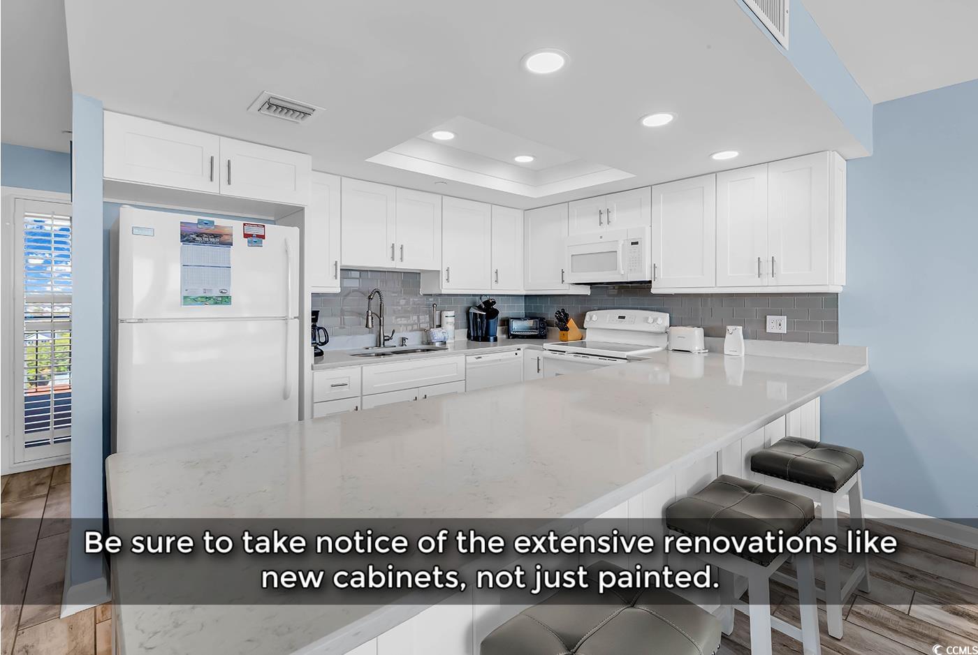 Step into this beautifully updated 2-bedroom condo on the coveted 7th floor, where wide ocean views greet you the moment you arrive. Surf Master is one of the areas standout buildings, offering spacious layouts and double the amenities (two pools, hot tubs, and an owners fitness room). Unit 711 has been thoughtfully renovated with LVP flooring, a top-of-the-line kitchen renovation, fully updated baths, smooth ceilings, stylish new furnishings, and an improved balcony surface. A rare find amoung the masses! *This unit also has a standing rental history that can be provided amoung request. It's genuinely turnkey!!!