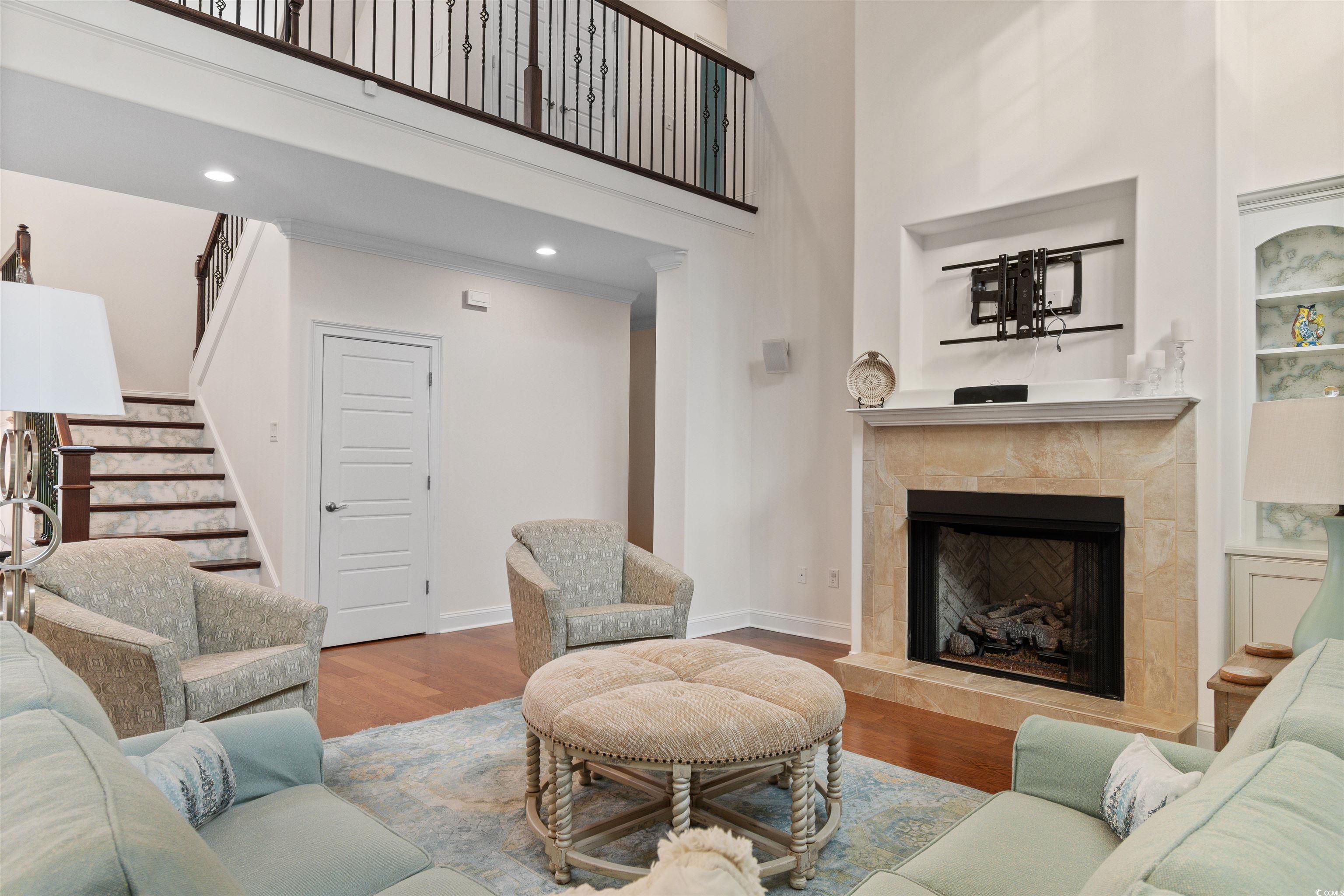Imagine coming home to a place that feels like a retreatwhere natural light pours through tall windows, the scent of dinner drifts from an inviting kitchen, and the backyard delivers calm seclusion with a spacious porch perfect for gatherings. This custom-built Quest Properties home in Waverly Bay blends craftsmanship with comfort, creating a refined yet welcoming space ideal for everyday living and effortless entertaining. Step inside to find crown molding throughout, bullnose corners, and cathedral ceilings that elevate the homes elegant feel. The newly painted living area centers around a cozy natural gas fireplacean inviting focal point to unwind or host guestswhile the formal dining room features classic wainscoting for timeless charm. The main-floor primary suite offers convenience and luxury with dual walk-in closets and a spacious two-head tiled shower. Upstairs, two guest bedrooms each boast private ensuites, providing comfort and privacy for family or visitors. A flexible bonus roomperfect as an office, fourth bedroom, or media spaceis pre-plumbed for a wet bar or additional half bath, allowing you to tailor the space to your lifestyle. Enjoy year-round relaxation in the large four-seasons porch overlooking a wooded backdrop. The yard is generous and pool-ready, with a concrete pad for grilling or gathering, plus an oversized garage, hot/cold outdoor shower, and a 220-amp outlet ready for a hot tub. Located in the gated community of The Bays, youll enjoy exceptional amenities including two pools (one a lap pool), a clubhouse with fitness room, newly painted pickleball courts, tennis court, basketball, volleyball, playground, pavilion and picnic area, firepit gathering space, and open green space for outdoor fun, pets, and play. In the sought-after Prince Creek area of Murrells Inlet, youll be near the MarshWalk, golf, beaches, dining, and everyday conveniences. Dont miss the chance to make this impeccably maintained, move-in-ready home your ownschedule your showing today.