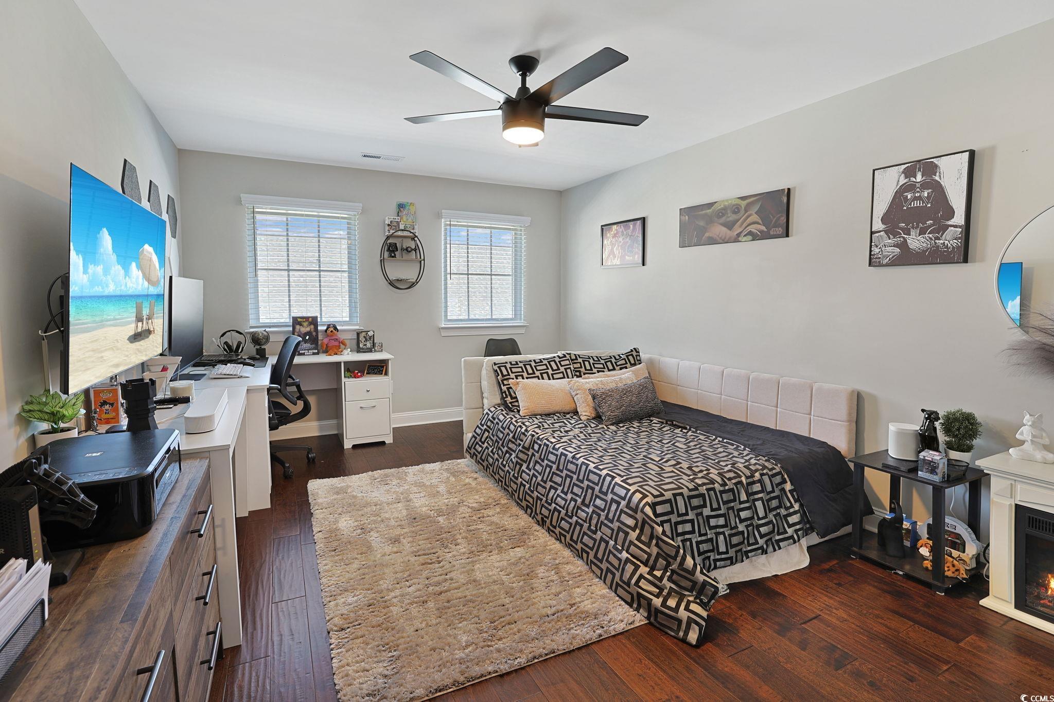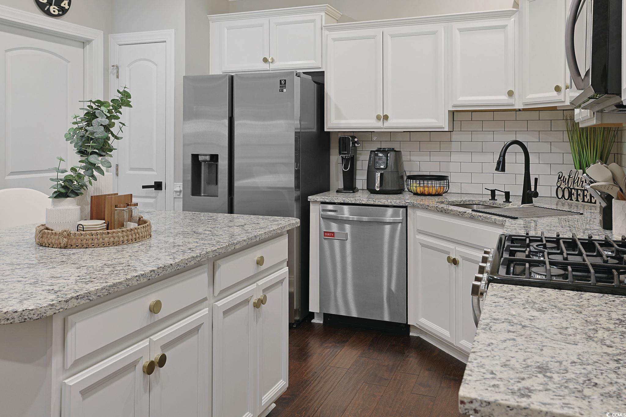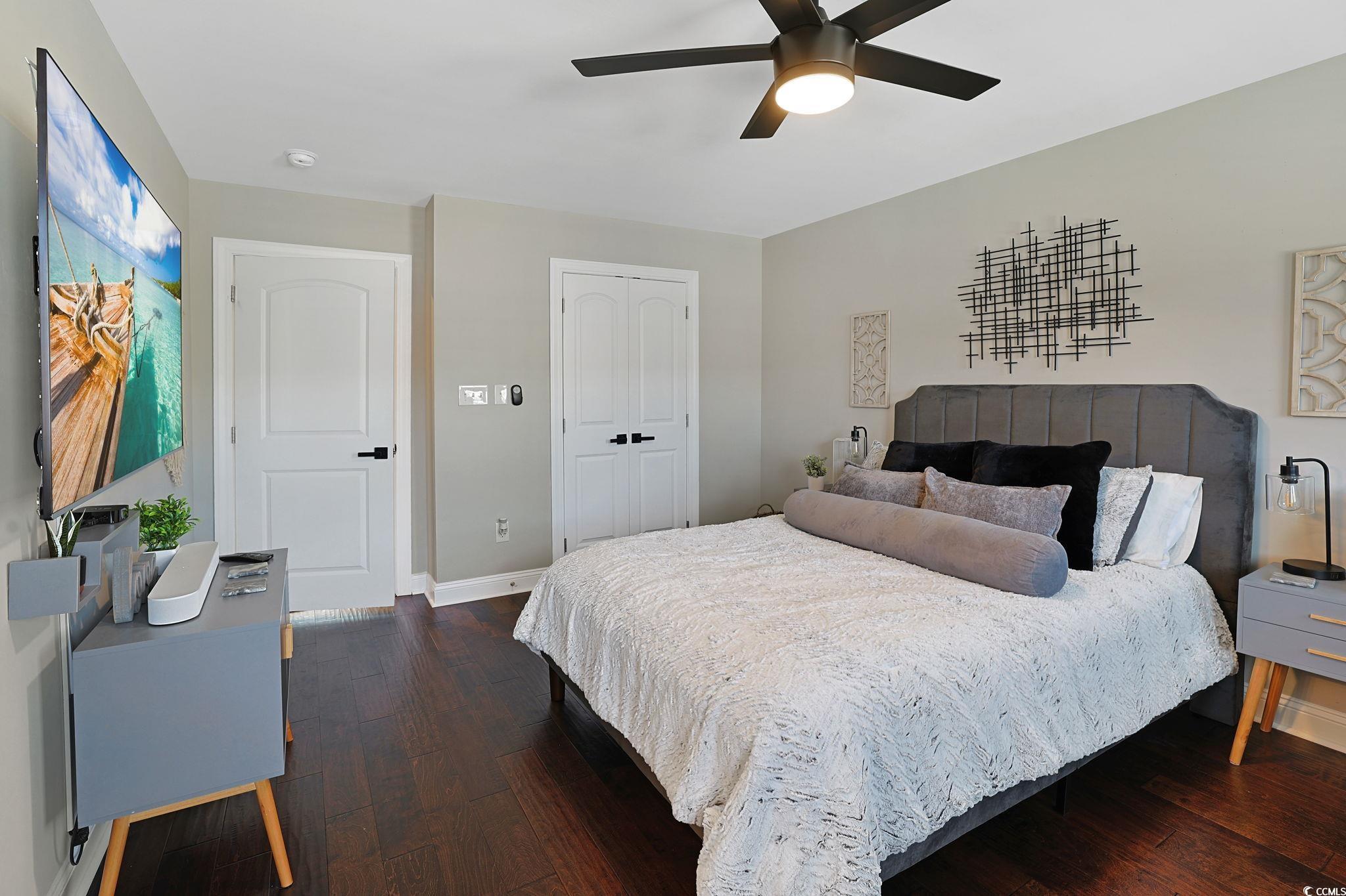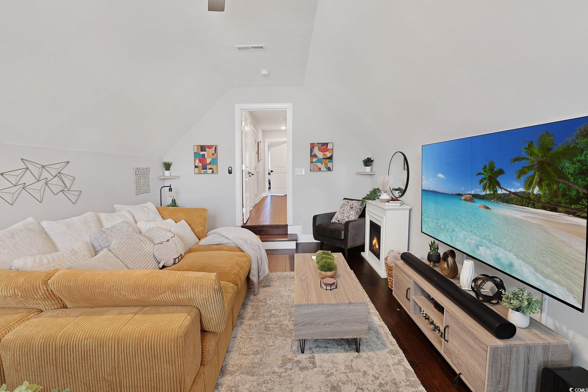 Presenting this luxurious 3 bedroom 2.5 bath townhome located in the very popular Queens Court community. This piece of paradise features an open floor plan with engineered wood & tile flooring, smooth flat 9 foot ceilings, elegant chair railing with shadow box paneling, crown moulding, recessed lighting, a guest powder room, a formal dining area, and a comfortable living room that showcases a sliding glass door that opens up to the delightful sunroom. The family friendly kitchen is equipped with a stainless steel appliance package that includes a gas range, built-in microwave, dishwasher, refrigerator, granite counter tops, a kitchen island, a breakfast bar, cabinets topped with crown moulding, and a practical pantry. The main level primary suite offers a rectangular raised-panel wainscoting that covers the full height of the wall (floor-to-ceiling), creating a dramatic backdrop. The panels are framed with crisp molding and painted in a high-gloss finish, which gives the wall depth and a luxurious feel, single step tray ceiling with a fan, private access to the double door primary bath hosting a vanity with dual sinks, a water closet, a deluxe step-in shower, and a large walk-in closet. As you venture upstairs you will find a memorable second master suite offering a ceiling fan, nice sized closet, and private access to a full bath. The second level is completed with an additional bedroom, a full guest bath, and a versatile bonus room. The main level of this exquisite home also includes a delightful back patio with a gas grill, lots of extra closet spaces, a laundry room, and a two car attached garage. This townhome affords you easy access to the beach and golfing along with all of the other activities and happenings in Myrtle Beach including fun eateries, award winning off-Broadway shows, public fishing piers, and intriguing shopping adventures along the Grand Strand. Conveniently located to your everyday needs, including grocery stores, banks, post offices, medical centers, doctors offices, and pharmacies. Check out our state of the art 3-D Virtual Tour.