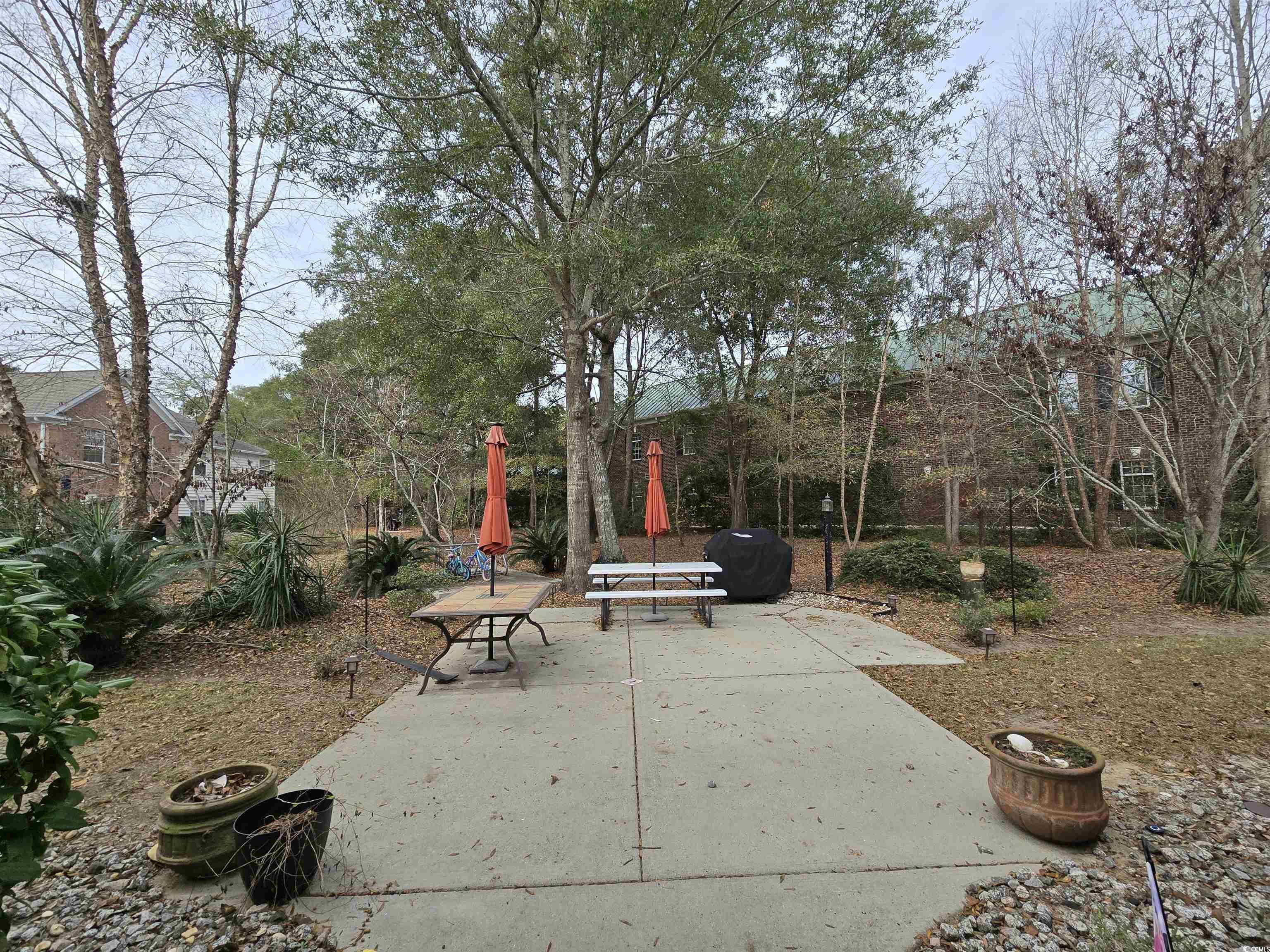 Welcome to this spacious first floor, three bedroom, two bath condo in the popular community of Riverwood. Step inside to your living area with an adjoining sun room, dining area, and upgraded kitchen. Kitchen features granite counter tops, modern cabinets, stainless steel appliances, and a dedicated pantry. Crown moulding is throughout the unit. Master Suite has two walk in closets and the large master bath features both a soaking tub and walk in shower and provides plenty of vanity space along with a linen closet. The two additional bedrooms share the second full bath with granite counter top and upgraded sink, faucet, mirror, and light fixture. Laundry room with washer & dryer. Shared patio behind the building backs to wooded area. Riverwood features a community pool, clubhouse, tennis courts, and basketball. The prime location is just a short drive to Murrells Inlet MarshWalk, golf courses, shopping, dining, Waccamaw Community Hospital, and beaches.