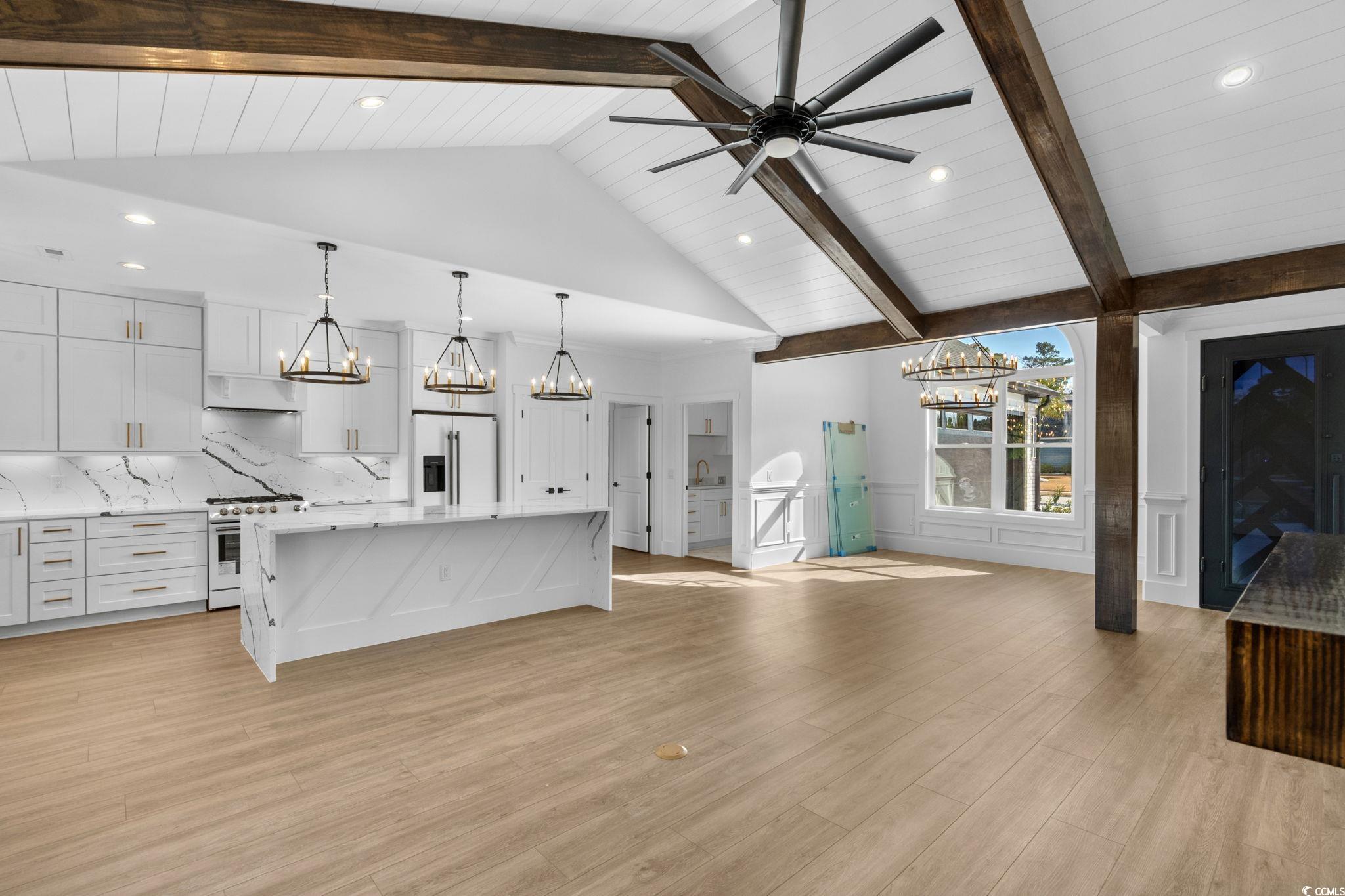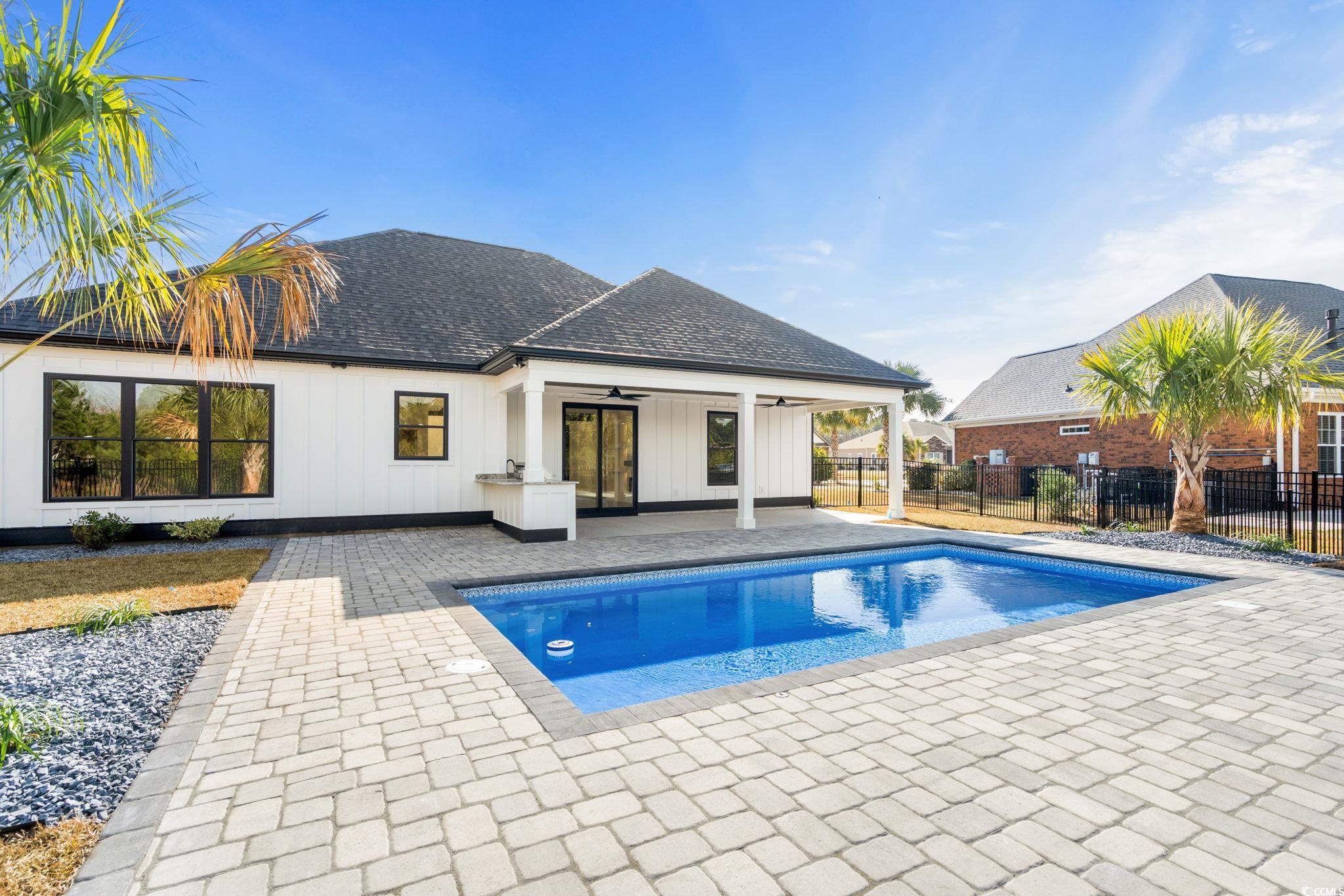 Welcome to this 3 Bed / 2 Bath stunning modern farmhouse offering impeccable design and luxurious finishes throughout with an inground pool! As you step inside, youre greeted by an open-concept living area with vaulted, beamed ceilings and expansive windows that flood the space with natural light. The chefs kitchen is the showpiece of the home, featuring custom white cabinetry, striking waterfall quartz countertops, a gas cooktop, and elegant gold hardware paired with designer lighting. The spacious island provides ample seating and anchors the room beautifully for cooking and entertaining. The living area flows seamlessly onto the covered patio overlooking the backyard and pool area, creating an ideal indoor-outdoor living experience. High-quality flooring, clean lines, and thoughtful craftsmanship are evident in every corner of this home. With its bright, airy layout and modern finishes, this property blends comfort and sophistication perfectlyoffering a truly move-in-ready retreat. Located in the sought after gated community known as Sago Plantation. If you love to golf you are just a golf cart ride away from Legends Golf Course! Centrally located in Myrtle Beach you are close to the Tanger Outlets for shopping, Carolina Forest for restaurants, and entertaining. Still just a few miles from the ocean, this home is very conveniently located.