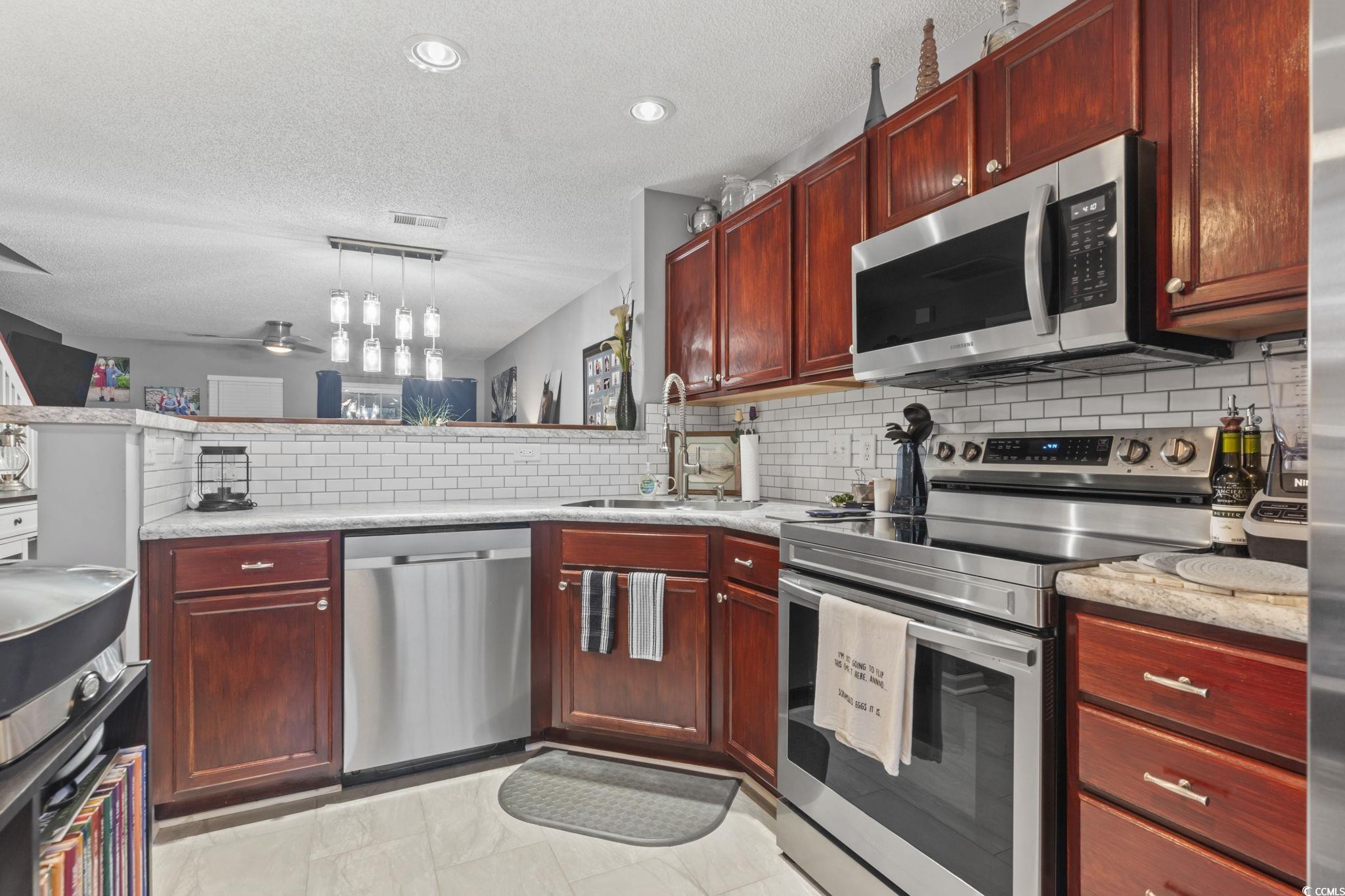Move right into this beautifully updated townhome and start enjoying all that the area has to offer. This truly ""like new"" meticulously maintained home is a MUST SEE! Just about everything in the entire unit has been modernized over the past few years. A big plus is that there is no carpeting; the flooring throughout the entire home is easy to care for LVP and tile. Both bedrooms are located on the second floor and have renovated ensuites, with the primary bathroom featuring a walk-in shower with a stylish tile surround. The entire interior of the unit has been painted, and the kitchen has newer appliances and premium Formica countertops with a seamless double sink. Other bonuses are the blinds, ceiling fans and comfort height toilets. The downstairs 1/2 bath has been updated with beautiful tile, beadboard and fresh paint and the lanai has been upgraded with LVP flooring and special pet screening. The community has a nice pool to enjoy, and you will love being close to all of the great shopping, dining and nightlife opportunities on 501 and Carolina Forest. As an added bonus, this home is less than 20 minutes to the beach and airport for easy access. Call today to schedule your personal showing; you will love what you see!! Professional photos will be added soon.