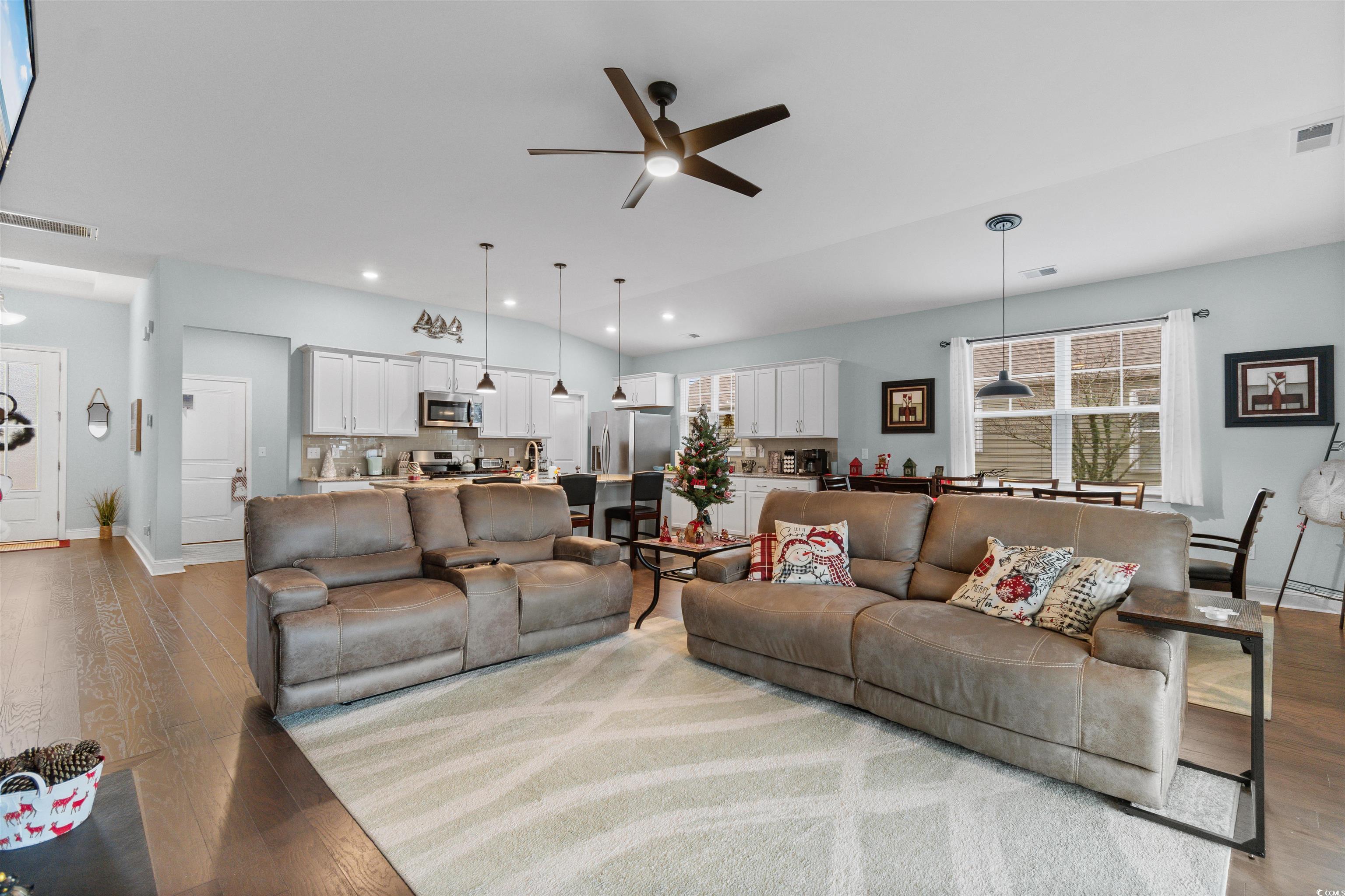 OPEN HOUSE SUNDAY 12-2 PM!! Conveniently located off 707 close to Murrells Inlet, Huntington Park, and the beachs is The Farm @ Timberlake and this well maintained 3 bedroom 2 full bath ranch home. This home is the popular Eaton floor plan which offers an open and functional floorplan with upgraded wood flooring and vaulted ceilings complete with ceiling fans, modern lighting and even an added fireplace. The great room has a wall of large sliding doors which over look the largest pond in the community. So much natural lighting. The kitchen has an island large enough to host cookie making or a book club. Stainless steel appliances finish off the kitchen which has tons of cabinet space, lined with granite counters and subway tiled backsplashes. Wait till you see the pantry!!! You'll end up buying more small appliances!! There is a spacious owners bedroom off the great room with a tray ceiling and it overlooks the pond. The owners bedroom has a walk in closet, a large bathroom with dual sinks, a large walk in shower and 2 additional closets for storage. The additional 2 bedrooms are off the entry to the home and are divided by the 2nd full bathroom. The laundry area is located off the entrance from the garage and the area has a small built in coat tree. The home is set up and flows so well. Lots of natural lighting, vaulted ceilings, modern fixtures, tastefully decorated and is move in ready. The sellers love the lot and the view of the pond. The Farms @ Timberlake is a fantastic community that features 2 pools, pickleball, a community center, and a dock for fishing and kayaking. Schedule your showing today!