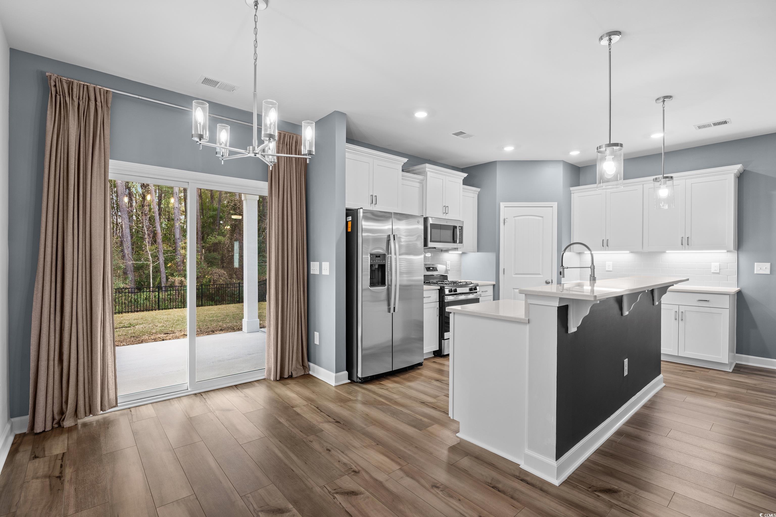 Welcome home to 1028 Agostino, a beautifully designed 3-bedroom, 2.5-bed home that blends comfort, style, and functionality. Built 2024, the open concept offers an inviting entry to the generously sized living room made complete with a natural gas fireplace. The kitchen overlooks the living area offers quartz countertops, stainless steel appliances, generous island for a breakfast bar, pantry and a dedicated dining space. Your master suite offers views of the fenced backyard that has a wooded backdrop, walk-in closet and an ensuite with a walk-n shower. Upstairs offers two large bedrooms and full bath. The home has a true two car garage, custom paint, a whole house surge protector, an updated HVAC system and ductwork in 2025 by builder for more balanced airflow. Located in the Merrill Villas community of Bella Vita, offers a peaceful setting while keeping you close to everything the Grand Strand has to offer like the sandy beaches, shopping, dining, entertainment, golf and more... Don't miss out, call for a showing today!