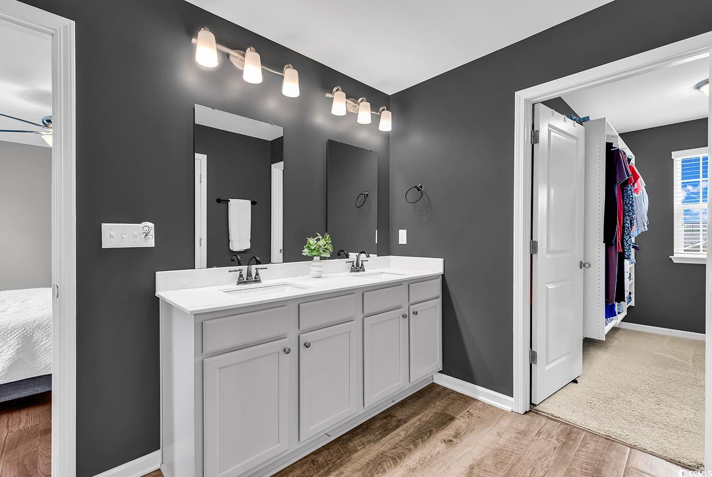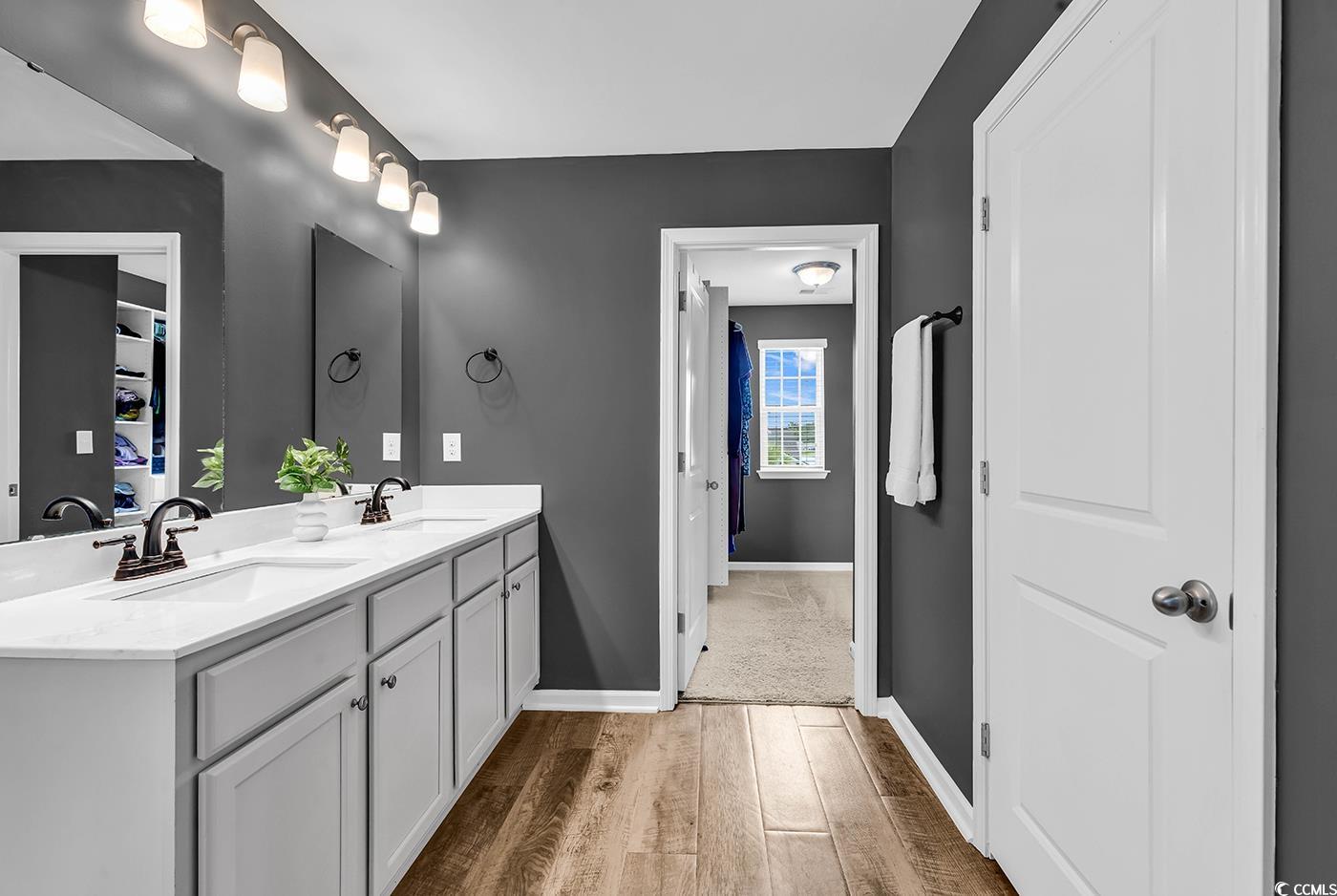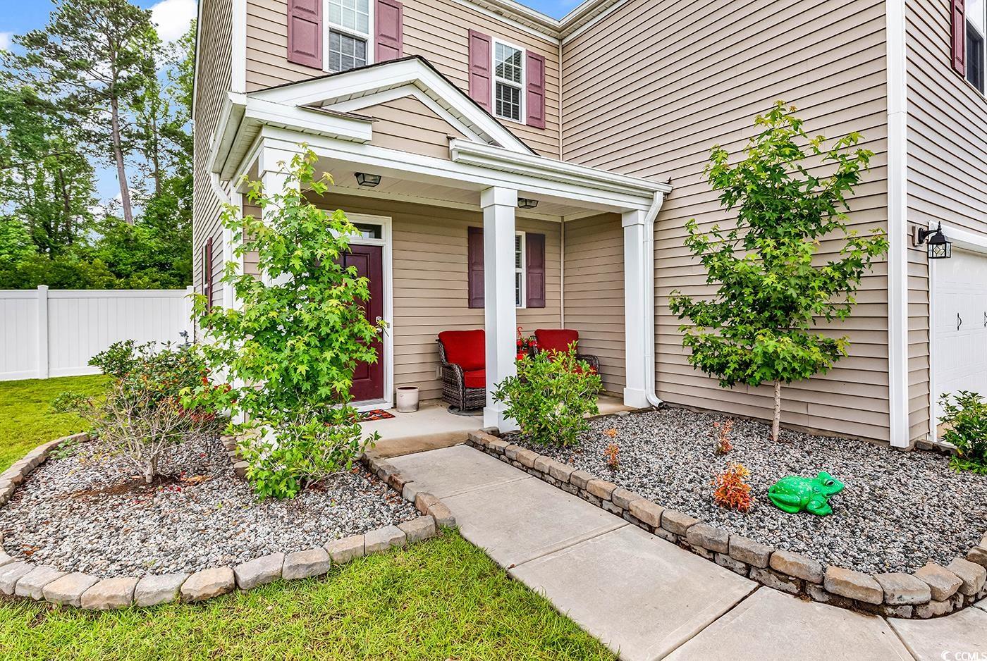 Come and see this gorgeous 4 bedroom, 2.5 bathroom home in the highly sought after Reflections community! Situated on a large fenced in lot backing up to trees, this home offers a spacious, open gathering area and generous bedrooms! As you enter the home, there is a convenient half bathroom on the first floor and stairs leading to the second floor. The living room, dining area, and kitchen all flow seamlessly, for plenty of space to gather together and to entertain. The kitchen boasts stainless steel appliances and a gas range, with granite counters and a large pantry. You'll also find storage under the stairs that has been opened up and that the sellers are using as an office area too! Sliding glass doors lead to an extended paver patio and huge backyard that is already fenced in with a storage shed. Traveling upstairs, wooden stairs and floors open up to four bedrooms, two full bathrooms and a laundry room with even more storage. The primary suite has an ensuite full bathroom with dual sink vanity, step in shower, water closet, and linen closet, and an impressive walk-in closet with built in shelving. Three additional bedrooms are found upstairs and a second full bathroom with a dual sink upgraded vanity. This home has everything you need and want, including being part of a small neighborhood with a community pool and fitness center. Part of the Carolina Forest school district and just minutes to downtown Conway, and International Drive, make sure you take the 3D tour and schedule your showing today!