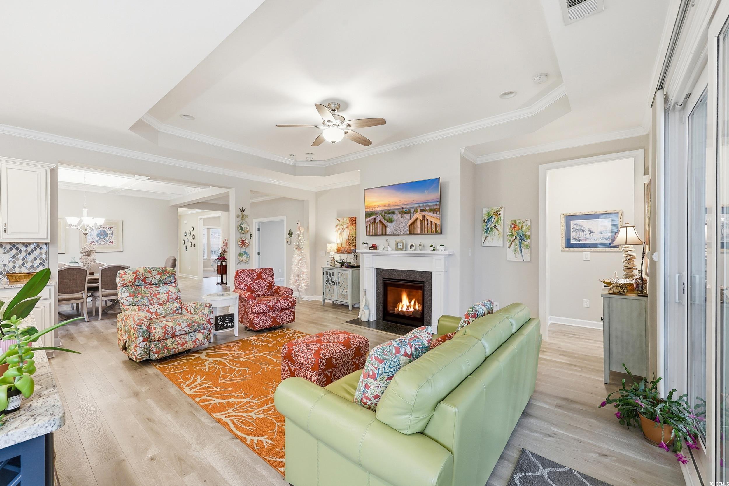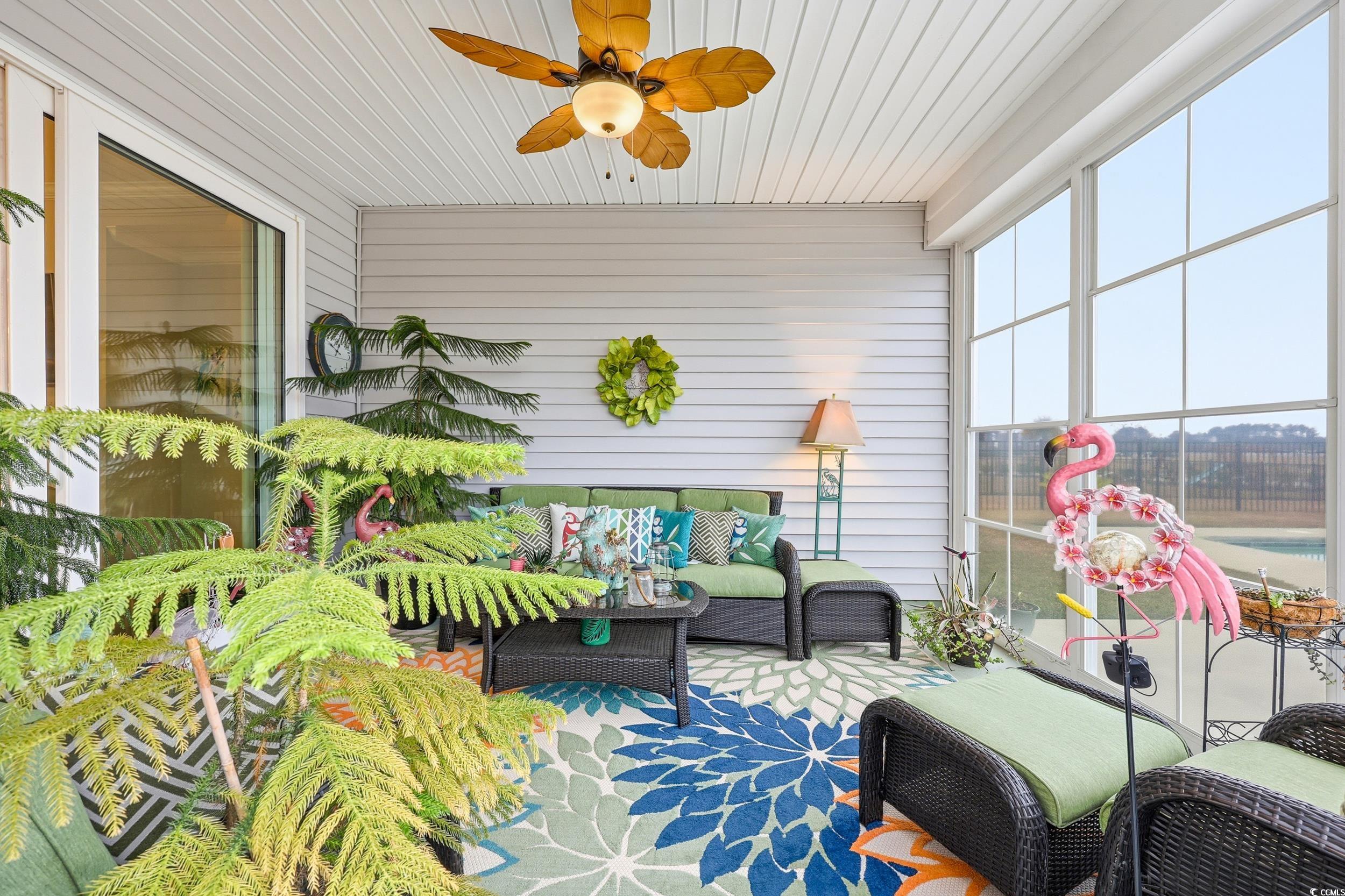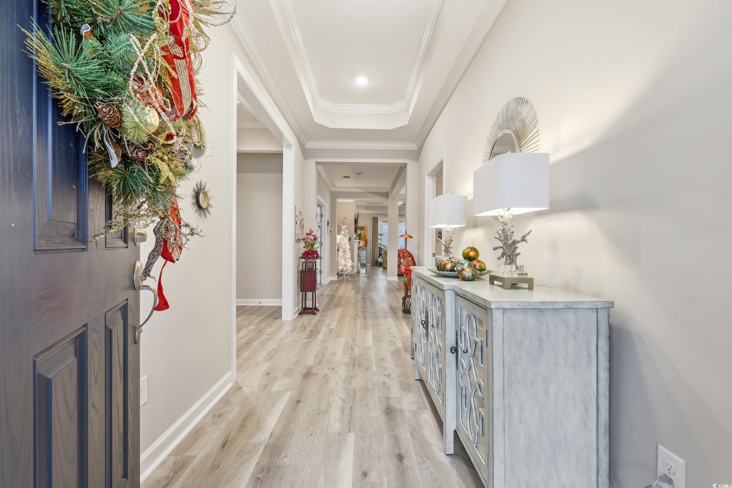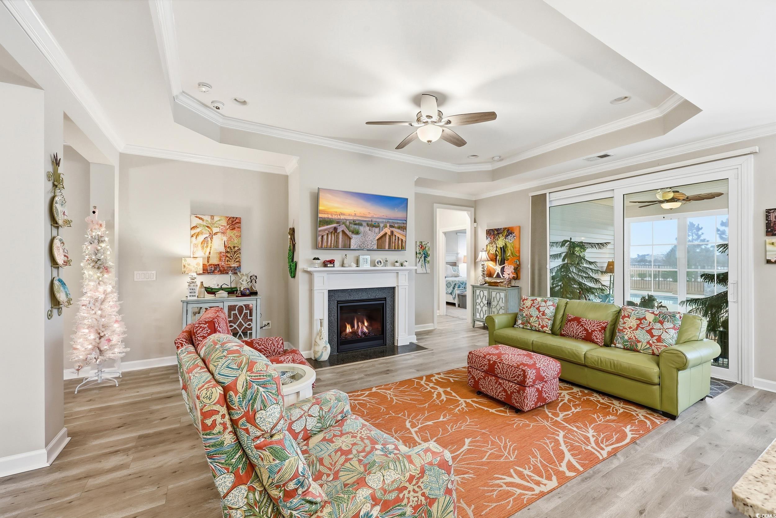 Welcome to this beautifully maintained, model - perfect 3 bedroom, 2 bath home offering exceptional style, comfort and coastal inspired charm. From the inviting front porch to the bright, open interior, every detail has been thoughtfully designed. Step inside to a spacious open floor plan featuring elegant, coffered ceilings, abundant of natural light and designer finishes throughout. The gourmet eat in kitchen boasts granite countertops, tasteful backsplash, stainless steel appliances, large custom island with ample cabinet space with soft close- ideal for entertaining or everyday living. The living and dining areas flow seamlessly together, highlighted by beautiful flooring and custom detailing. The serene primary suite offers a generous walk in closet and spa like bath with double vanities, garden tub and large walk in shower. Two additional bedrooms provide flexibility for guests or an office. Step out into your enclosed sunroom to relax or out to your private backyard oasis with a large patio and saltwater gunite pool. This home sits on almost a half acre lot and features tons of upgrades- finished garage, irrigation system and much more! Bridgewater is an amenity rich community with a large clubhouse with a catering style kitchen perfect for private parties and social gatherings. A state of the art fitness center with virtual fitness classes, a resort style pool with lap lanes and lounging space is surrounded by deck chairs and private cabanas.Theres also pickleball courts and a bocce court, a friendly fire pit, a kayak launch and an enormous outdoor cookout area at the covered pavilion with outdoor grills and televisions. Come live the Good Life at Bridgewater! Amazing location close to hospital, Highway 31, North Myrtle Beach and Calabash. This home won't last long, schedule your showing today!!