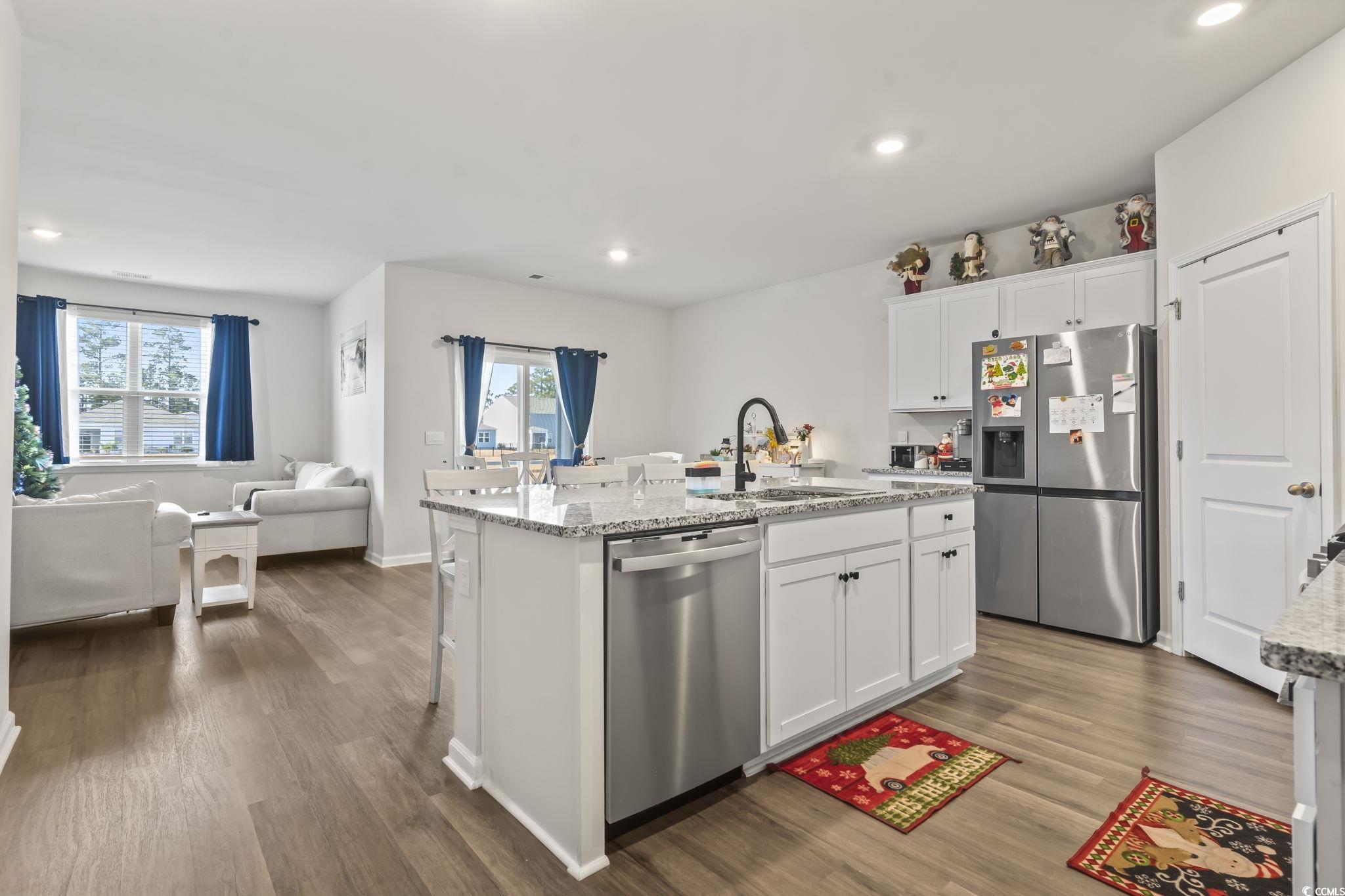 **OPEN HOUSE on Sunday 12/14/24 from 12:00pm-2:00pm.** Welcome to this beautiful 2023 Built 4 Bedroom, 2 Bath Ranch Home in the desirable Vistas at Sun Colony Community! This home is on a Premium Pond Lot in North Myrtle Beach Schools. Pride of ownership beams throughout the tastefully decorated home. Features include ""real"" LVP floors in the Main Living area and Primary Suite, a Rear screened porch, Granite kitchen counter tops, and Board and Batten Trim. All appliances are included! With nearly 1800 sq feet, this popular open floor plan is located less than 15 minutes to Cherry Grove Beach and Shopping in North Myrtle Beach. This home is also very conveniently located to Golf, Dining, Stores and Area Attractions. All information is deemed reliable but not guaranteed. All measurements/square footage are approximate and not guaranteed. Buyer and buyers agent are responsible to verify all information.