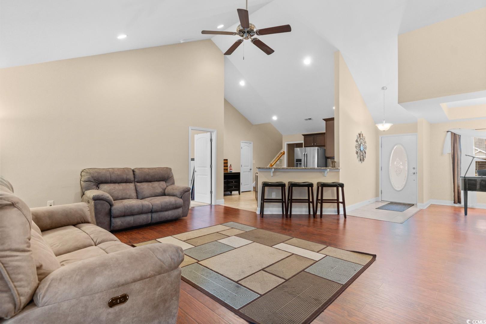 A rare opportunity to own a 4-bedroom, 3-bath home in The Diamond community, perfectly positioned on one of the few lots overlooking the peaceful community pond. During construction, the seller chose to enclose the upstairs loft, creating a private second-story retreat complete with its own full bathroom and built-in shelving. Ideal as a mother-in-law suite, guest quarters, or separate living area for a roommate. This beautifully maintained home features, vaulted ceilings, upgraded granite countertops with a large kitchen island, stainless steel appliances, ceramic tile, and hardwood plank flooring. The washer and dryer will convey. The kitchen, dining room, and living room flow seamlessly together, providing an open and inviting layout perfect for everyday living or entertaining. Additional highlights include a recently serviced irrigation system and a screened-in back porch where you can relax and enjoy the tranquil pond view. Located just 15 minutes from Surfside Beach, Myrtle Beach, and the Murrells Inlet MarshWalk, this home offers quick access to Highways 707, 544, and 31, as well as multiple golf courses. Don't miss out on this exceptional opportunity. Schedule your showing today! *Open house Saturday December 27 from 12pm to 3pm*