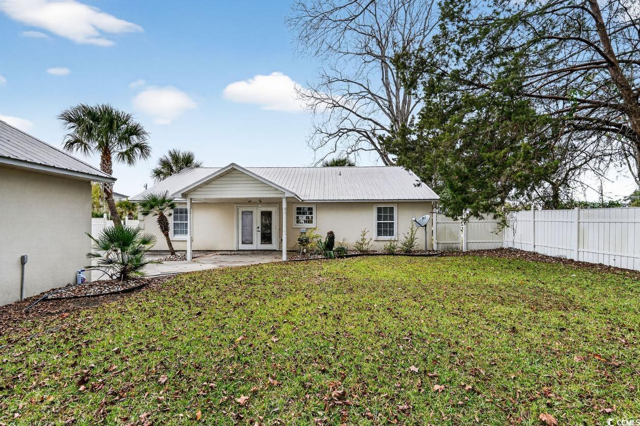 This inviting, single-story stucco residence boasts four bedrooms and two full baths, perfectly situated in the heart of North Myrtle Beach directly across the street from the scenic Intracoastal Waterway. The home features a bright central area combining the open kitchen, breakfast nook, and living space, while its thoughtful split floor plan places two bedrooms and a full bath on either side, ensuring excellent privacy and separation for owners and guests. Upon arrival, a charming front porch provides a welcoming spot to relax and overlook the expansive front yard, perfect for outdoor play. Outdoor living continues in the back, where a spacious backyard features a private covered patio ideal for grilling and entertaining. Further enhancing the property is a long driveway capable of accommodating several vehicles and a detached garage for secure storage, all within a neighborhood that benefits greatly from no HOA. Location is a prime asset, with popular waterfront dining and entertainment spots like Boardwalk Billy's and Local on the Water, along with water sport rentals and fishing guides, located just down the street, while a short drive down 11th Avenue North from HWY 17 provides quick access to pristine beaches and abundant public parking, making this an ideal central base for enjoying local golf and a plethora of other year-round activities. Zoning allows for short term rentals as long as proper city/county permits and license are obtained.
