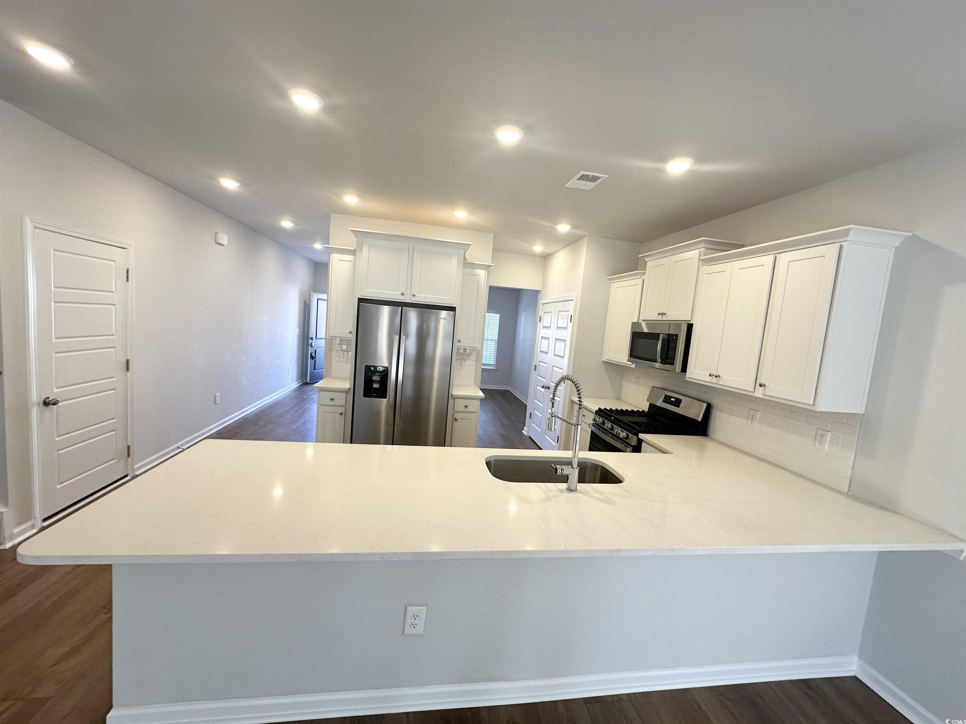 Built in 2024, this turnkey 5-bedroom, 3.5-bath Lennar Kensington model offers modern finishes and thoughtful upgrades in the highly desirable Carolina Forest area of Myrtle Beach. With 2,449 heated sq. ft. of living space, this natural gas home features granite countertops, a gas range, gas fireplace, and custom blinds throughout. The open-concept main level includes the primary suite, offering comfort and privacy on the first floor. Upstairs, you'll find a spacious 19' x 14' bonus room with ensuite bathroom and upgraded Luxury Vinyl Plank (LVP) flooring replacing carpet in three bedrooms. Enjoy outdoor living on the screened-in back porch overlooking a private wooded preserve with a PVC privacy fence. Exterior upgrades include enhanced landscaping with palm trees, landscape curbing, and decorative white rock accents for exceptional curb appeal. Unbeatable location - walking distance to BJ?s Wholesale and several restaurants and across from Tanger Outlets, a few minutes to Costco, Walmart shopping, dining, award-winning schools, golf courses, and the beach. Community amenities include a pool and garden area, ideal for low-maintenance coastal living.