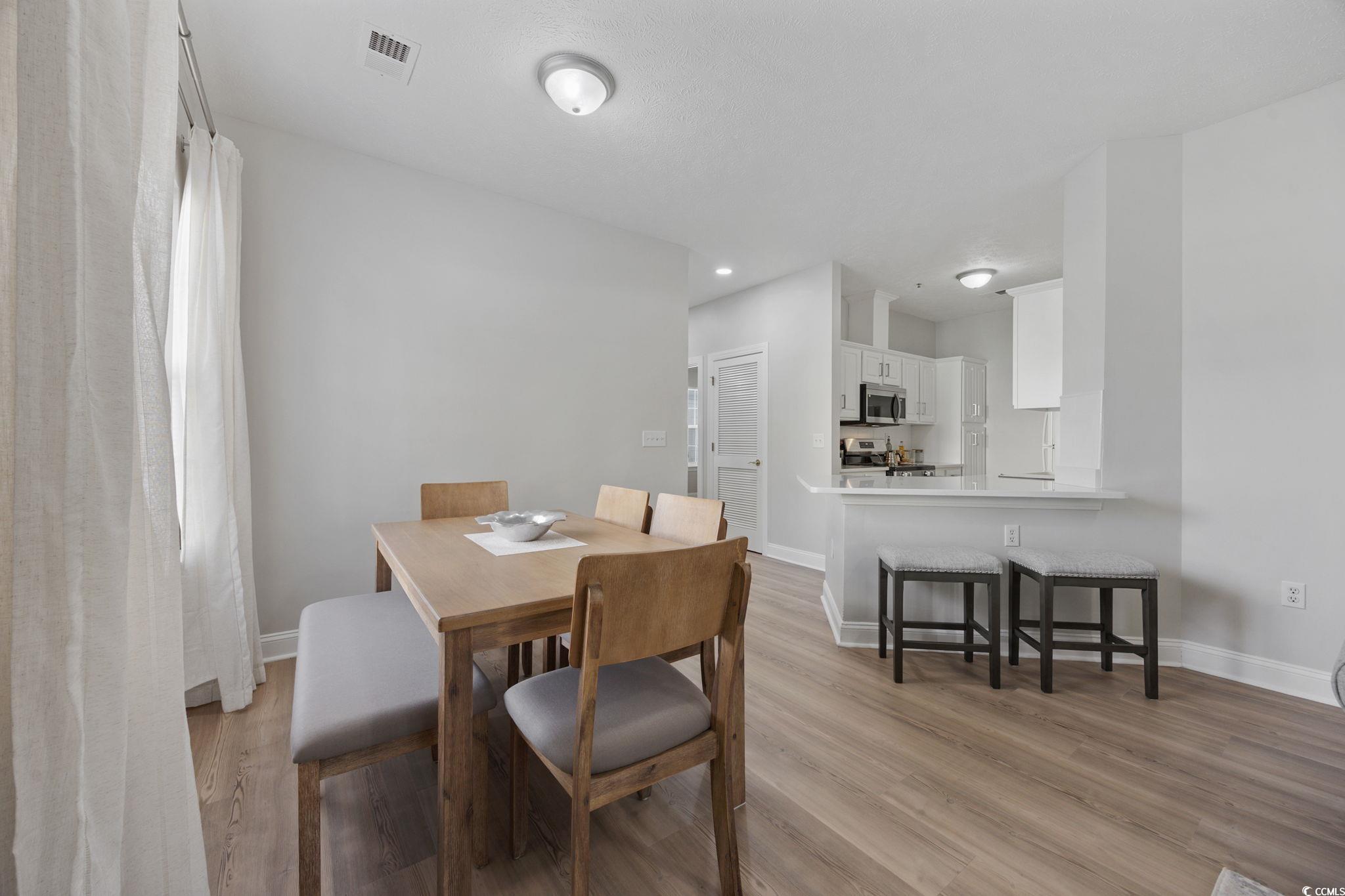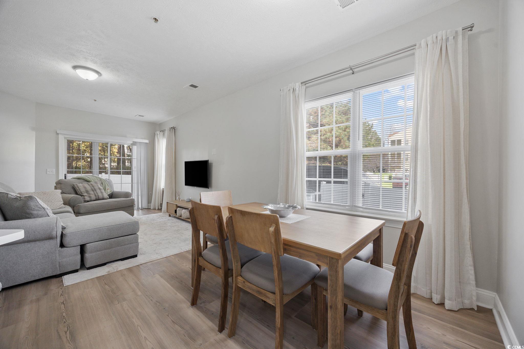 This immaculate, fully renovated, first-floor end unit condo located in the Fountain Pointe community could be the perfect home or investment opportunity for you. The unit boasts a generous floor plan featuring three bedrooms and two full bathrooms, with no detail missed in the stunning, turn-key renovation. As you enter through the foyer, a hallway provides access to two spacious guest bedrooms, a full bathroom, and a laundry closet. Past that, you'll find a comfortable galley-style kitchen that offers extra seating at the breakfast bar and flows effortlessly into the main living space and dining area for open concept entertaining. The living room features direct access to a private screened-in patio, ensuring an abundance of natural light and a peaceful outdoor retreat. Tucked away for privacy off the living area is the expansive primary bedroom suite, complete with its own walk in closet and en-suite bath. Fountain Point has a low HOA fee that covers common electric, water & sewer, trash pickup, landscaping, pest control, common maintenance/repairs, master cable antenna and a community green space and gazebo that is perfect for pets and enjoying the beautifully maintained community. It is also located in a prime location that allows you to easily access all that Grand Strand has to offer. This is a rare opportunity to own a maintenance-free, fully updated coastal home or long term rental property! Book your showing today as you will not be dissapointed!