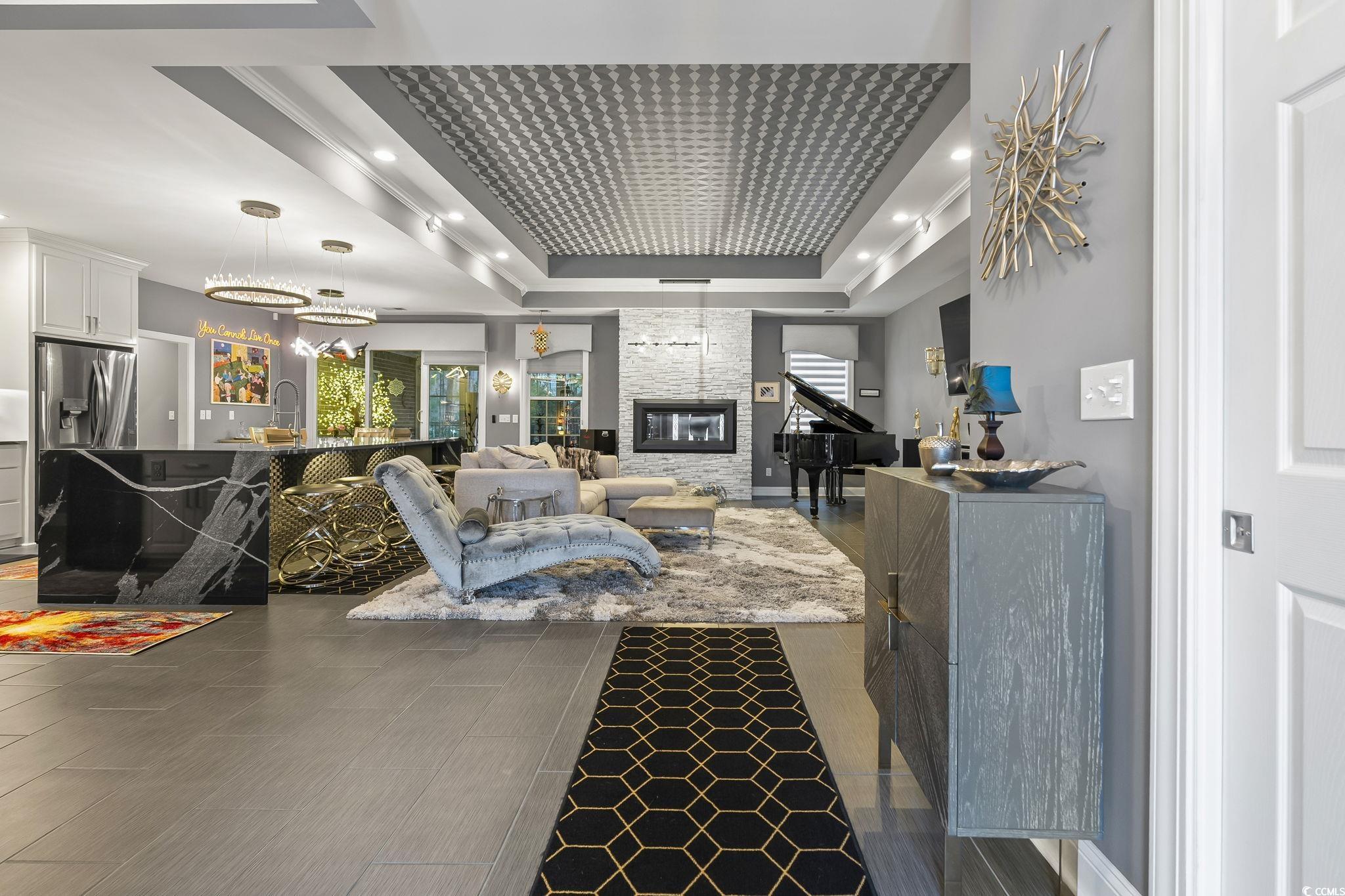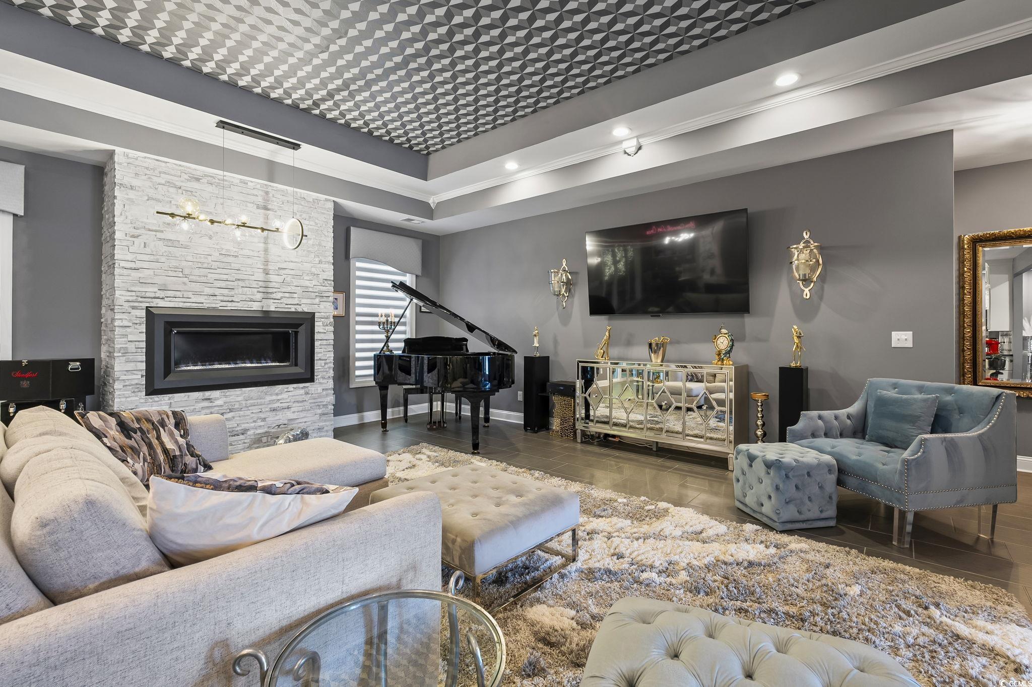 FamilyRoom: TrayCeilings, Fireplace