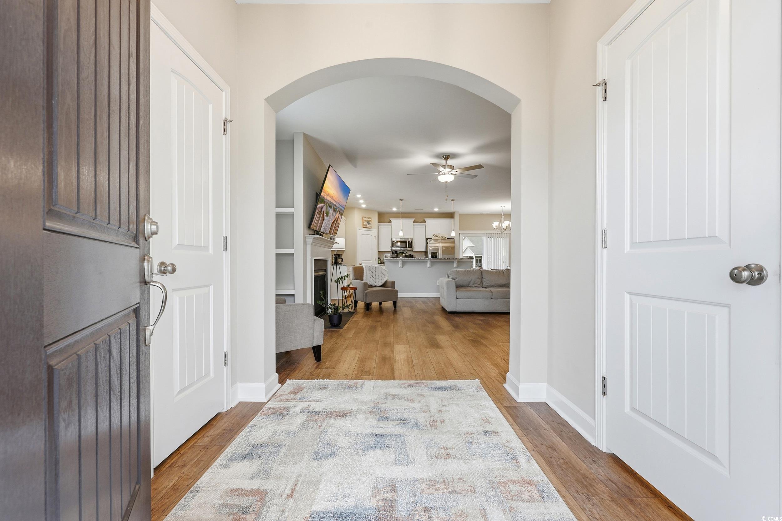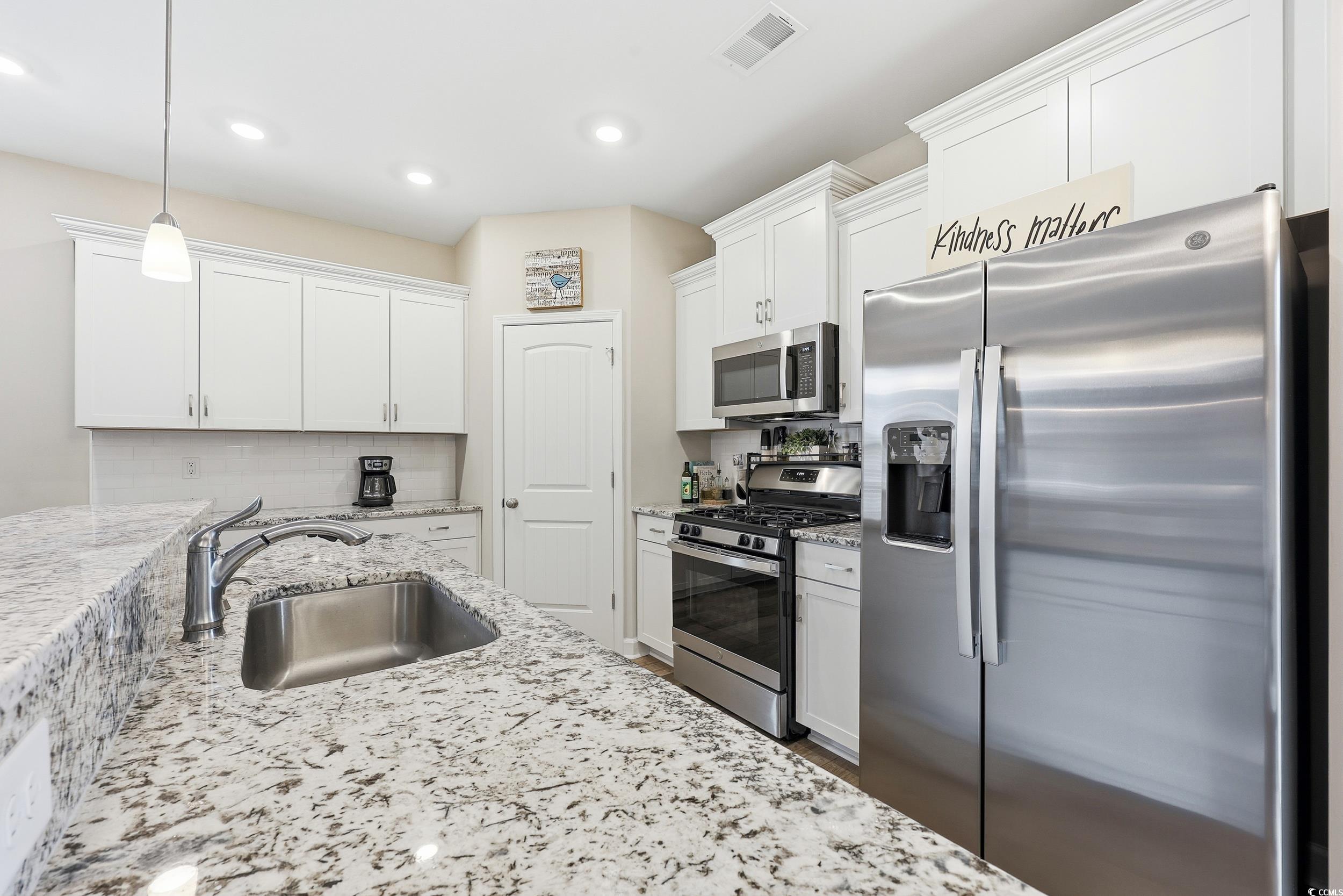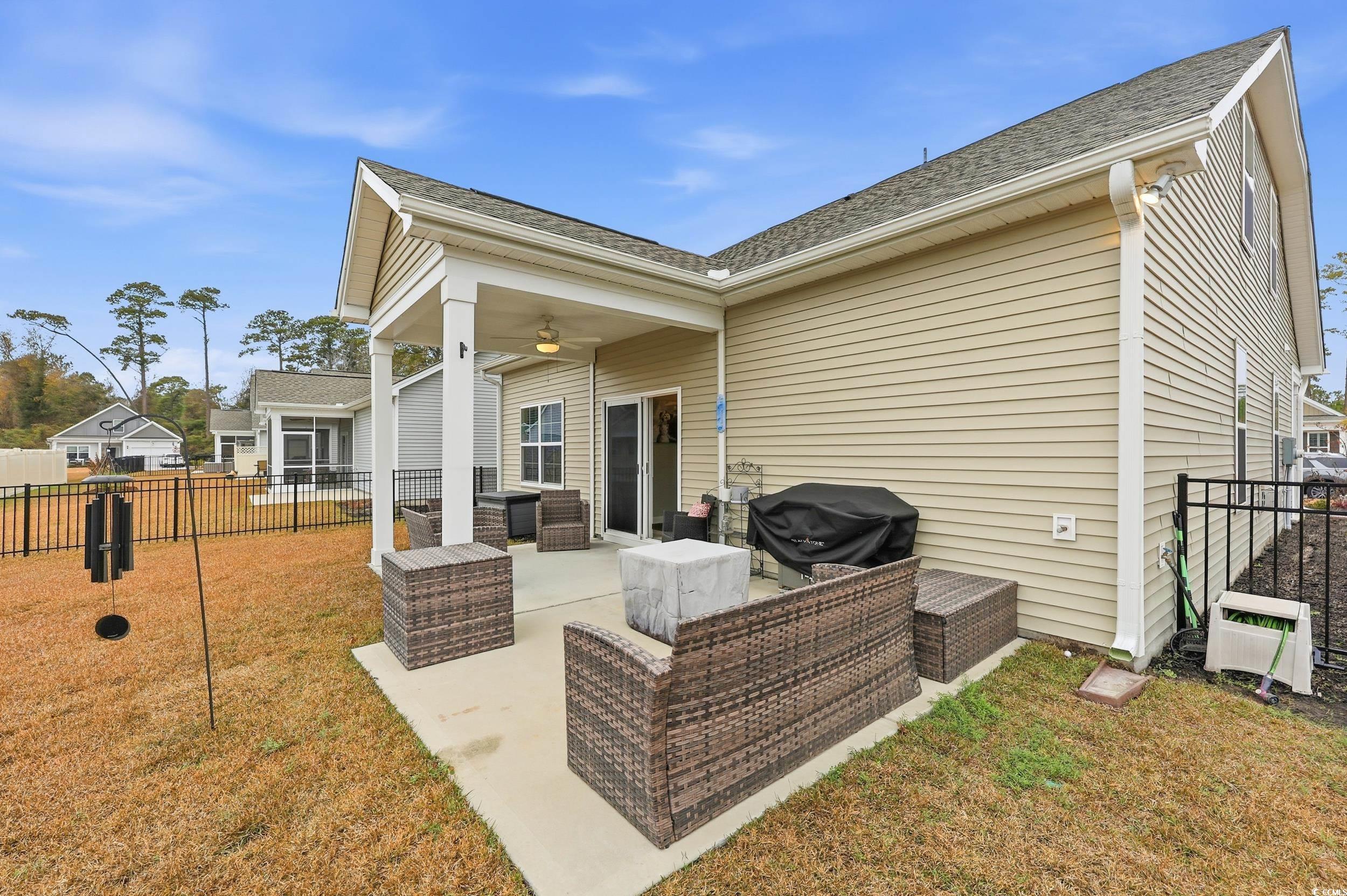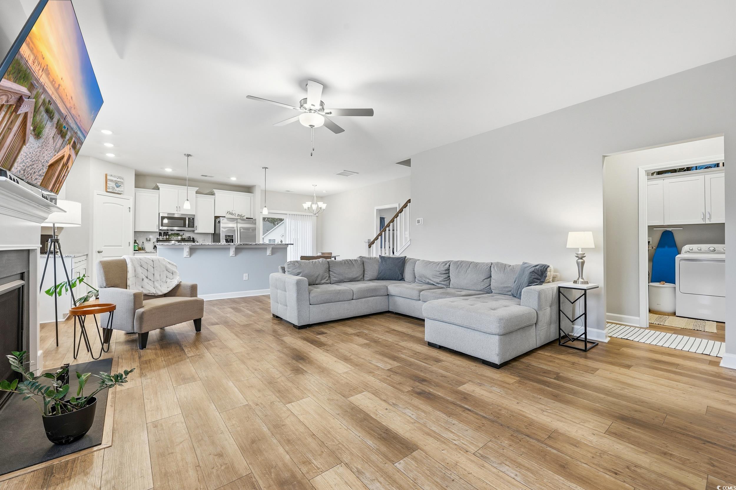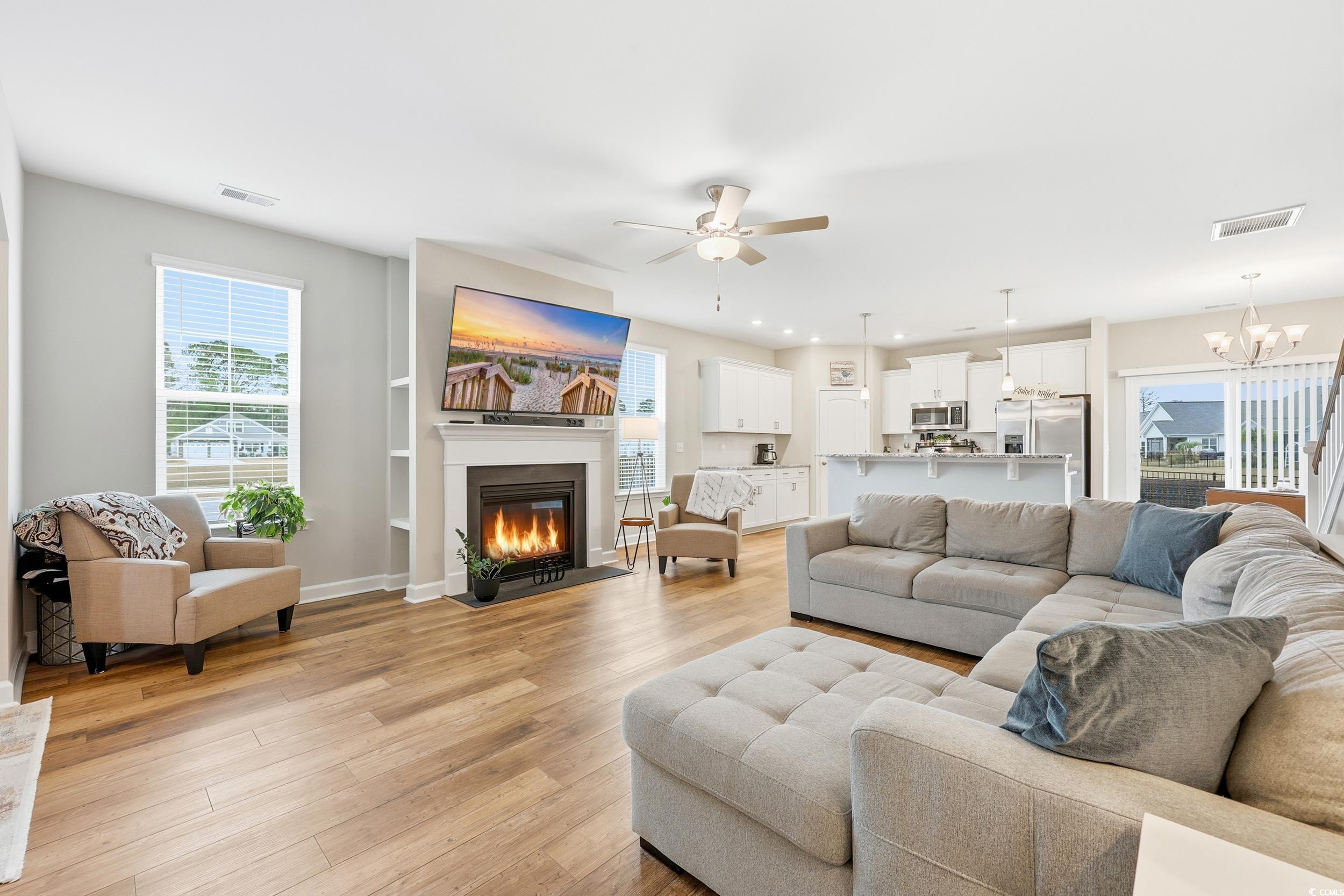 Discover modern coastal living near the historic Little River waterfront. Perfectly situated just minutes from several beautiful beaches in both South Carolina and North Carolina, this newer 3-bedroom, 2.5-bathroom home offers the ideal blend of convenience, comfort, and style. Step inside to an open-concept main level featuring Luxury Vinyl Plank flooring throughout, creating a seamless flow between the spacious living area and the contemporary kitchen. The living room includes a cozy fireplace, while the kitchen offers generous counter space, modern finishes, and a bright breakfast nook. A large sliding glass door fills the space with natural light and leads to the expansive fenced backyardcomplete with a covered porch and an extra concrete pad, perfect for grilling, entertaining, or relaxing outdoors. The primary suite is conveniently located on the main floor, offering privacy and ease. The en-suite bathroom includes a large tiled shower and a double-sink vanity, giving the space a clean and luxurious feel. Upstairs, two spacious guest bedrooms share a full bathroom, providing a private retreat for family or visitors. Additional features include a laundry room off the garage and a practical drop zone for coats, bags, and everyday essentials. Not to mention the storage in this home. Large attic storage space, over the garage elevated storage and numerous closets throughout the home offer ample space for season items. With its modern design, functional layout, and unbeatable location near dining, waterfront attractions, and multiple beaches, this home is the perfect coastal retreat or everyday haven.
