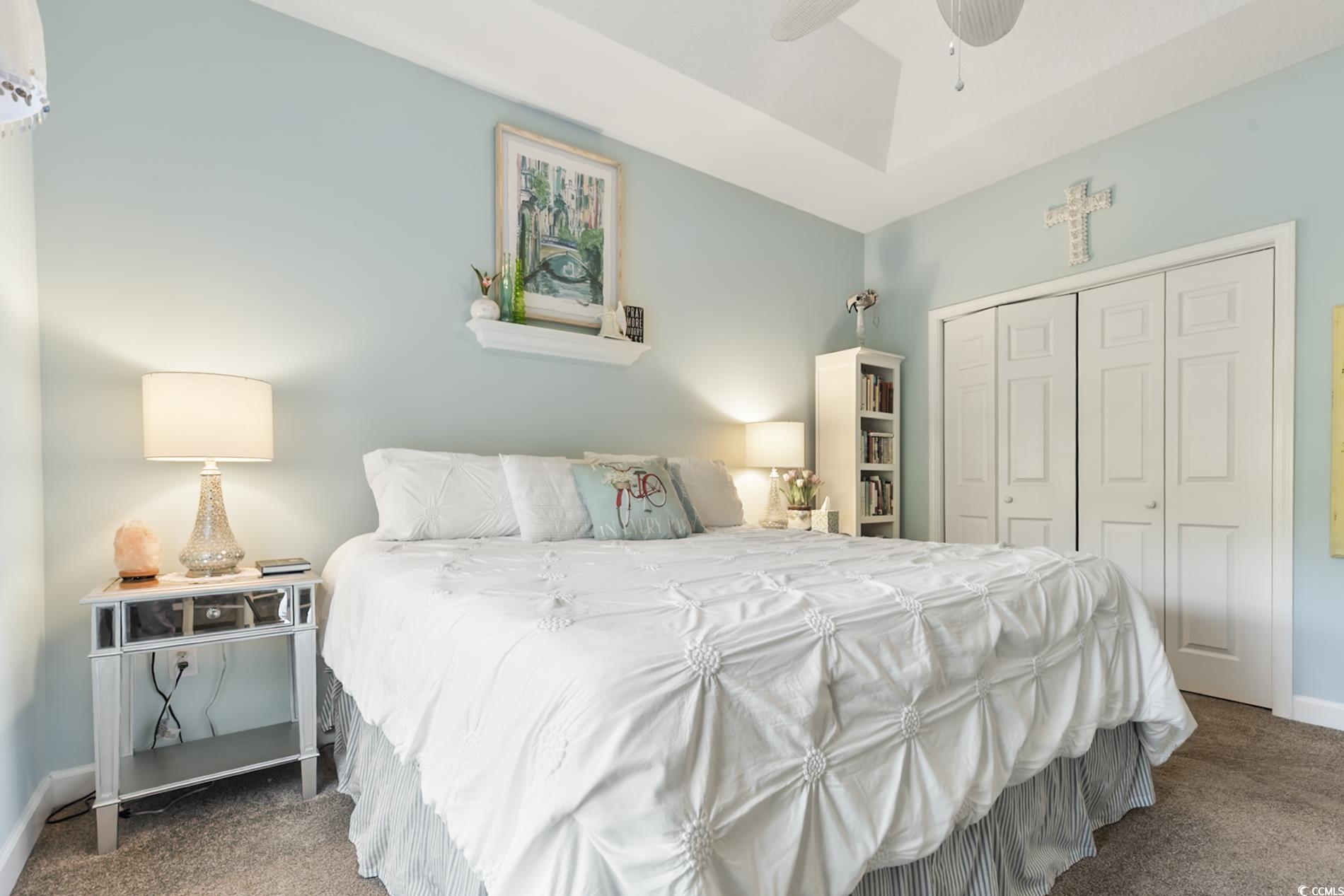 PrimaryBedroom: TrayCeilings, CeilingFans, MainLevelMaster, WalkInClosets