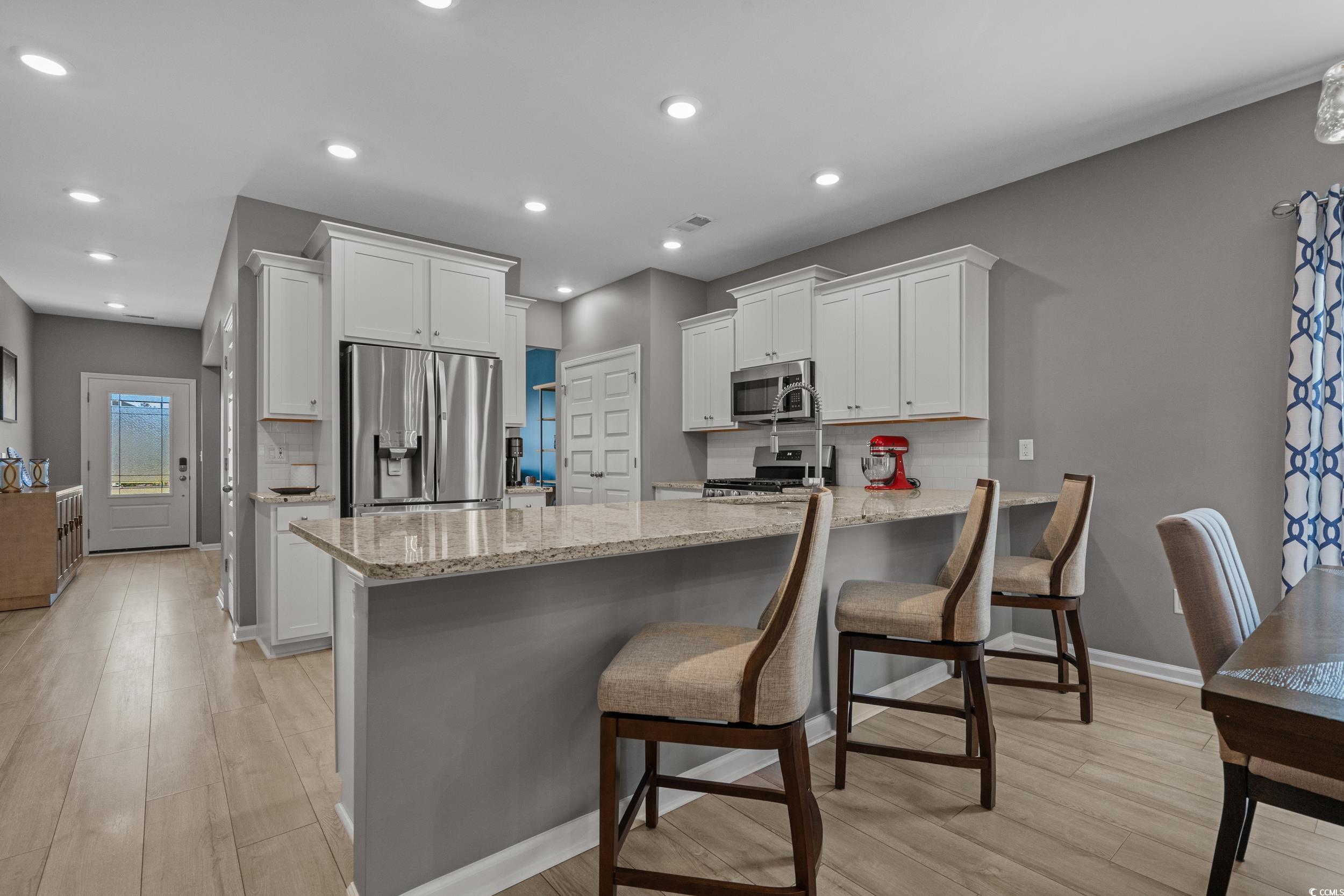 Discover coastal living at its finest in this spacious and beautifully maintained 5-bedroom, 3.5-bath home located in the highly desirable Preserve at Pine Lakes community. Situated just minutes from the beach this property offers the perfect blend of comfort, convenience, and lifestyle. As you step inside, youre welcomed by an inviting open floor plan that effortlessly connects the living, dining, and kitchen areas. The kitchen is complete with granite countertops, modern cabinetry, a walk-in pantry, gas range, and plenty of prep space ideal for cooking, hosting, and everyday living. The primary suite provides a peaceful retreat with its spacious layout and ensuite bath. Additional bedrooms offer flexibility for family, guests, or a home office setup. Step outside to enjoy the coastal breeze from the comfort of your screened-in porch, perfect for morning coffee or evening relaxation. The fully fenced yard makes a great space for pets, play, or outdoor entertaining. This home also includes a 2-car garage and is conveniently located just a short golf cart ride to the beach. Residents of this stunning community have access to a community pool, pickleball court, playground, and walking trails. The communitys prime location puts you close to schools, shopping, dining, golf courses, and, of course, the beautiful beaches of Myrtle Beach. This home truly has it allspace, style, and an unbeatable location. Owner is a SC licensed Realtor.