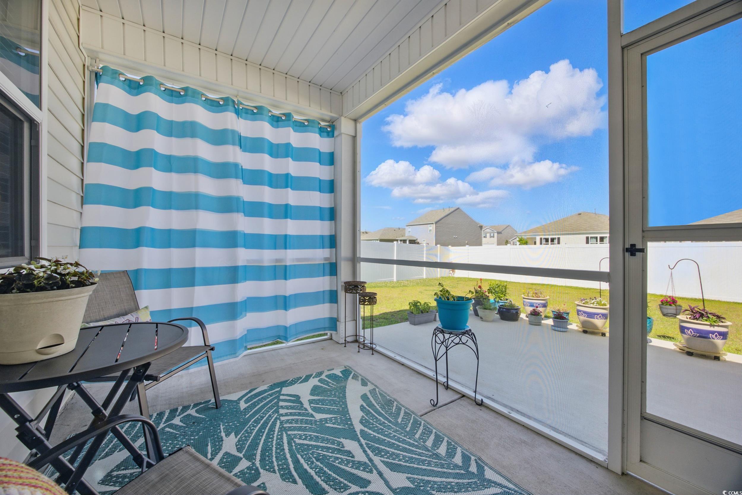Welcome to 1723 Perthshire Loop in the sought-after Village Oaks community of Myrtle Beach! This beautifully designed Aria floor plan offers the perfect blend of modern style, everyday functionality, and low-maintenance living all in a prime location just minutes from International Drive, Highway 31, and Highway 22. All the essentials that new homeowners typically add, have already been taken care of (Window coverings, gutters, remote ceiling lights with fans in the bedrooms and living room, 6 foot privacy fence, screened porch, and extended outdoor patio). Step inside to discover an open-concept layout filled with natural light and 9-foot ceilings that enhance the spacious feel. The kitchen features 36"" staggered cabinetry, sleek granite countertops, stainless steel appliances, and a large breakfast bar overlooking the living and dining areas perfect for entertaining or relaxing at home. The split -bedroom floor plan ensures privacy, with a spacious owners suite tucked away in the back of the home, complete with a walk-in closet and en-suite bath. Two additional bedrooms and a full bath provide flexible space for guests, family, or a home office. Enjoy outdoor living year-round on the covered screen rear porch with extened patio for backyard BBQs ideal for morning coffee or evening gatherings. Additional features include gas cooking, a tankless water heater, and an industry-leading smart home package, allowing you to control lights, locks, and more from your phone or tablet and gutters. Village Oaks offers a convenient coastal lifestyle with low-maintenance homes and quick access to dining, shopping, golf, and the beach.