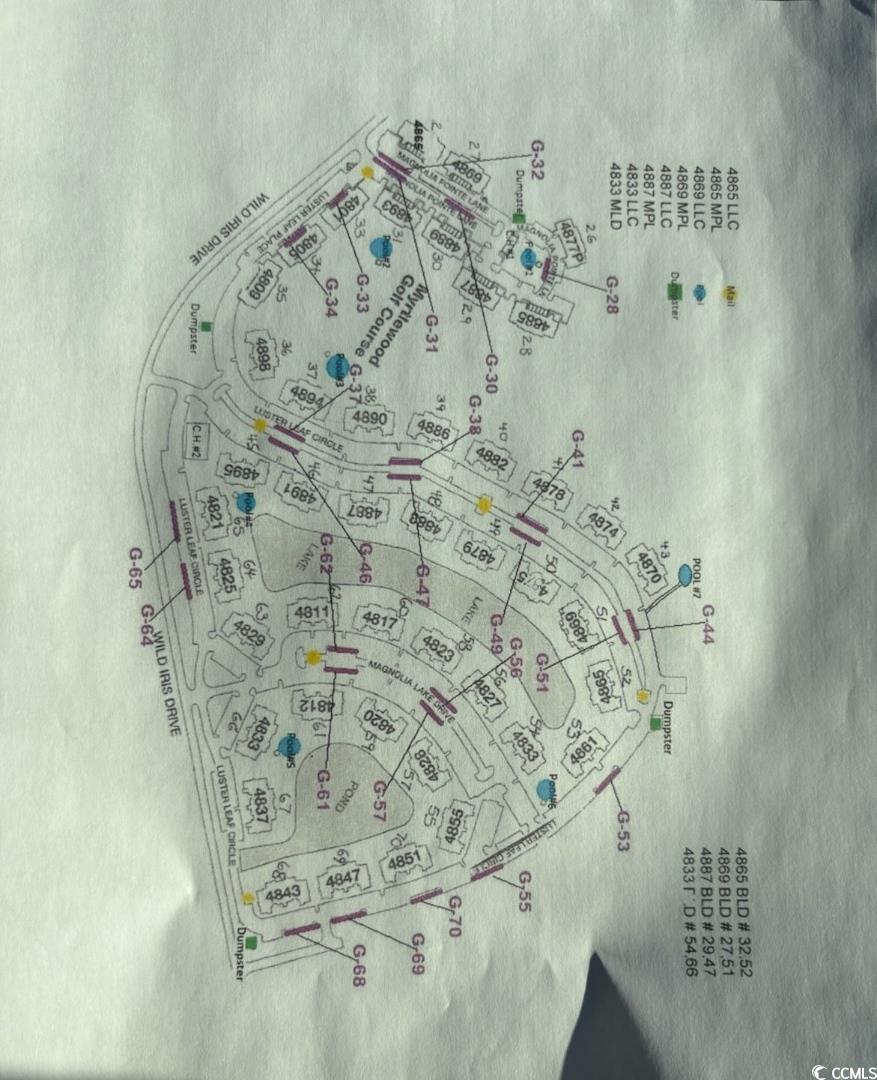 Turn west on 48th ave off of Hwy 17 bypass, turn right onto Wild Iris Dr, left onto Magnolia Lake Dr, turn right at the 1st cross street onto Luster Leaf Cir. Garage is located across from 4847 Luster Leaf Circle, end unitCourtesy of Sloan Realty Group - Fax: 843-619-7111