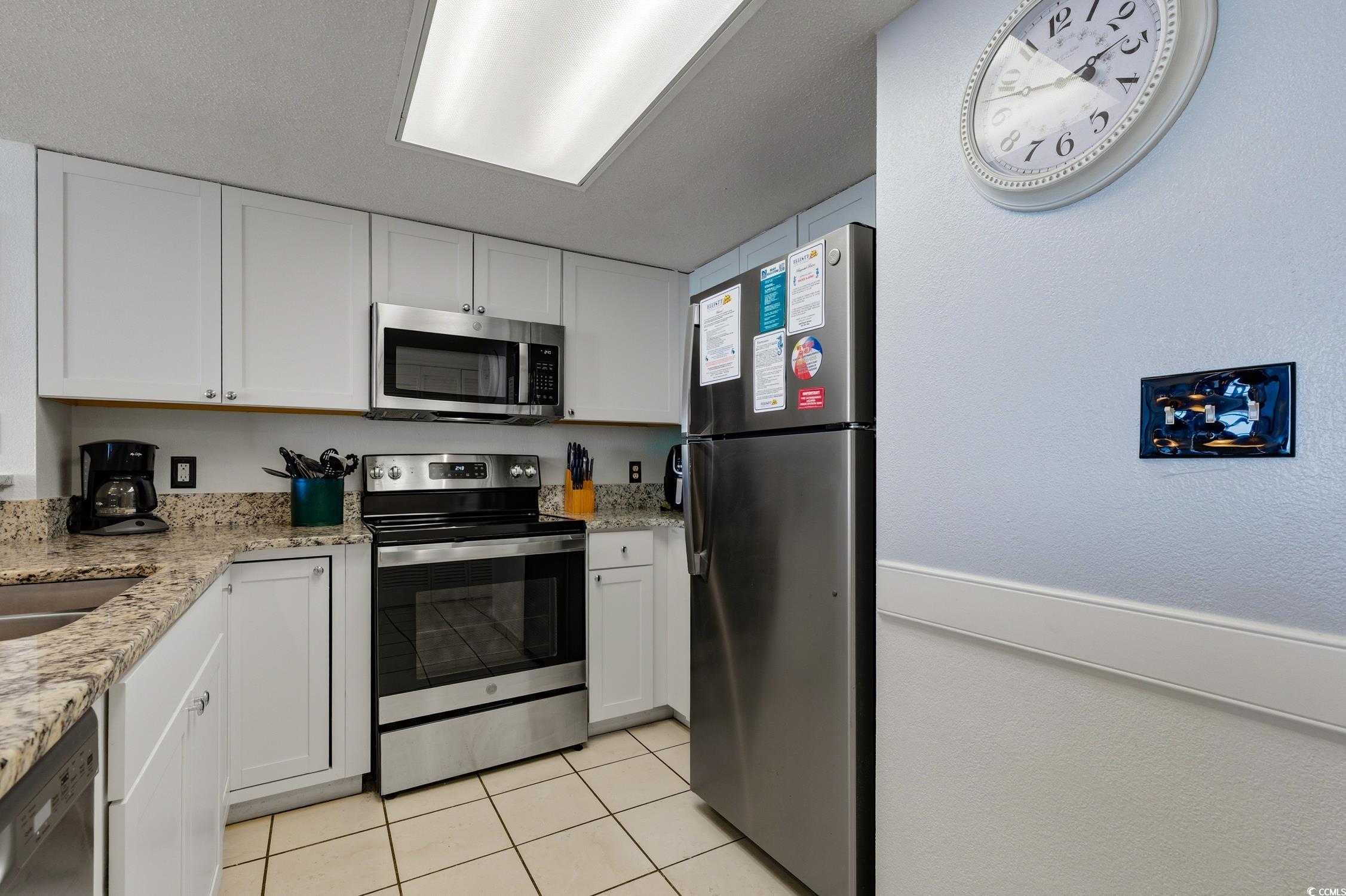 Direct oceanfront two-bedroom, two-bath condo at Bay Watch Resort. Located in the popular center tower, this residence offers stunning oceanfront views from both the living room and main bedroom, each with access to a private balcony. The condo features tile in the foyer, kitchen, and bathrooms, with luxury vinyl plank flooring throughout the rest of the unit (no carpet). The kitchen boasts granite countertops, updated refaced cabinetry, new stainless steel appliances (installed in 2024), and a full-sized stack washer/dryer. The owner renovated in 2023 with all-new mattresses, furniture, drapes, and light fixtures (including four can lights in the hallway). Chair rail molding was added throughout. The five striking beach photos in the entryway were taken by the owner directly from the balcony. This condo is ideal for a second home or vacation rental. With low HOA fees for a property of this type, it offers exceptional value. Bay Watch Resort provides numerous amenities, including a large oceanfront pool deck with 18 distinct features, outdoor pools, hot tubs, a lazy river, an indoor lazy river, two indoor pools, a game room, a fitness center, a convenience store, restaurants, lounges, and conference facilities. Located close to Barefoot Landing, Ocean Drive, Tanger Outlets, and the wide range of shopping, dining, and attractions in North Myrtle Beach, this condo offers both convenience and relaxation. The HOA fee covers water/sewer, unit electric, cable, and internet. All information is deemed accurate, but buyers and their agents are responsible for verifying all details.
