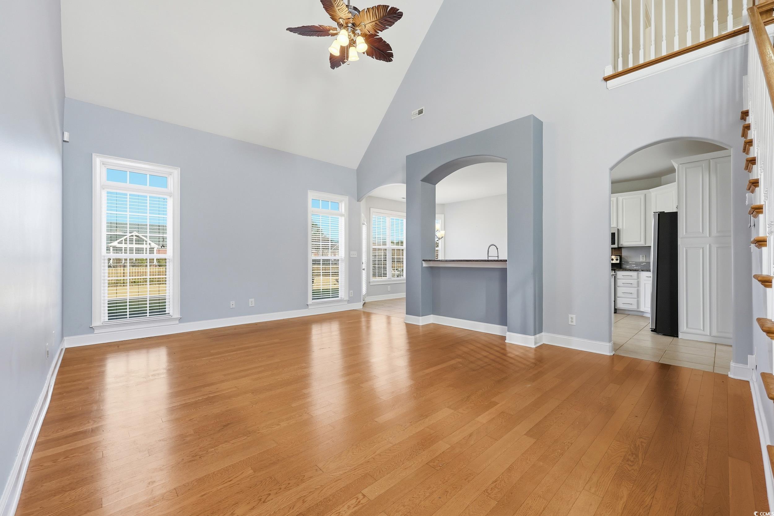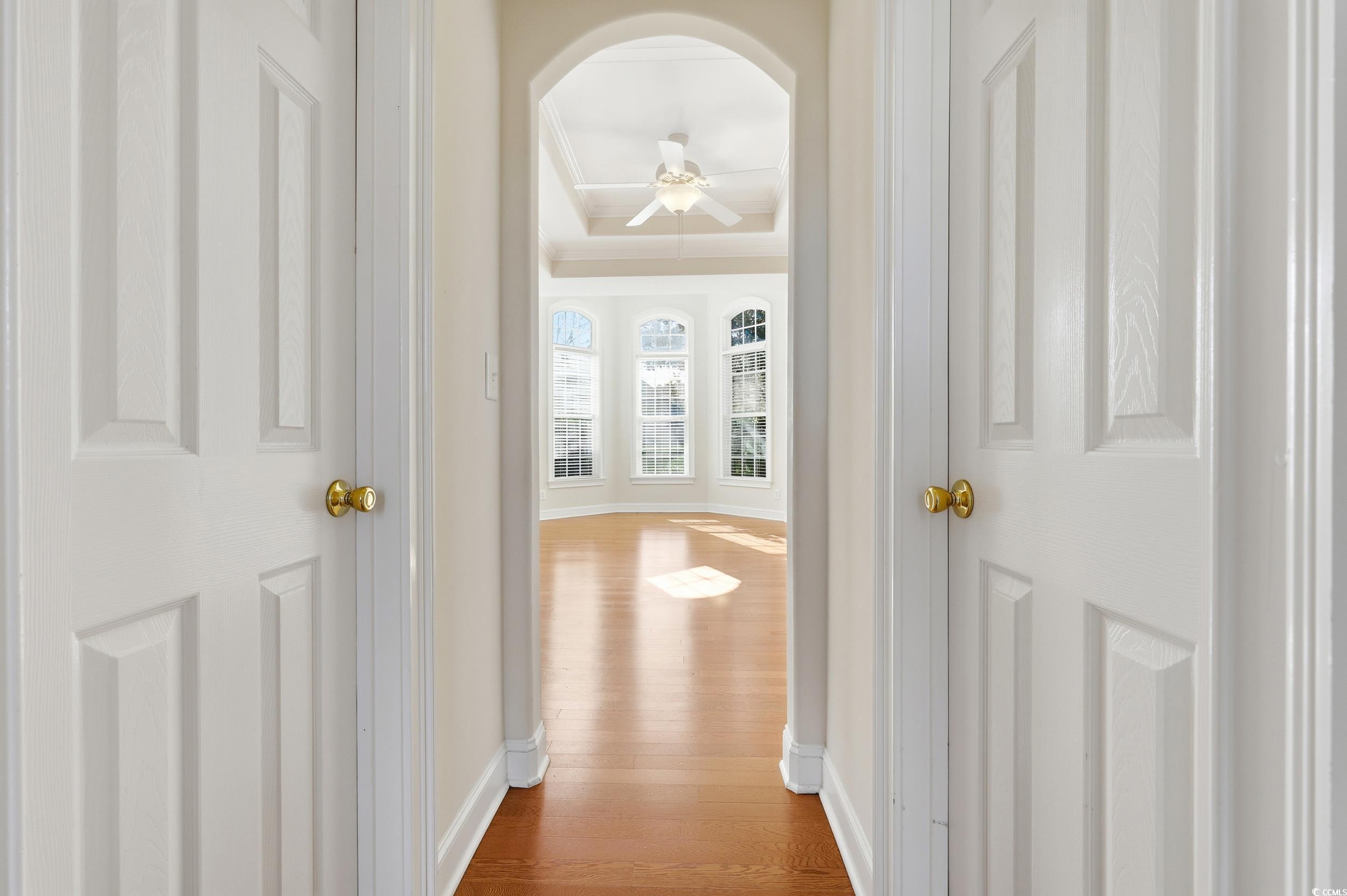 Imagine coming home to a stunning all-brick residence in the coveted Covington Lake community of Carolina Forest, where elegance meets comfort and every detail has been thoughtfully upgraded. This stunning all-brick 5-bedroom, 3 bath home is packed with upgrades. From the moment you step into the grand 20+ foot foyer, youll be captivated by the soaring ceilings, abundant natural light, and gleaming hardwood floors that flow seamlessly throughout the main living spaces. Enter the gourmet kitchen, a chefs dream with crisp white cabinetry, granite countertops, stainless-steel appliances, and a brand-new BOSCH dishwasher. Whether youre hosting a formal dinner in the dedicated dining room or enjoying a casual meal with family, this space is designed to impress. All measurements and square footage are approximate and not guaranteed. Buyers are responsible for verification, including HOA information. The first-floor primary suite is your private retreat, complete with a tray ceiling, sitting area, dual walk-in closets, and a spa-like bathroom featuring dual vanities, a tiled walk-in shower, and a jacuzzi tub. Across the home, a guest suite offers privacy for visitors, in-laws, or extended family. Upstairs, three additional bedrooms provide endless flexibilityuse one as a bonus room, theater, game room, or home office. The homes recent updates bring peace of mind and modern convenience: new HVAC systems with smart thermostats, fresh custom paint on first level, new chandeliers and lighting, a new jacuzzi tub motor, ADT security system, a new aluminum backyard fence, updated landscaping with lighting, and an in-ground sprinkler system. Big-ticket items like the roof (2021), water heater (2022), and HVAC (2024) have all been meticulously maintained. Step outside and relax in your private backyard overlooking tranquil pond views, with white marble rock, custom curbing, and a propane hookup perfect for grilling or adding a fireplace. The front has mature landscaping and new curb scaping. The community itself is a treasure, with sidewalks, lakes, a pool, playground, and ample parking, all just minutes from shopping, dining, schools, medical facilities, golfing, and the beach. This is more than a houseits a place to create memories, entertain loved ones, and embrace the coastal lifestyle youve always dreamed of. Schedule your showing today and step into your dream home.