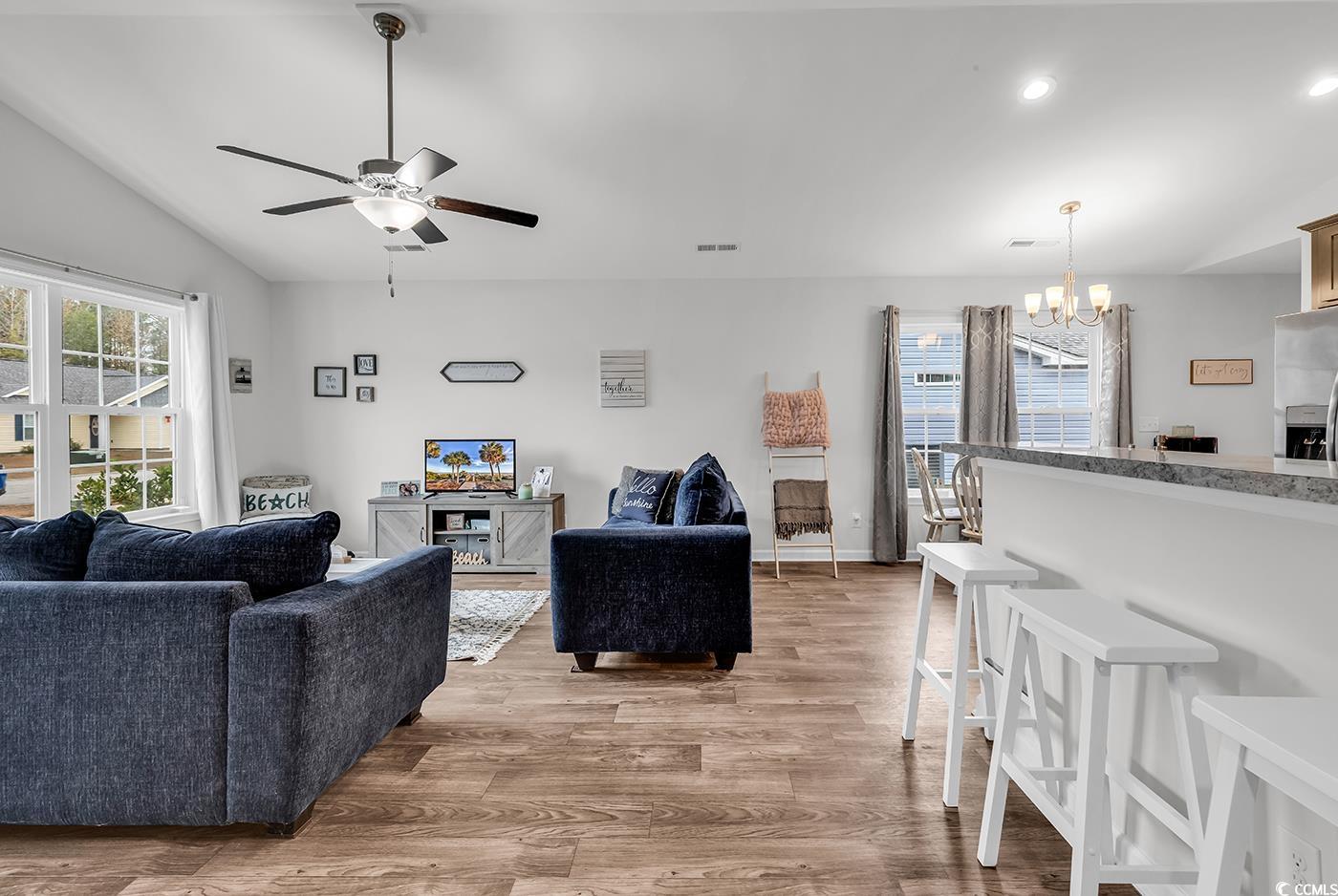 Welcome to 82 Desurrency Ct, a beautifully maintained 3 bedroom, 2 bath home tucked away on the serene outskirts of historic Georgetown, SC. Built in 2021 and used only sparingly as a second home, this residence remains in truly pristine condition. The open-concept living area features high cathedral ceilings that create a bright, airy atmosphere, while the master suite showcases tray ceilings, a generous wall-in closet, and a large walk-in shower. Additional upgrades include sliding glass doors in both showers, keyless entry, and an Alexa-enabled smart thermostat. Set on a spacious corner lot in a quiet and peaceful neighborhood, this low-maintenance home has also been recently power washed. Enjoy a convenient location just 15 minutes from downtown Georgetown and 30 minutes to Pawleys Island, Brookgreen Gardens, and Huntington Beach State Park.