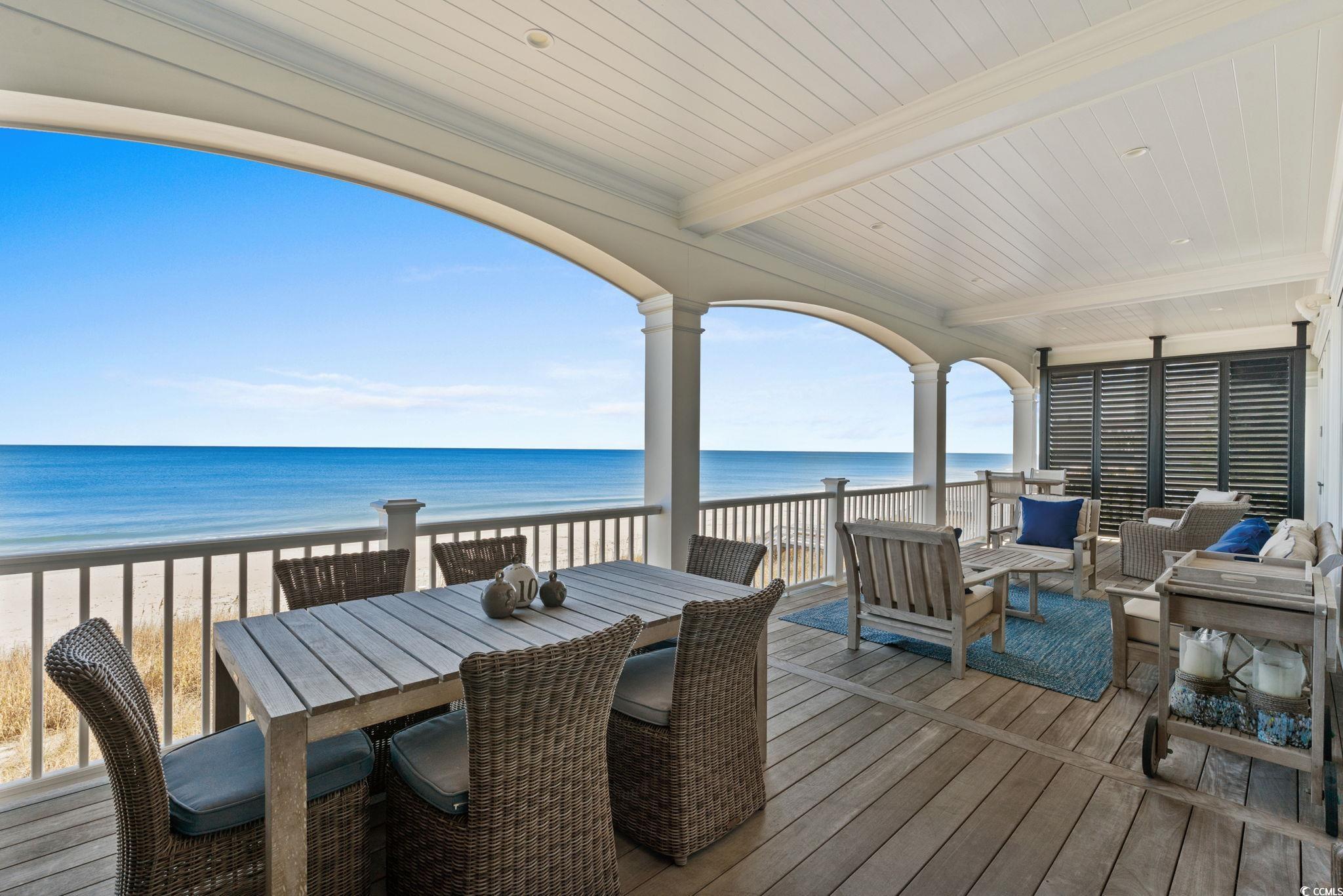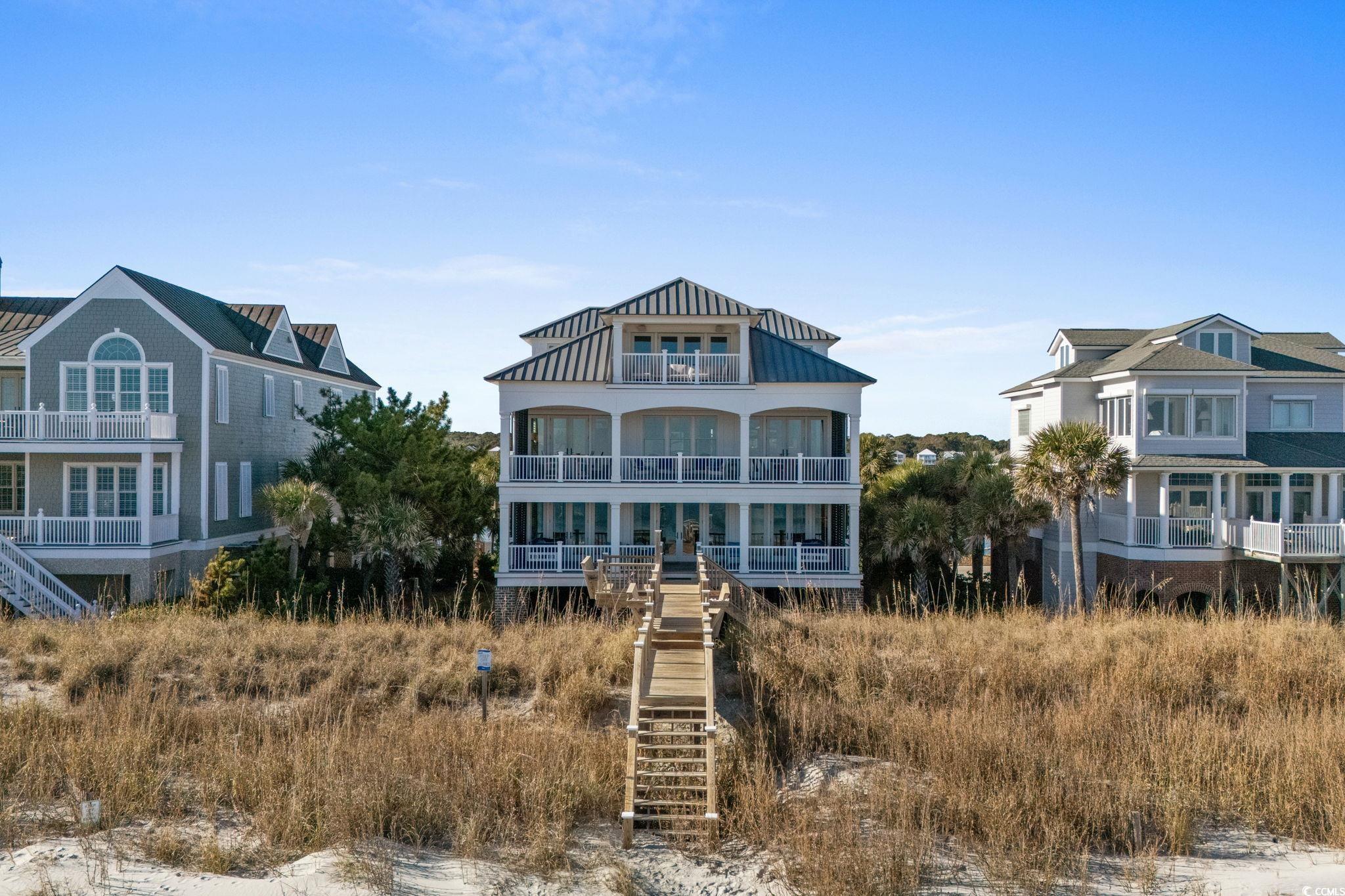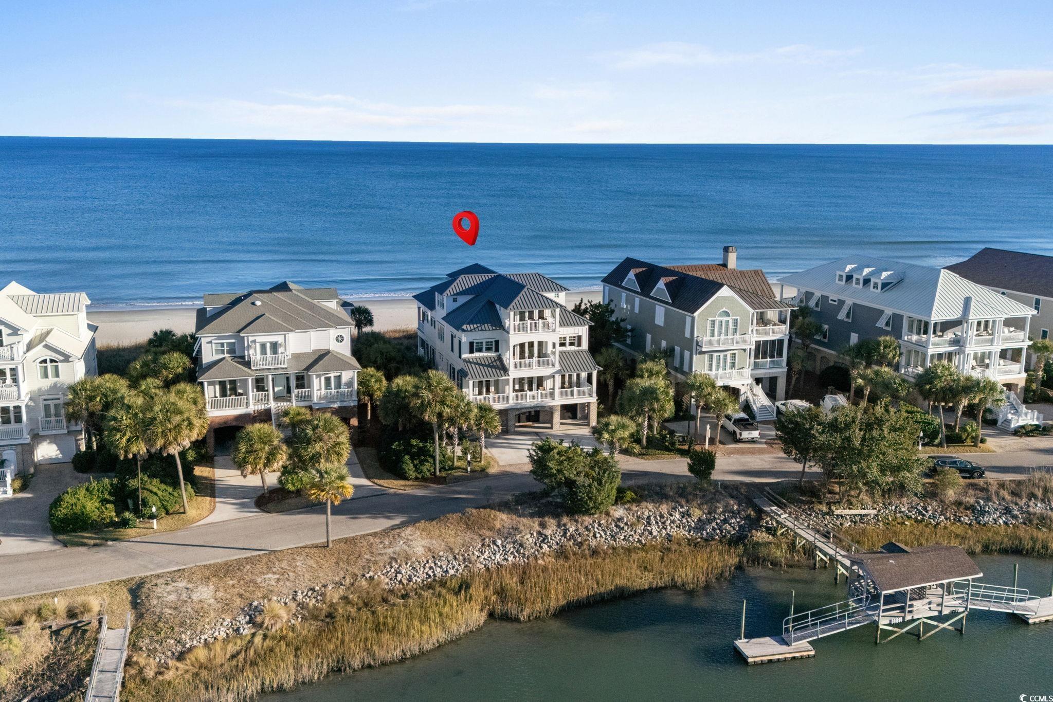 A Spectacular Oceanfront and Creekfront Residence unmatched in Quality and Style with Impeccable Exterior and Interior Finishes. Situated on the Premier Lot 19 The Peninsula"" at Inlet Point South to provide Unobstructed Coastline Views from Huntington Beach to the South End of Pawleys Island. Custom Home Design by Local Renowned Architect David Graham Showcases an easy flow on all 4 Floors of Interior Living Space. Built to maximize power against the elements by Local Master Builder Ted Chapman, the Full Concrete and Steel Frame is partnered with Brick Columns and Brick Skirting providing Durability and a Classic Aesthetic. On the inside All Wood Shiplap Walls, Heart Pine Floors, Shiplap Tray and Vaulted Ceilings with Hand Hewn Wood Beams, 83 Anderson Windows, and 11 Anderson French Door Systems complete this Mastery of Strength and Beauty. Exquisite Visionary Decor by Local Artistic Designer Marnie Heck highlights one of a kind Custom Furnishings, Art, and Accessories by Local Artisans that shall convey. Additional Superior Features include Closed-loop Top of the Line Geo-Thermal Heating and Cooling, 3 Climate-Conditioned Walk-in Attic Storage Rooms, Sonos Sound Throughout, and Hard-Wired Security System. This Beach Home is a True Pawleys Island Gem Not Shabby just Chic!