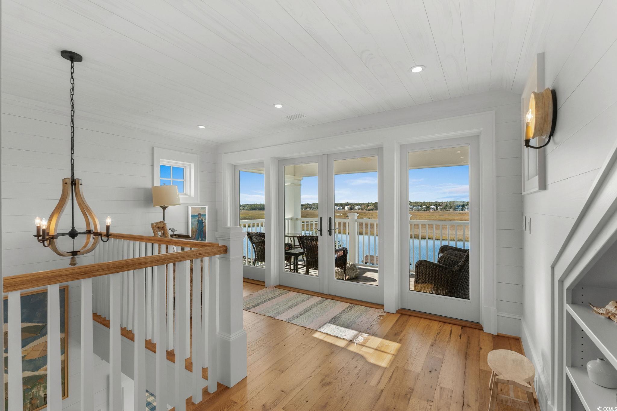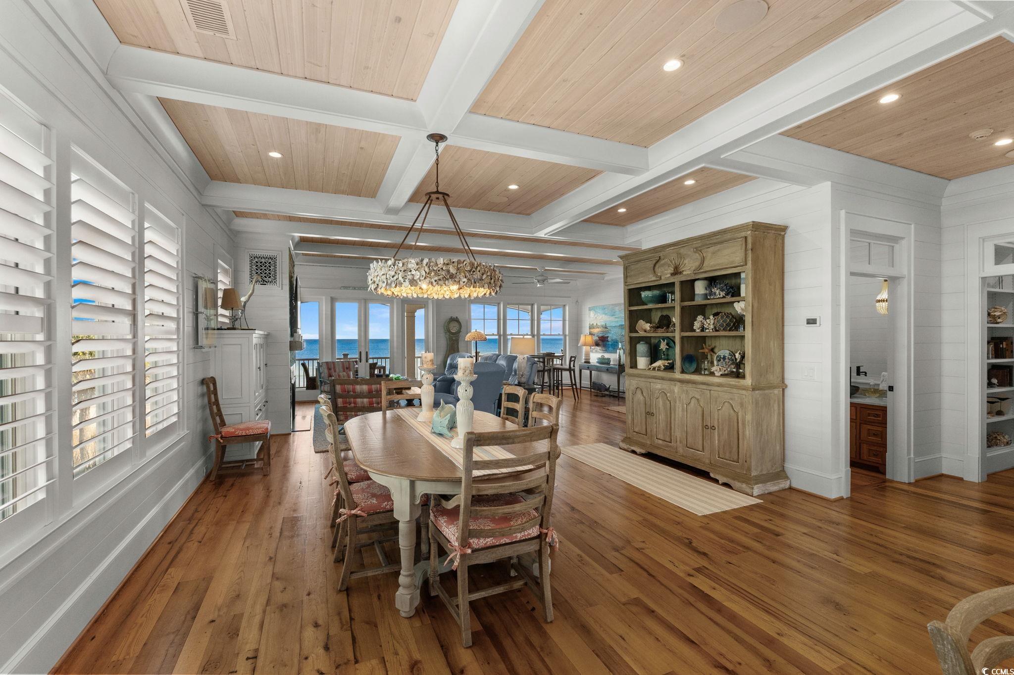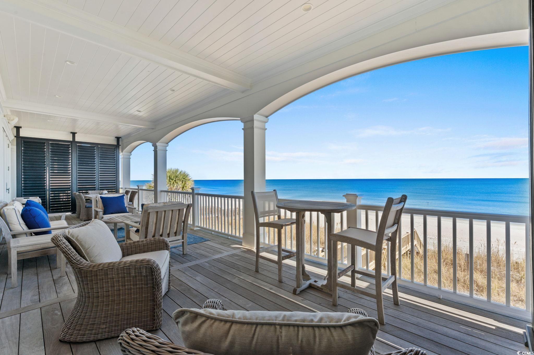 A Spectacular Oceanfront and Creekfront Residence unmatched in Quality and Style with Impeccable Exterior and Interior Finishes. Situated on the Premier Lot 19 The Peninsula"" at Inlet Point South to provide Unobstructed Coastline Views from Huntington Beach to the South End of Pawleys Island. Custom Home Design by Local Renowned Architect David Graham Showcases an easy flow on all 4 Floors of Interior Living Space. Built to maximize power against the elements by Local Master Builder Ted Chapman, the Full Concrete and Steel Frame is partnered with Brick Columns and Brick Skirting providing Durability and a Classic Aesthetic. On the inside All Wood Shiplap Walls, Heart Pine Floors, Shiplap Tray and Vaulted Ceilings with Hand Hewn Wood Beams, 83 Anderson Windows, and 11 Anderson French Door Systems complete this Mastery of Strength and Beauty. Exquisite Visionary Decor by Local Artistic Designer Marnie Heck highlights one of a kind Custom Furnishings, Art, and Accessories by Local Artisans that shall convey. Additional Superior Features include Closed-loop Top of the Line Geo-Thermal Heating and Cooling, 3 Climate-Conditioned Walk-in Attic Storage Rooms, Sonos Sound Throughout, and Hard-Wired Security System. This Beach Home is a True Pawleys Island Gem Not Shabby just Chic!
