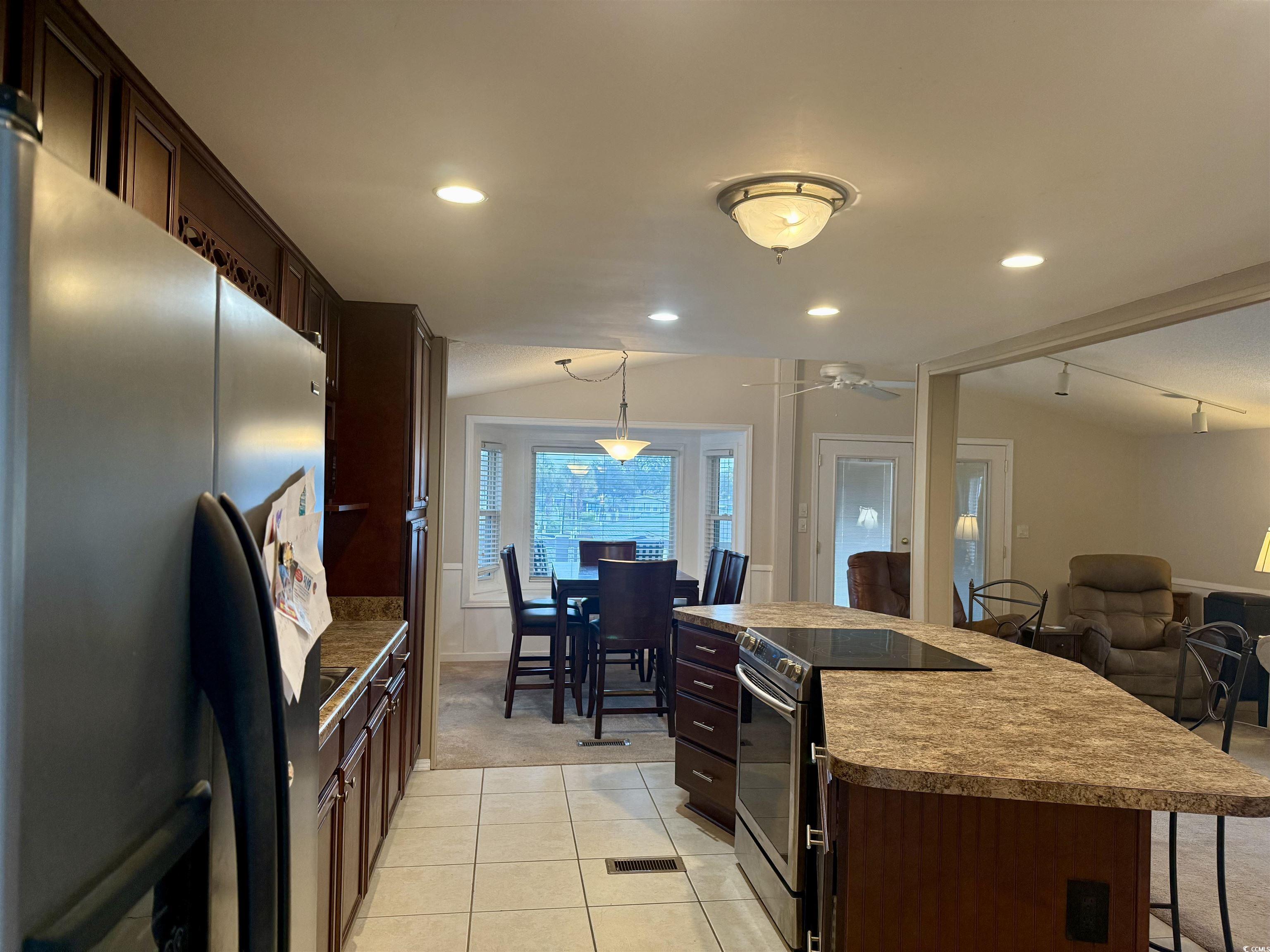 This 2 bed, 2 bath home is located within a gated golf cart community, where you can enjoy the luxury of a peaceful neighborhood while having the convenience of golf cart access to nearby amenities. As you step through the front door, youll be greeted by a spacious open concept that seamlessly blends the living room, dining area, and kitchen making it an ideal setting for gatherings or cozy evenings at home. Step outside and discover your personal haven! The generous outdoor space boasts a covered deck, perfect for alfresco dining, morning coffees, or evening sunsets. The L-shaped deck offers additional room for lounging or barbecuing, providing the perfect backdrop for summer gatherings or peaceful retreats. Imagine waking up in a home that feels like a vacation every day! With the perfect blend of indoor and outdoor living, this property caters to all.