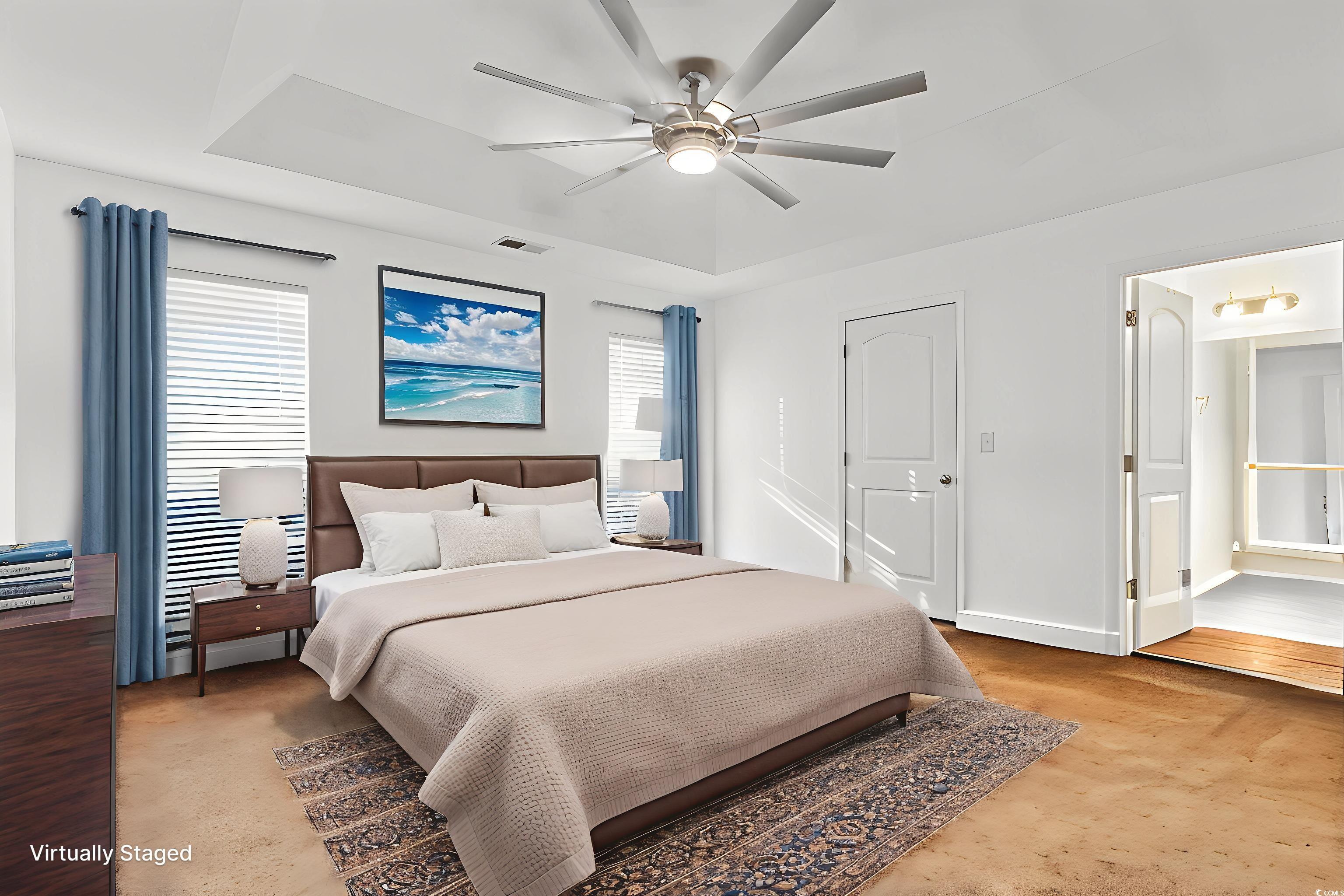 PrimaryBedroom: TrayCeilings, CeilingFans, MainLevelMaster, WalkInClosets
