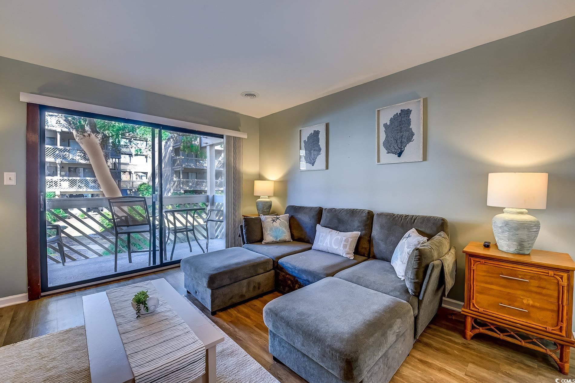 Introducing this great first floor, end unit, 1-bedroom, 1-bath condominium, being offered fully furnished. The only 1st floor end-unit in Shipwatch. Located in Shipwatch Pointe II, this condo is located across the street from the beach and just a short distance from the ocean. Over 600 square feet of space, this condo offers a generous floor plan and great balcony overlooking a well maintained and beautiful courtyard. The balcony is large enough for a table and chairs, creating a perfect space to relax and spend time unwinding. Shipwatch Pointe II condominium units are equipped with central air conditioning and heat. Washers and dryers are located in the units and adds convenience to beach living. On-site amenities include an outdoor pool, indoor pool and a large hot tub, allowing residents to enjoy year round. Shipwatch Pointe II is ideally located in the popular Shore Drive resort destination, within the Arcadian section of Myrtle Beach. This prime location allows residents to indulge in various activities without needing to use their cars. Enjoy grilling, fishing, bicycling, and shopping at the Straw Market. Dance to the live daily music at Ocean Annie's or savor one of the best hamburgers on the beach at River City Cafe. Shipwatch Pointe II is a short drive or golf cart ride to prominent shopping destinations such as Tanger Outlets, Myrtle Beach Mall, Barefoot Landing and Broadway at the Beach as well as the famous Resturant Row. Exciting family entertainment options,including the Carolina Opry, challenging golf courses, and a wide range of restaurants, are all within close proximity. Make an appointment with the listing agent today and seize the opportunity to own this beautiful second home. Please note that all measurements provided are approximate and not guaranteed, and the buyer is responsible for verification.