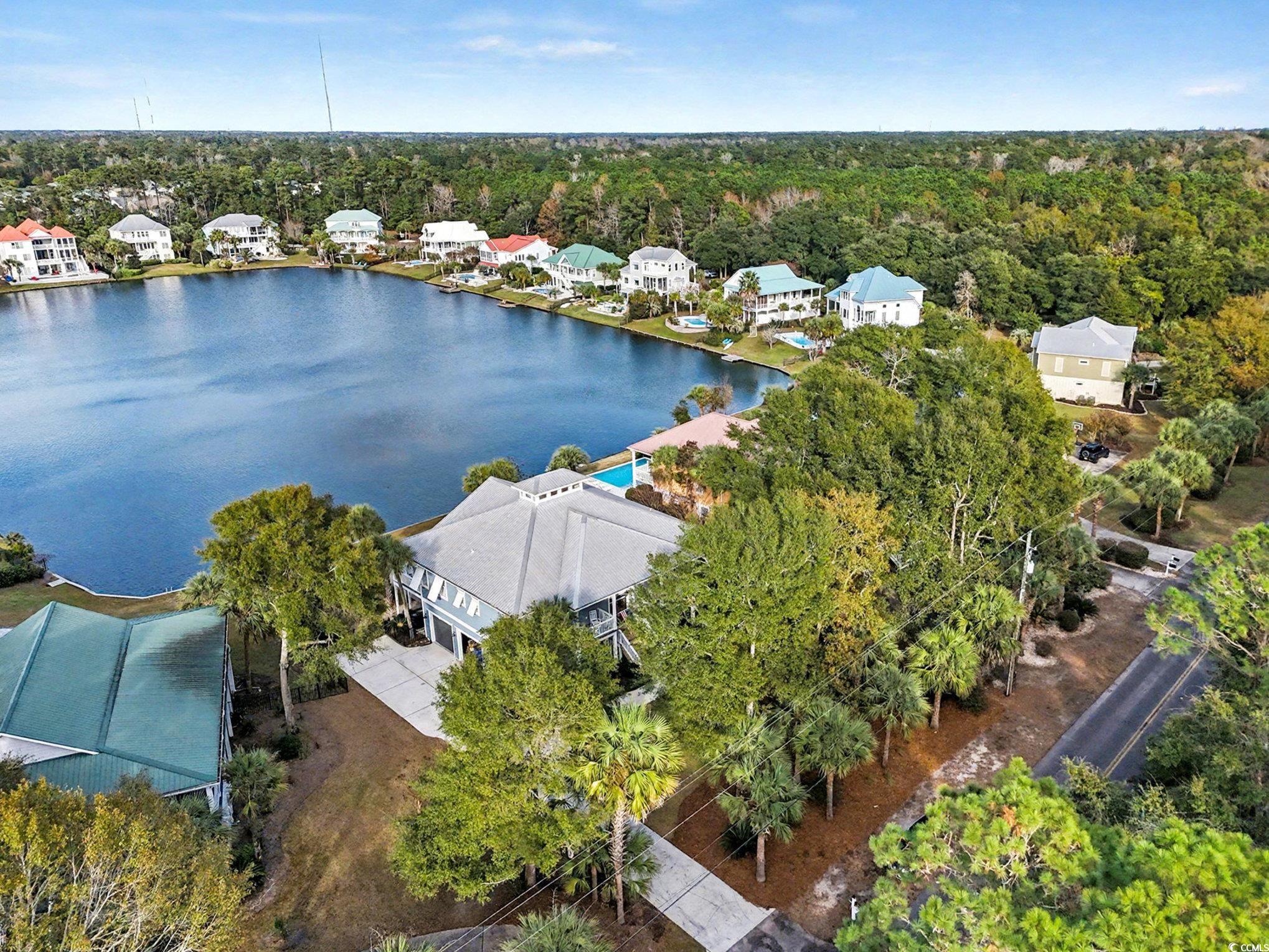 A rare lake-front retreat in Murrells Inlet, this five-bedroom home blends resort-style outdoor living with high-end interiors, a private dock, and easy access to beaches and the Famous MarshWalk. Designed for seamless indoor-outdoor living, the home offers both space and sophistication across two beautifully finished levels. Outdoor living is where this home truly shines. Enjoy a saltwater pool, expansive pool deck, outdoor fireplace, and an outdoor kitchen with grillall overlooking the water. A private dock completes the setting, creating a peaceful backdrop for relaxing or entertaining. The residence features 5 bedrooms and 4.5 bathrooms, with high ceilings, abundant natural light, and thoughtful upgrades throughout. Brazilian cherry hardwood floors and tile flooring anchor the main living areas, while spacious gathering spaces on both floors make the home ideal for both everyday living and entertaining. A dedicated office with custom built-ins provides a perfect work-from-home setup. The main level split floor plan includes a private primary suite plus two additional en-suite bedrooms. The lower level offers two bedrooms connected by a Jack-and-Jill bath, a large seating area, and direct access through sliding glass doors to the pool deck. Additional features include an attached three-car garage, metal roof, plantation shutters throughout, motorized shades in the living room and back office, a custom master closet, updated cabinet hardware, custom cabinet in the rec room, and a custom desk in bedroom two. Notable upgrades also include an oyster shell chandelier, professional landscaping, whole-house water filtration system, whole-house surge protector, 3M window film, new pool decking from Coastal Stone Flooring, updated kitchen backsplash, an outdoor shade near the grill area, a new fence on the right side of the property, sprinkler system and regularly maintained clear-coated porch ceilings. A dock to launch your kayaks and paddleboards. Conveniently located with easy access to local beaches, schools, medical facilities, shopping and dining. This home offers the perfect balance of privacy, comfort, and coastal lifestyle. Don't miss your opportunity to see this home!