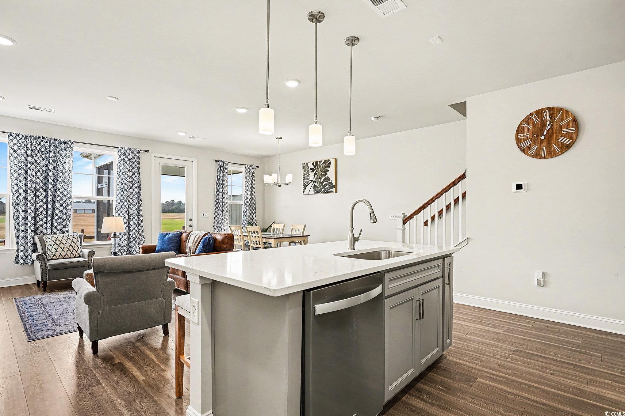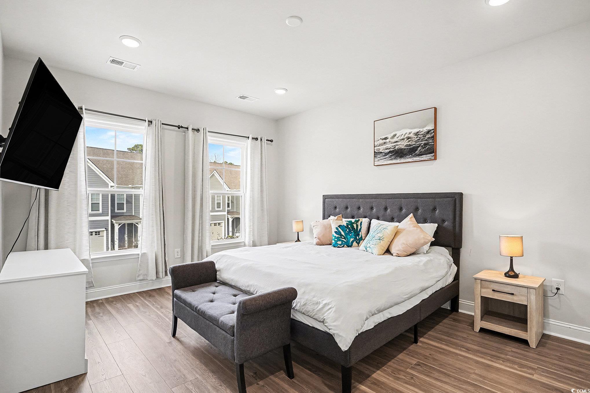 This spacious and fully furnished 3-story townhome offers 4 bedrooms, 3.5 baths, and a one-car garage. Located in The Townes at Barefoot, the home is positioned near Barefoot Resort amenities and across from Putters Pub and the driving range. Outdoor living spaces include a screened porch and a rear patio, ideal for relaxing or outdoor grilling. The first level welcomes you with a foyer, a convenient half bath, and an open kitchen, dining, and great room layout featuring 9-foot ceilings. The kitchen is equipped with upgraded cabinetry, quartz countertops, stainless steel appliances, an undermount sink with chrome faucet, garbage disposal, and LED lighting. Durable laminate flooring flows through the main living areas and second-floor hallway, while ceramic tile accents the laundry area and bathrooms. Upstairs, the second level features the primary suite with a walk-in closet and an en suite bath offering dual sinks and a tiled walk-in shower. Two additional bedrooms, a full bath with a tub/shower combination, and a laundry room complete this floor. The third level provides added flexibility with a private bedroom and full bath, making it ideal for guests, a home office, or additional living space. Barefoot Resort amenities include championship golf courses, clubhouses, a driving range with bar and grill, golf academy, walking trails, private community pools, a marina-side saltwater pool, dining options, a market, & a private beach cabana with seasonal shuttle service. A golf cart is included as well to enjoy the nearby Barefoot Landing, shopping, dining, entertainment, and area attractions This townhome offers easy access to everything the coastal lifestyle has to offer. Don't wait. Schedule your private tour today!
