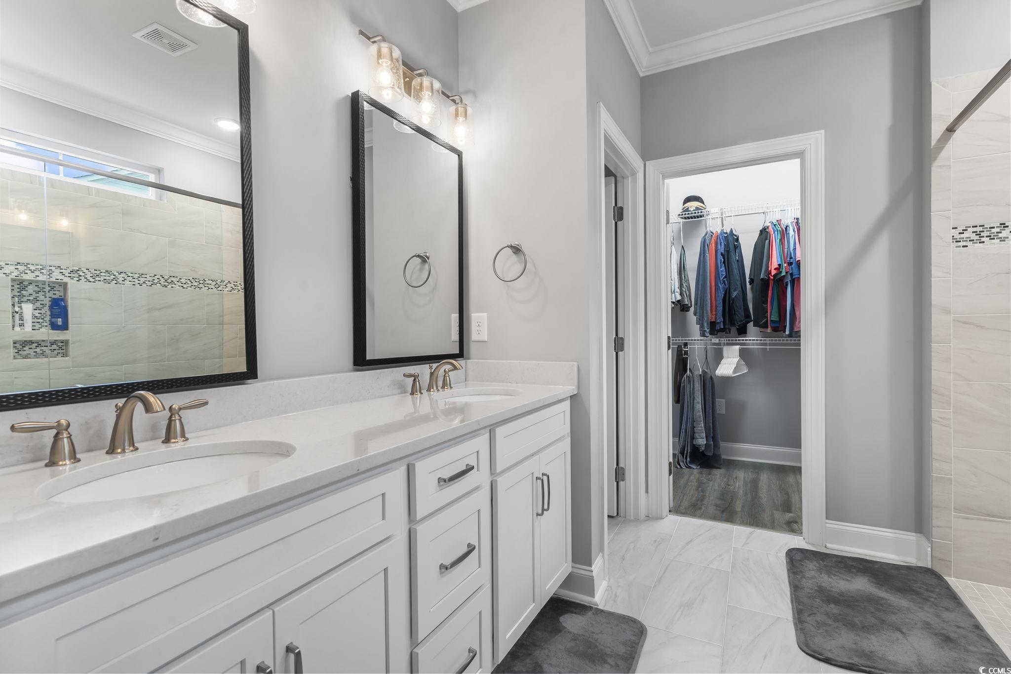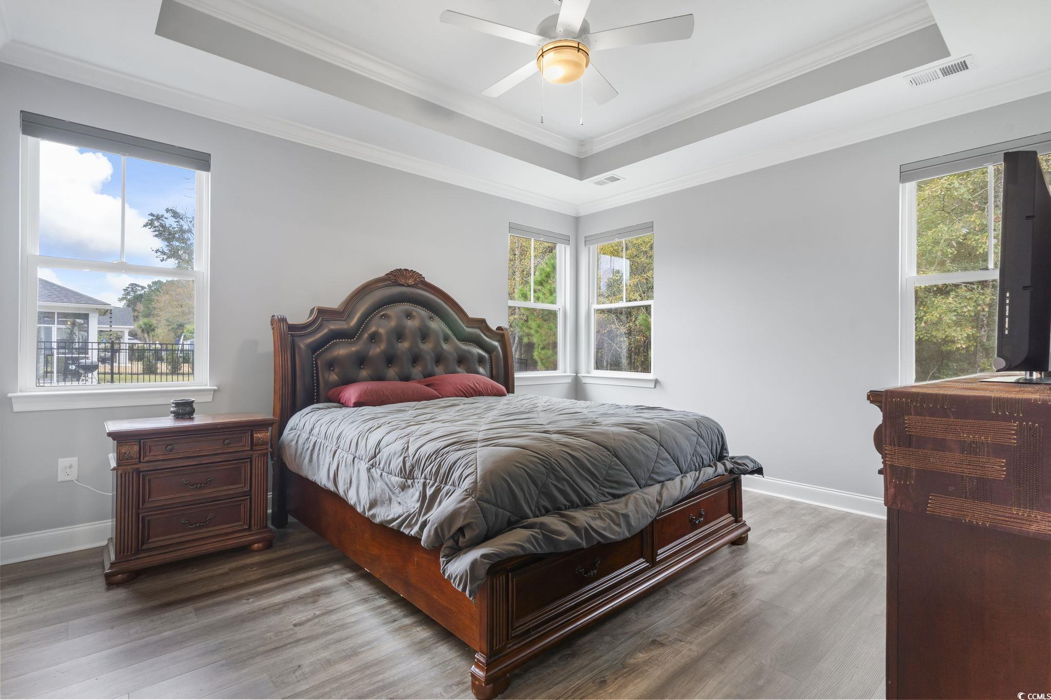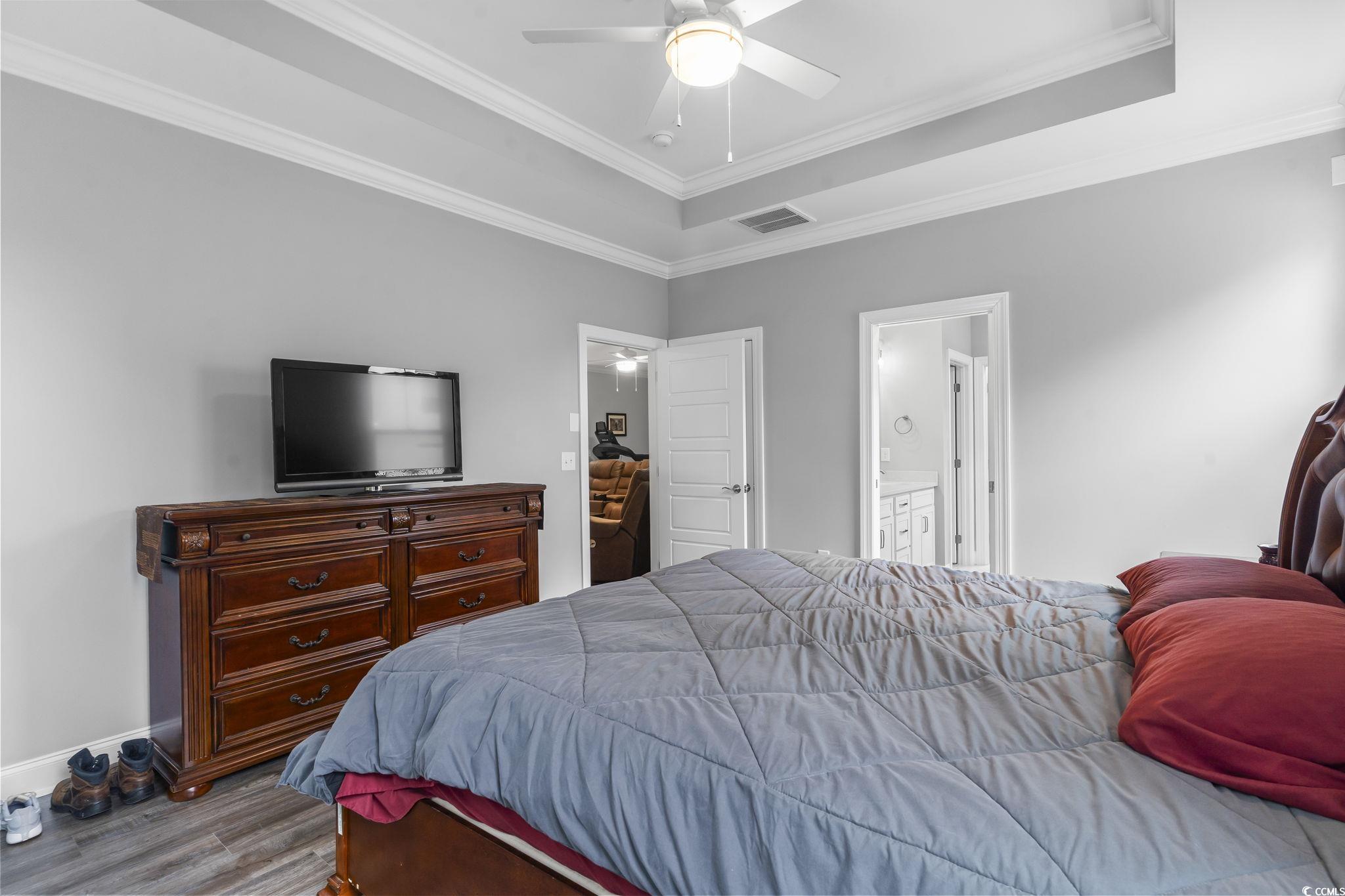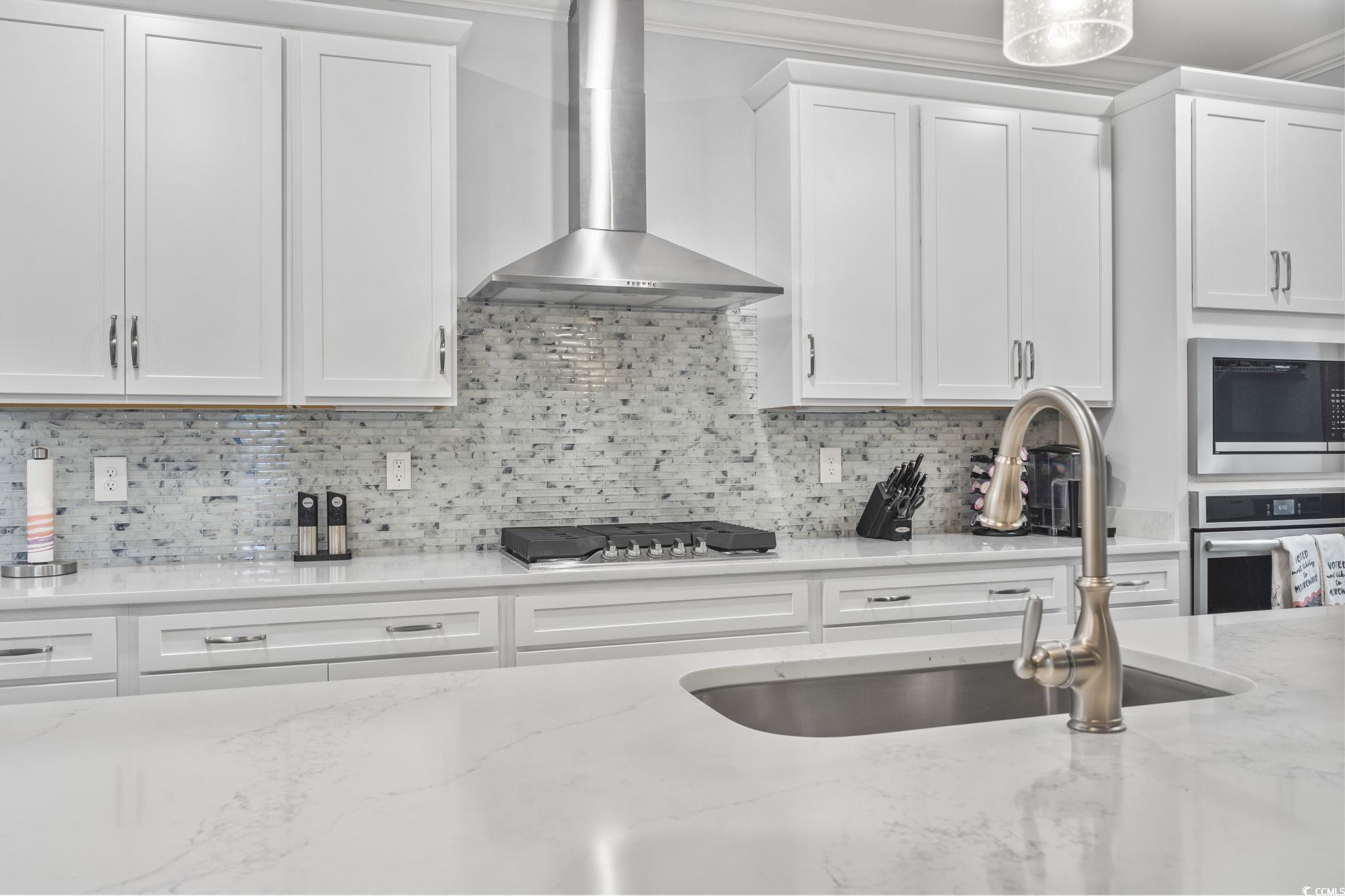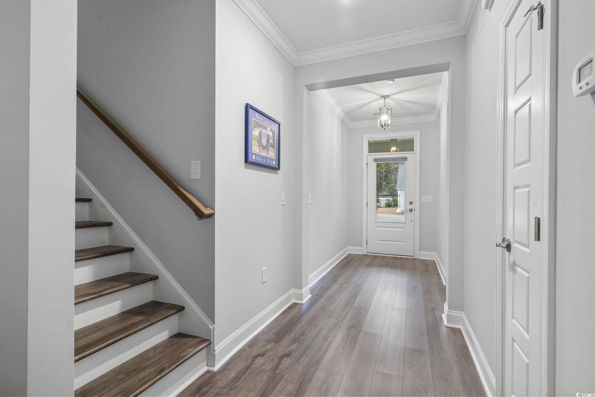 Located in Caroline Court, a boutique community of just 20 homesites, this thoughtfully designed home offers a rare 3-car garage, 4 bedrooms, 3 full baths, and a spacious bonus room, all in a highly desirable and quiet part Murrells Inlet. An extra large driveway and welcoming front porch leads into an open-concept layout designed for comfortable everyday living and easy entertaining. Luxury vinyl plank flooring runs throughout the main living areas, enhancing both durability and style. The large family room flows seamlessly into the kitchen and overlooks the covered rear porch, creating an ideal protected outdoor space. The kitchen is a true centerpiece, featuring quartz countertops, an 8-foot island, generous cabinetry, and ample workspace; perfect for gathering, cooking, and hosting. The open layout keeps the kitchen connected to the main living area while maintaining functionality. The primary suite, located on the main level, provides a private retreat with a well-appointed ensuite bath featuring dual sinks and an enormous tiled shower. Two additional bedrooms and a full bath on the main level offer flexibility for guests, office space, or hobbies. Upstairs, you'll find an additional bedroom, a full bath, and a large bonus room, ideal for a media room, game room, or flexible living space. The attached 3-car garage is a standout feature, offering room for vehicles plus a golf cart, beach chairs, and storage, making it well suited for coastal living. This home is just moments from the public boat landing at Waccamaw Marina, approximately 5 minutes to the Murrells Inlet Marsh Walk, and a few minutes to Huntington Beach State Park or Garden City Beach. Myrtle Beach and Pawleys Island are each about 20 minutes away, while Charleston is approximately 75 miles south. Schedule your private tour today. Measurements are approximate and to be verified by buyer.
