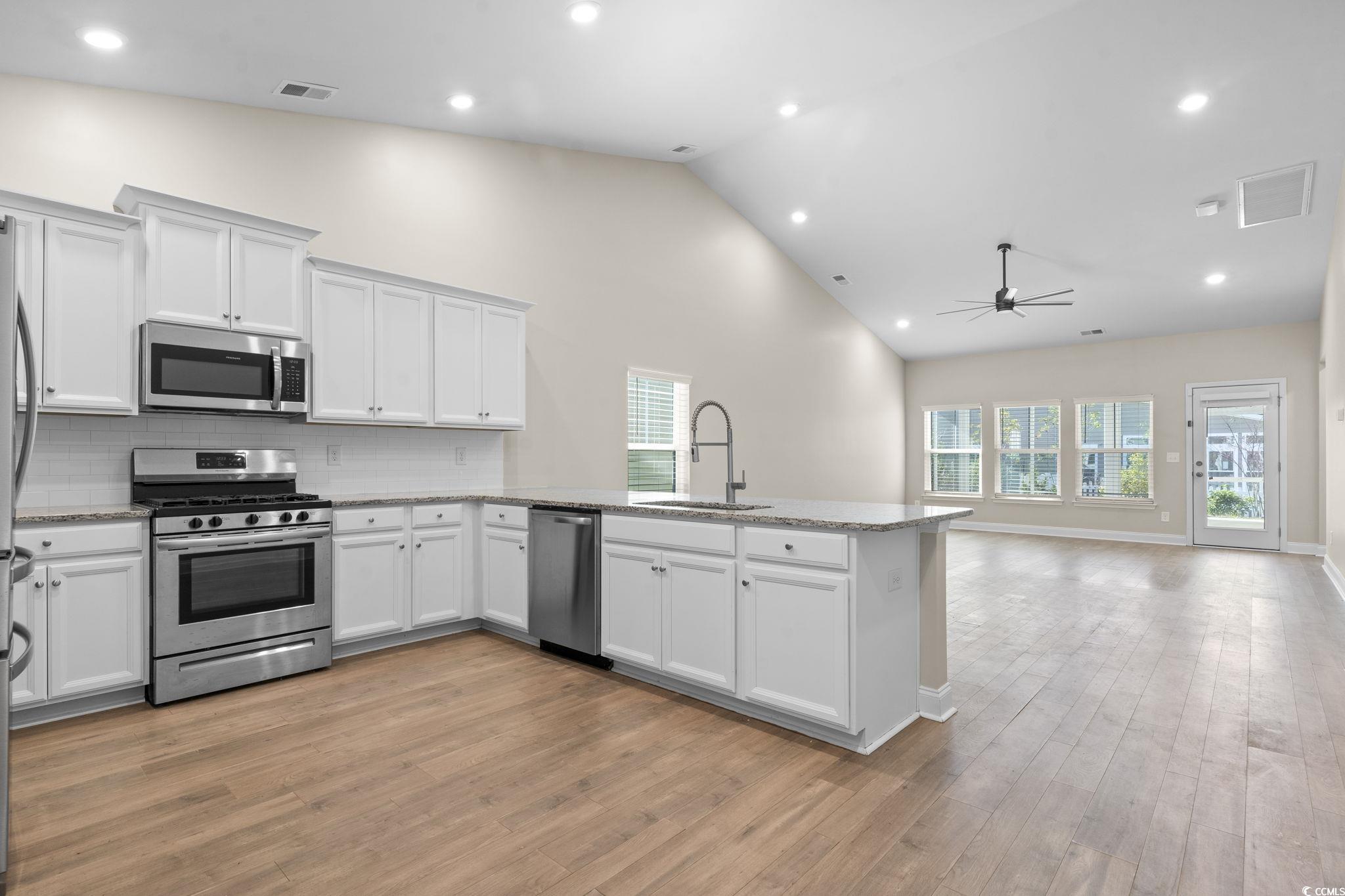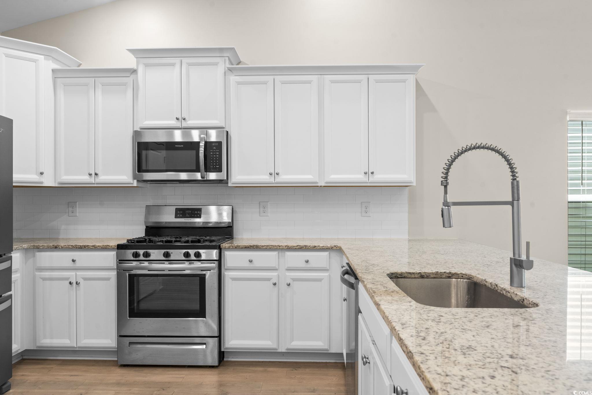 Welcome Home to this single-level, 2019 build with standout outdoor living. Enjoy a rear screened porch overlooking a custom stone patio featuring integrated accent lightingperfect for morning coffee or evenings outside. Low HOA with two community pools, common areas, and a community garden. Minutes to schools, shopping, dining, and the beach, with easy access to 501/544/31. Inside, this 3BR/2BA, 1,804 sq ft home lives bright and open. The spacious family room flows to the dining area and modern kitchen with granite countertops, stainless appliances, 42"" maple cabinetry, and a breakfast bar for casual meals. Everyday efficiency comes from natural gas service and a tankless water heater. The private primary suite features a large walk-in closet and an ensuite with a walk-in shower. Two additional bedrooms and a full bath offer flexibility for guests, family, or a home office. Well maintained and move-in readycome see everything this Forestbrook Estates home has to offer. Some photos have been virtually enhanced.