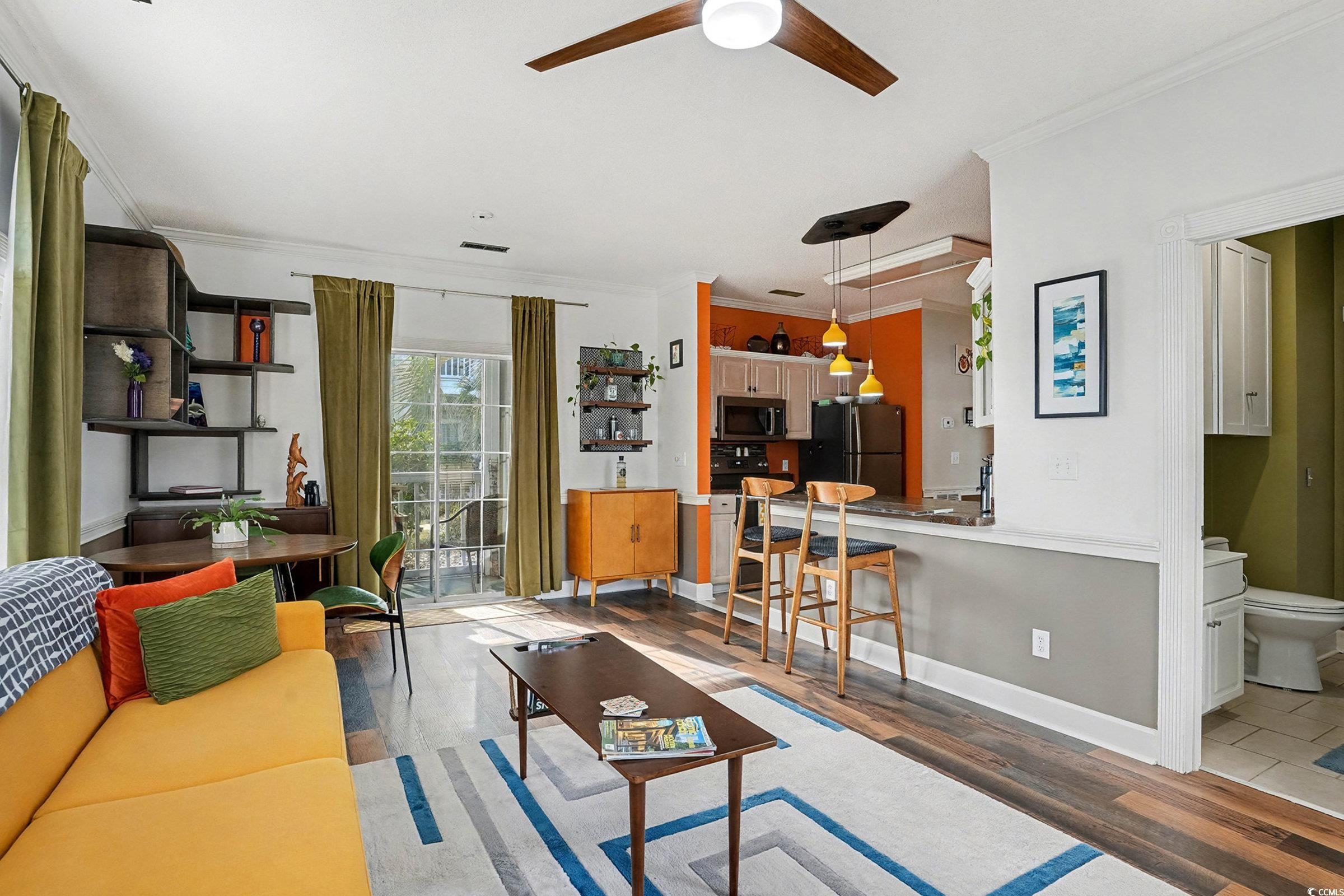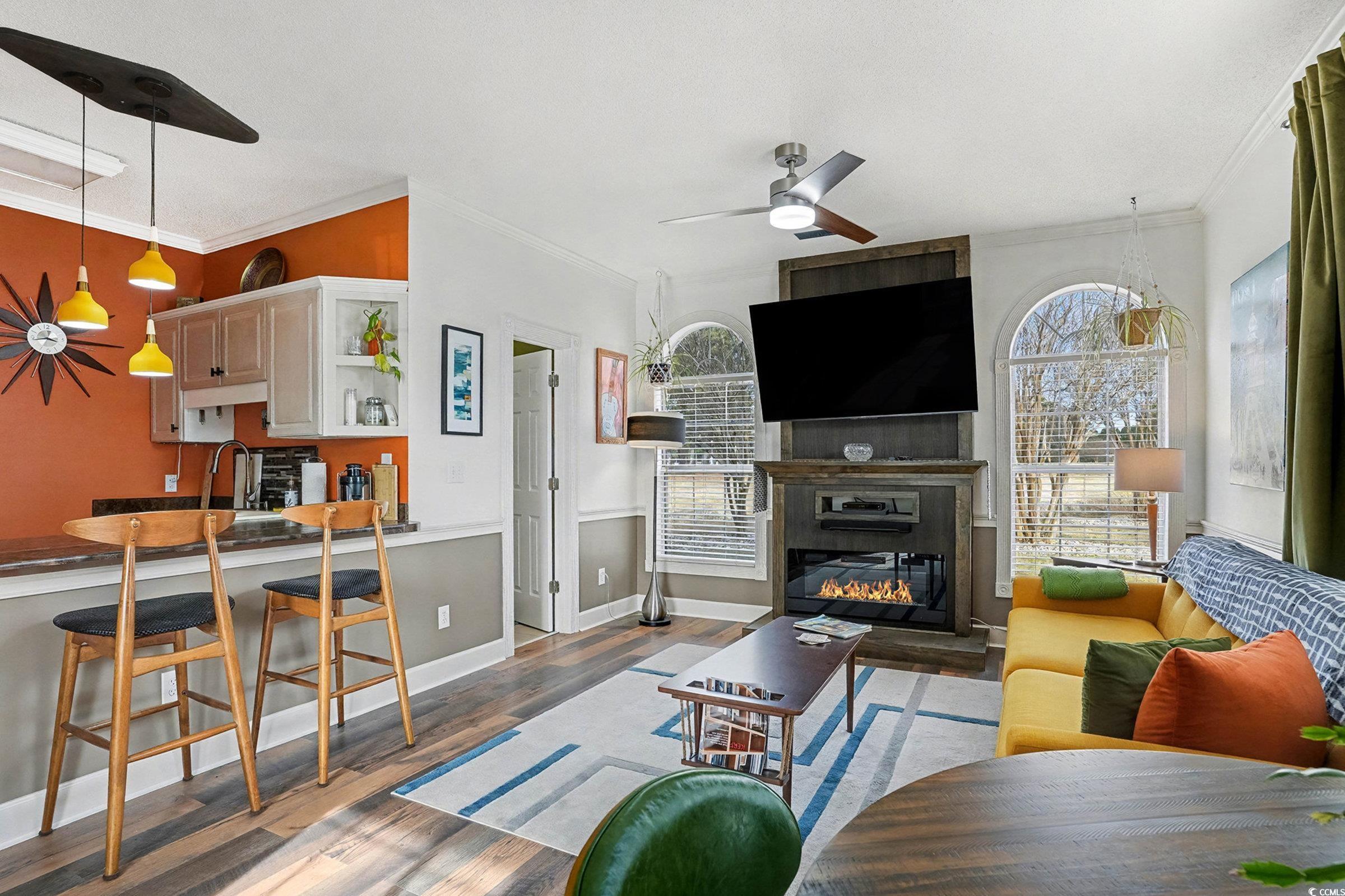 Rental-ready, ground-floor, and perfectly positioned with both water and golf course views this end-unit in the highly desirable Magnolia Place community offers the ideal opportunity for investors, second-home buyers, or anyone looking for low-maintenance living just minutes from the beach. With strong rental appeal thanks to its first-floor convenience, scenic setting, and prime Myrtle Beach location, this unit checks every box for income potential and personal enjoyment. Located in the established Magnolia Place community within the sought-after Myrtlewood Golf neighborhood along the Intracoastal Waterway, this stylish end unit features an open layout designed for comfort and functionality. Inside, youll find luxury vinyl plank flooring in the living area and bedroom, custom shelving, an electric fireplace, and updated stainless steel appliances, along with a new washer and dryer already in place making it truly move-in or rental ready. The end-unit location provides added privacy and natural light, features that make this property especially attractive to vacation renters and guests. Magnolia Place is known for its beautifully maintained grounds and welcoming coastal atmosphere, with outdoor pools, grilling areas, ponds, walking paths, and scenic golf course surroundings throughout the community. Ideally located just minutes from the ocean and close to top Myrtle Beach attractions including Broadway at the Beach, shopping, dining, golf, and entertainment, this property offers the flexibility investors are looking for perfect as a short-term rental, long-term rental, vacation getaway, or full-time residence. Low maintenance, strong rental potential, and one of the best locations in Myrtle Beach make this first-floor end unit a standout opportunity in todays market. Furnishings are negotiable.