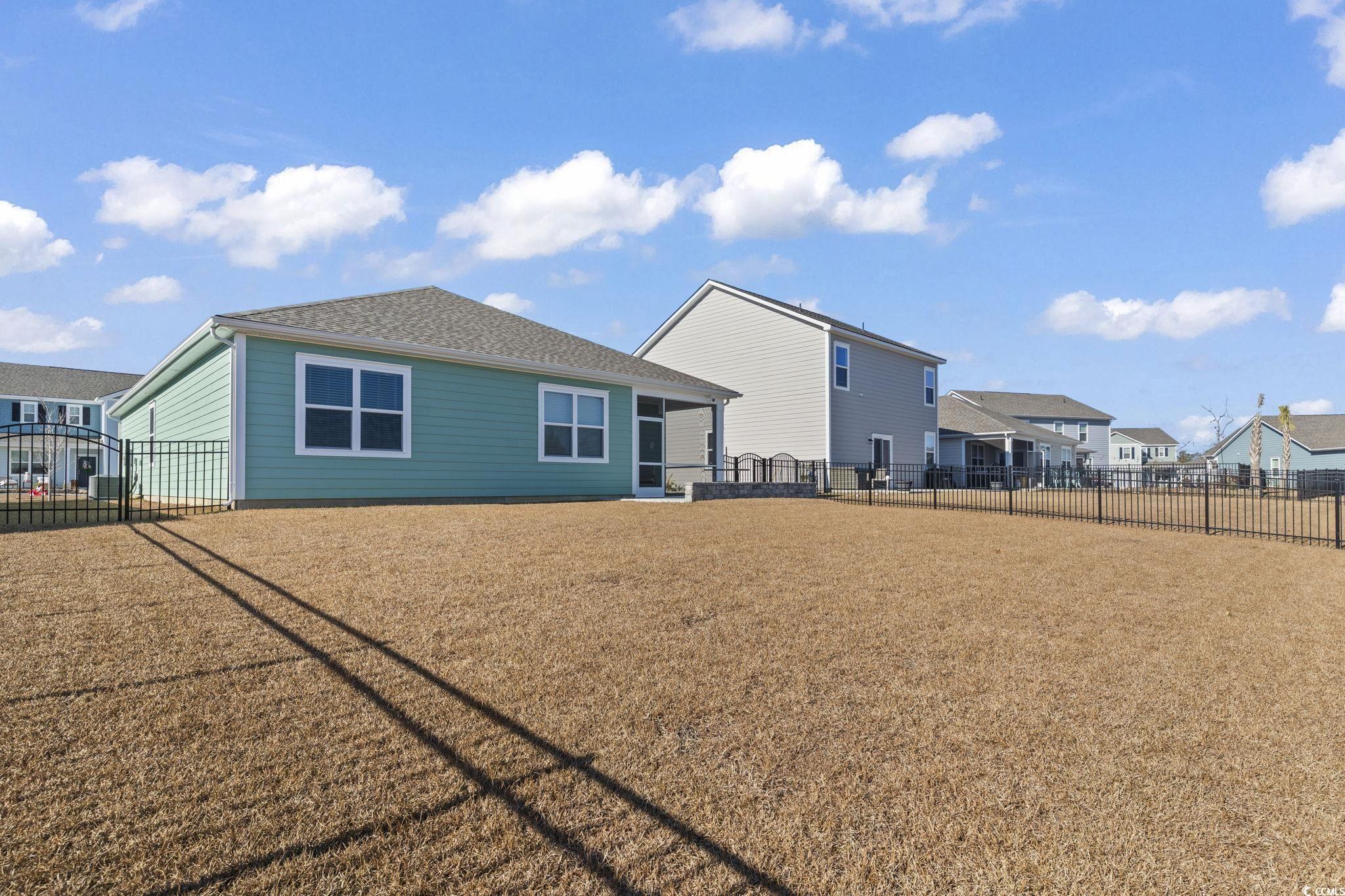 Welcome to Kingston Bay, minutes from the heart of the beautiful downtown Conway! Stop in to tour this beautifully designed home with a great open concept kitchen, living, and dining area. Features include granite countertops, a pantry, stainless appliances, and a large island with breakfast bar. The private owner's suite situated at the back of home, offers a large walk-in closet, dual vanity, and a 5' shower. Access to the rear covered and screened porch just off the dining area creates wonderful outdoor living space. Enjoy the extended concrete pad and fenced in yard with a pond view! With this smart home, you can control the thermostat, front door light and lock, and video doorbell from your smartphone or with voice commands to Alexa. Square footages are approximate.