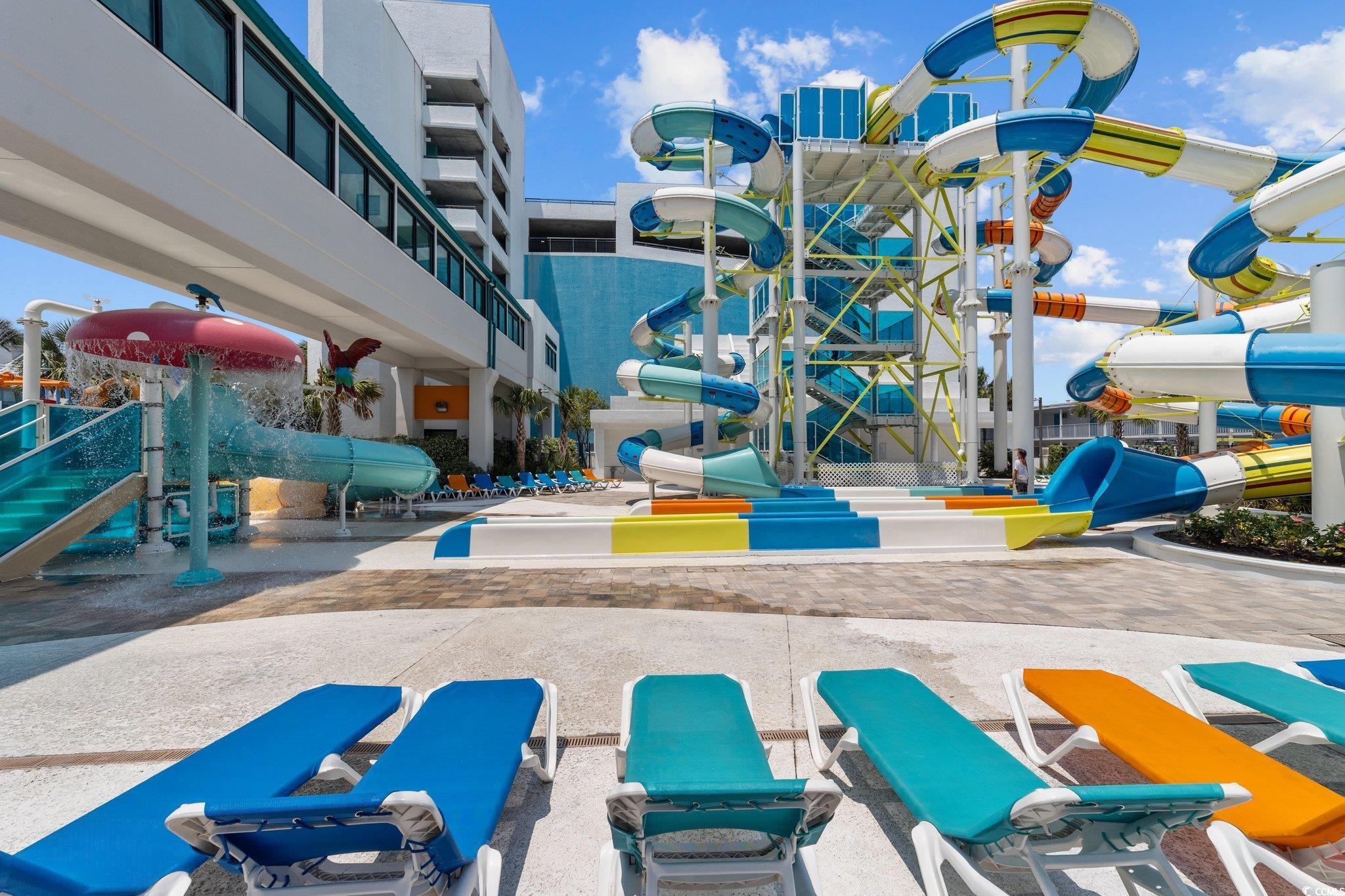 Experience the perfect beach getaway with this beautiful 1-bedroom, 1-bathroom condo located on the 12th floor of the popular Landmark Resort. This unit offers breathtaking ocean views from your two private balconies the ideal spots to enjoy sunrise coffee or evening relaxation. There is convenient murphy bed providing space for an additional guest. Step inside to find a well-appointed living space with everything you need for a comfortable stay or a fantastic rental property. The Landmark Resort offers a wide array of amenities including a lazy river, water park, indoor and outdoor pools, hot tubs, on-site dining, pool bar, an arcade, a fitness center, and direct beach access. Whether you're looking for a vacation home, investment property, or a slice of paradise to call your own, this Landmark Resort condo delivers resort-style living at its best. Dont miss out on this incredible opportunity to own a piece of the coast with unbeatable views and top-tier amenities!