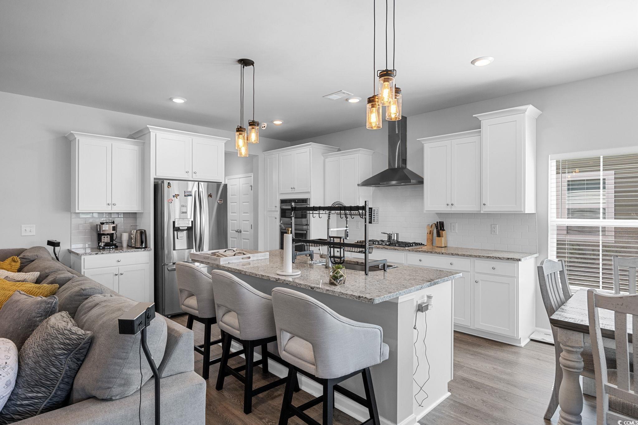 Experience refined single-level living in this beautifully upgraded home located in the desirable The Isles at Bella Vita community of Myrtle Beach, offering peaceful pond views and an oversized screened-in back porch ideal for everyday relaxation or entertaining. Built with the popular Collins floor plan, this thoughtfully designed home features 3 bedrooms, 2 bathrooms, and a dedicated home office, all within a bright open-concept layout. The spacious owners suite includes a walk-in closet and a well-appointed bathroom with tile flooring, dual vanities, elevated cabinetry, and a fully tiled 5 zero-entry walk-in shower with seamless glass enclosure. The upgraded kitchen package is a true highlight, featuring white cabinetry, granite countertops, a 36 subway tile backsplash, built-in wall oven and microwave combo, gas cooktop, upgraded exhaust hood, and stainless-steel appliances. Shaw laminate flooring flows throughout the main living areas, and the living room is accented by a gas fireplace, adding both comfort and character. This energy-efficient home features no carpet throughout, enhancing durability and ease of maintenance. Additional upgrades include LED recessed lighting, Moen fixtures, elongated toilets with soft-close lids, modern window treatments, and a Rinnai tankless water heater, delivering modern comfort and efficiency. Large windows provide abundant natural light, creating a bright and welcoming atmosphere. Located in the Carolina Forest school district, this home offers convenient access to shopping, dining, healthcare, Market Common, Myrtle Beach International Airport, and the beach. The natural gas community includes a community swimming pool, with HOA services covering trash pickup and common-area maintenance, supporting a low-maintenance lifestyle. Offering a rare combination of quality construction, energy efficiency, upgraded finishes, and a prime location, 4108 Da Vinci Dr presents an excellent opportunity for comfortable coastal living in Myrtle Beach. Schedule your private showing today and see firsthand what this exceptional home has to offer. ***Property under surveillance ***