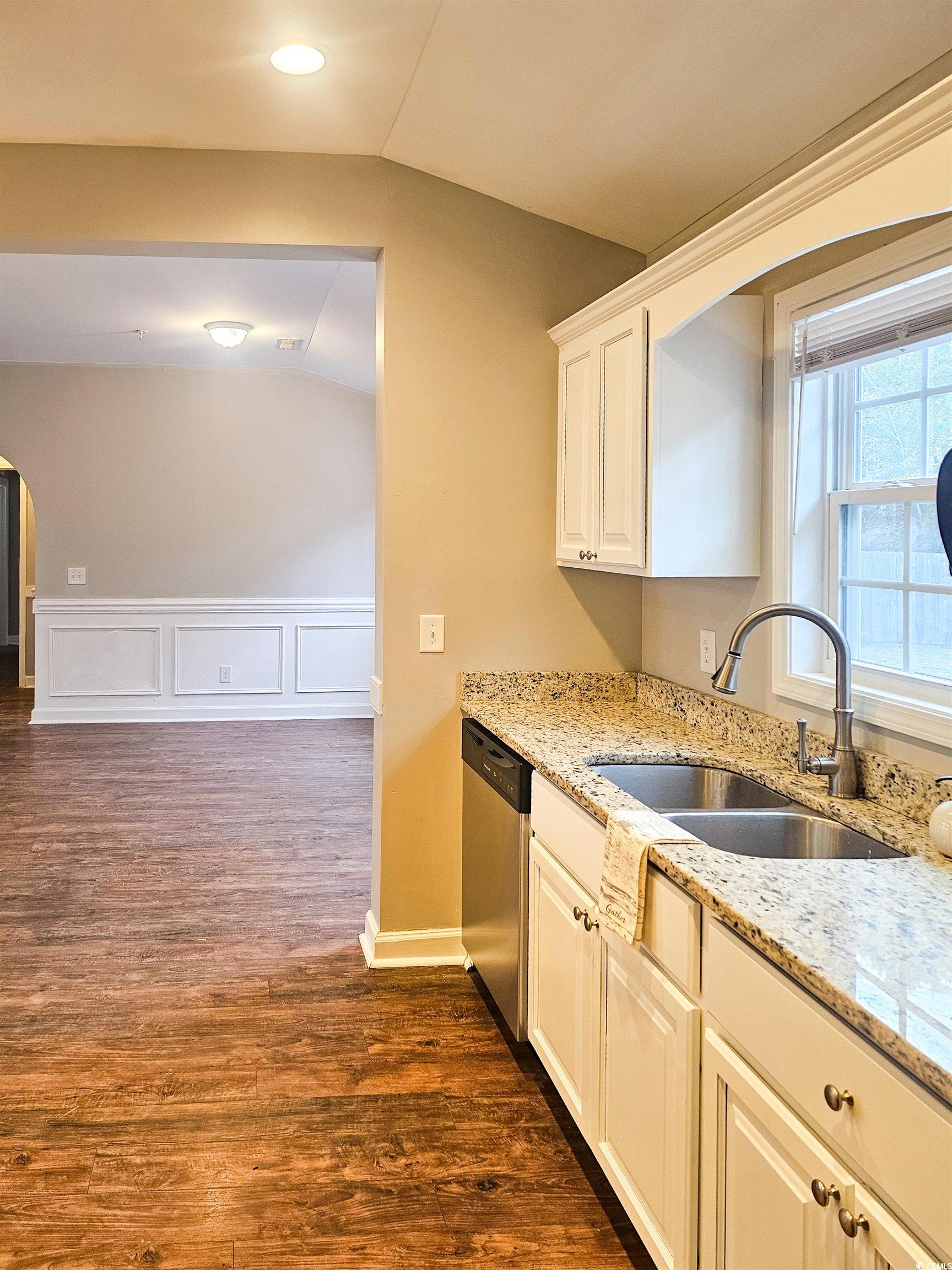 Welcome to this charming home located in the Summerville subdivision, offering a large lot with a fenced-in back yard for privacy and security. Enjoy relaxing on the front porch or entertaining on the patio in the backyard. Inside, you'll find a split bedroom plan with new stainless steel appliances in the kitchen, along with a pantry and spacious separate laundry room. Each bedroom features walk-in closets, while the master bathroom boasts a double vanity. The living and dining rooms showcase beautiful wainscoting and molding, with plenty of natural light throughout. The kitchen features white cabinetry, granite counter tops, a breakfast bar, and an abundance of cabinets and counter space, as well as a deep double sink and recessed downlights. This home is perfect for those looking for a no HOA community and is eligible for USDA financing. Located near Trinity Collegiate School, this home is just a quick 20-minute drive to Florence and a little over an hour to the SC capital, Columbia. With close proximity to I-20 and I-95, this home offers convenience and comfort for its new owners.
