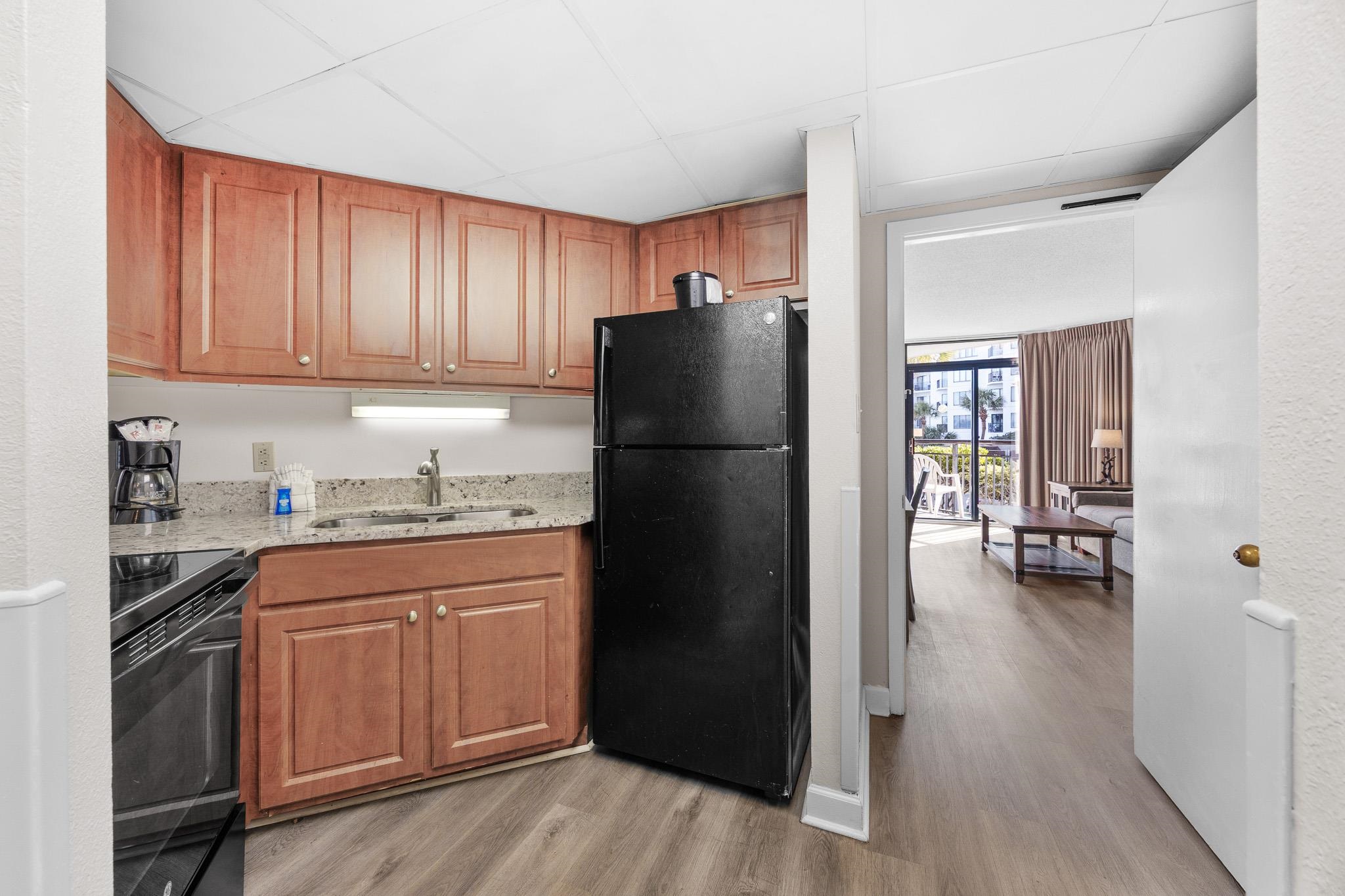Welcome to this beautifully updated one-bedroom, one-bathroom condo located in the highly desirable Landmark Resortan ideal choice for vacationers and short-term rental success. Thoughtfully designed and well maintained, this spacious condo features elegant furnishings, new flooring, and a fully equipped kitchen with granite countertops, perfect for extended stays. The modern bathroom includes a newer vanity with granite counters, adding a touch of upscale comfort. The living area is designed with flexibility in mind, offering comfortable seating, a Murphy bed, and a sleeper sofaideal for accommodating larger families or groups. The bedroom features two queen beds and a spacious closet, ensuring guests enjoy both comfort and convenience. This desirable double-bay, angled ocean-view unit boasts two private balconiesone off the living room and one off the bedroomallowing guests to enjoy privacy while taking in breathtaking views of the Atlantic Ocean. Located on the lobby level, this condo offers exceptional ease of access with no elevator waits, a feature guests truly appreciate. Landmark Resort is packed with guest-favorite amenities, including indoor and outdoor pools, lazy rivers, an on-site waterpark, Starbucks coffee bar, multiple restaurants, poolside bar, fitness center, laundry facilities, banquet rooms, and a covered parking garage with an enclosed crosswalk. Centrally located in the heart of Myrtle Beach, the resort is just minutes from the airport, Market Common, Broadway at the Beach, golf courses, shopping, dining, and entertainment. Whether youre looking for a turnkey vacation rental, a second home, or a personal getaway, this condo offers outstanding rental potential and an unforgettable guest experience. Schedule your private showing today!