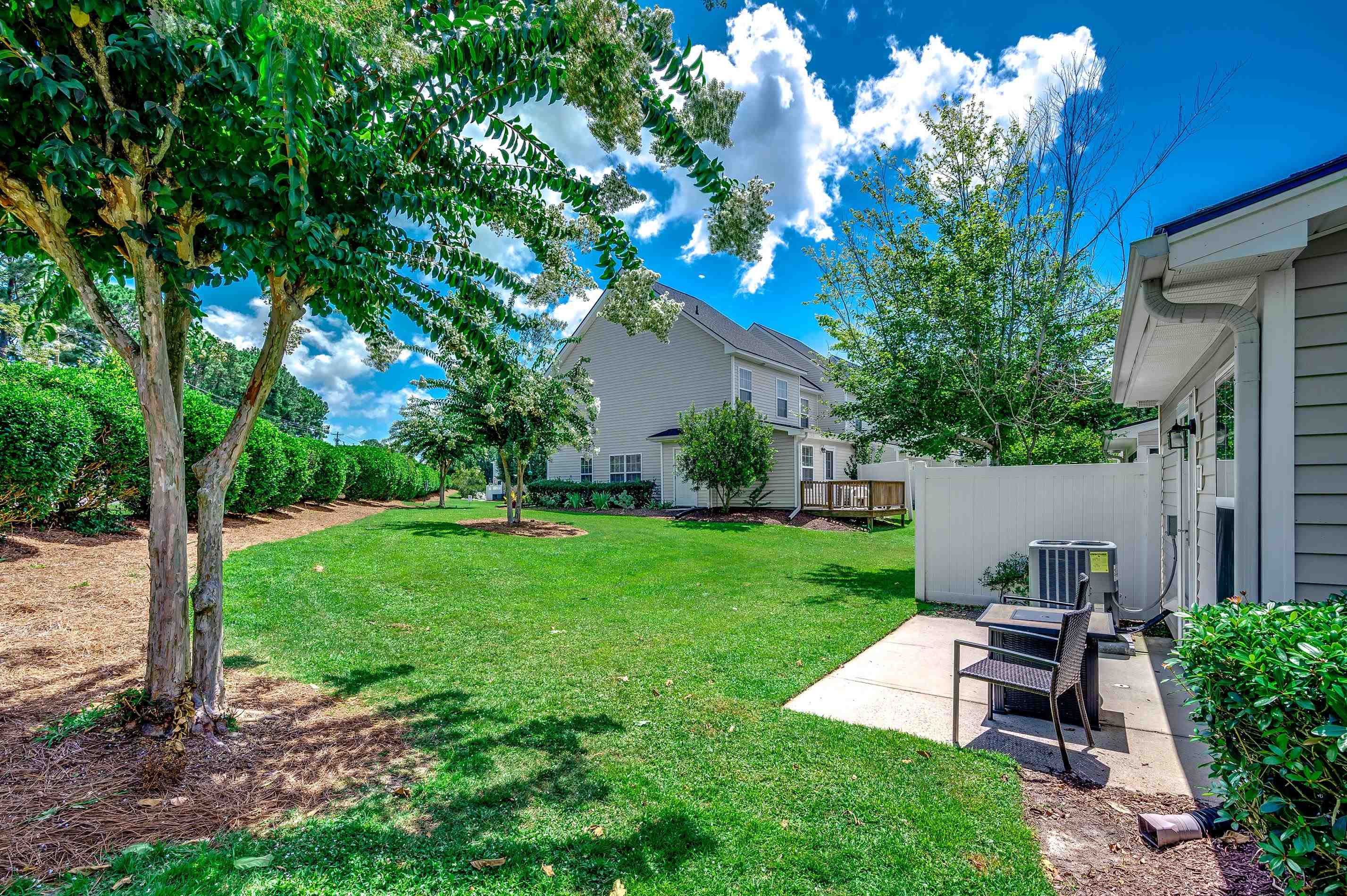 End-unit townhomes with this much outdoor space are hard to find. Located in the well-kept Merritt Park community in Little River, this bright end-unit offers extra windows, great natural light, and a rare side and rear grassy area that gives it a more single-family feel something most townhomes simply dont have. Inside youll find an open, comfortable floor plan with thoughtful updates throughout. The kitchen features pull-out cabinet shelving, pantry, new faucet and dishwasher, along with a new kitchen door and storm doors. Freshly cleaned carpets make the home move-in ready. The primary suite is located on the main level and includes an ensuite bath. Upstairs are two additional bedrooms and a full bath with dual sinks perfect for guests, home office space, or flexibility to fit your lifestyle. Big-ticket items are already done, including a new roof and heat pump (2023), newer water heater, heavy-duty attic pull-down stairs with added storage, built-in desk space, and Whirlpool washer & dryer. Enjoy a private patio and unusually large yard area for a townhome ideal for pets, gardening, or simply having room to breathe. All just minutes from the beach, Main Street North Myrtle Beach, shopping, dining, the Aquatic & Fitness Center, NMB Sports Complex, and a neighborhood community pool. If youve been looking for a townhome with light, space, and outdoor room, this one stands out.