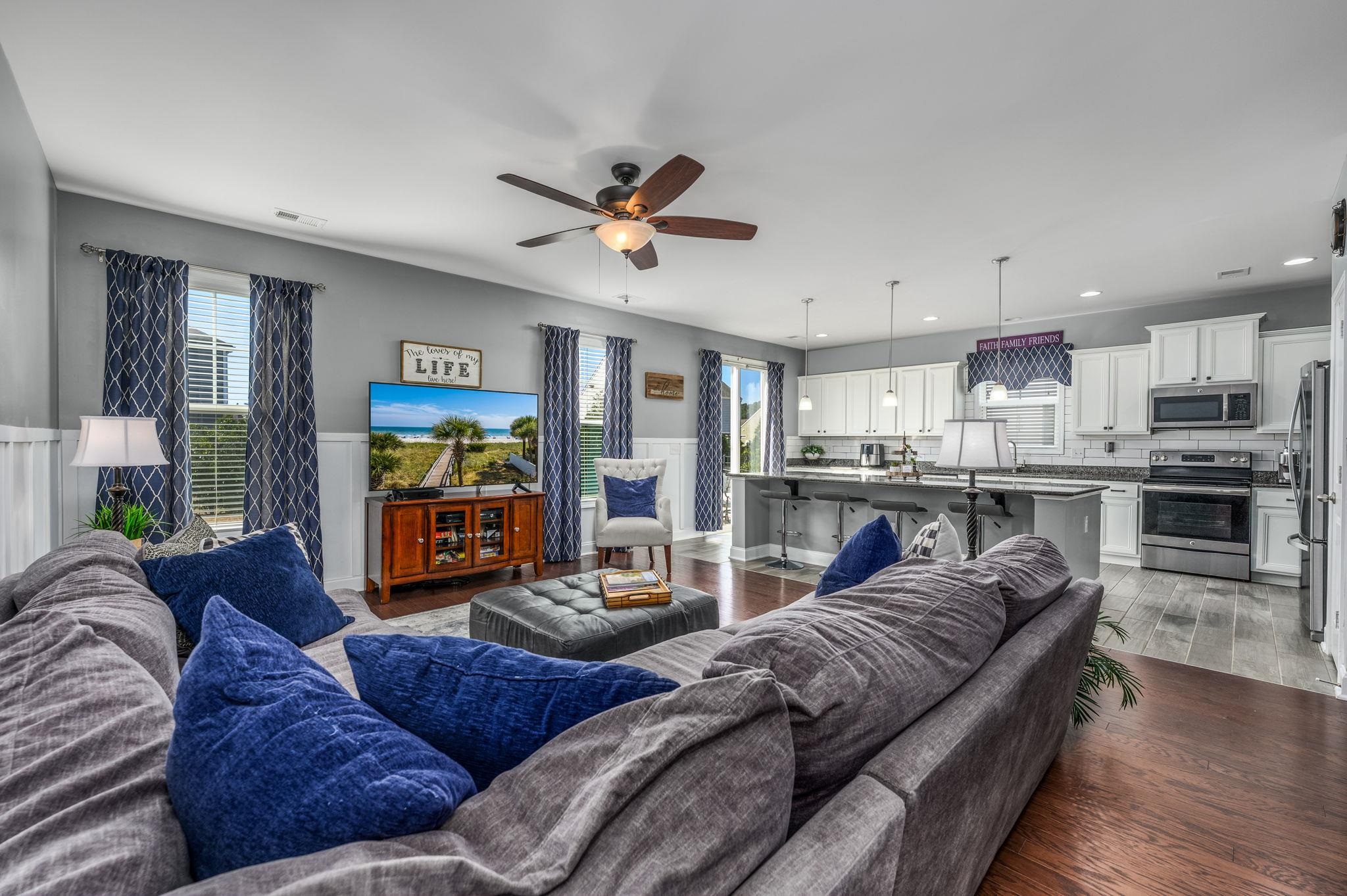 Welcome to The Farm at Carolina Forest, where youll find this beautifully maintained home with exceptional upgrades and curb appeal. Featuring the popular Forrester floor plan, this home offers 5 bedrooms, or 4 bedrooms plus a large bonus room with a closet, along with a two-car garage. Built in 2016, the home is in excellent condition with many thoughtful improvements made by the sellers. Backyard upgrades include a fully installed fence, mature trees added for privacy, a fire pit, and a rock seating areaperfect for outdoor entertaining. Inside, the kitchen has been refreshed with painted cabinets and a stylish backsplash. The dining room/living area features added bar cabinetry, open shelving, a fireplace, custom molding, and wainscoting, creating a warm and inviting space. Additional enhancements include storage added above the garage, cabinets in the garage, ceiling fans, a pull-down screen, attic flooring for extra storage, and organized shelving in the laundry room. This home truly shines with its exceptional curb appeal, featuring beautiful landscaping, a welcoming front porch, and a striking paint color accented by black shutters. Even better, the home is located directly across from a community area that will never be built on, offering extra privacy and peaceful views. Inside, youll be greeted by a lovely foyer with hardwood floors and soaring ceilings open to the second floor. The first room to the right is a formal dining room that the current owner has transformed into a cozy sitting room with cabinetry, open shelving, and a fireplaceyet it can easily function as a dining space if desired. The open floor plan seamlessly connects the kitchen and living area, all overlooking the spacious backyard. The kitchen features a large island ideal for entertaining, white cabinets, granite countertops, stainless steel appliances, a pantry, a window over the sink, and abundant cabinet and counter space. A first-floor bedroom and full bath add convenience and flexibility. Upstairs, youll find the primary suite, complete with a tray ceiling, ceiling fan, and a generous bathroom featuring double sinks, a garden tub, walk-in shower, water closet, and a large walk-in closet. Two additional bedrooms, a full bath, and a spacious bonus room with a closet complete the second floor. The bonus room is currently used as a multi-purpose space with a workout area, sitting area, and home officethe possibilities are endless! Residents of The Farm enjoy resort-style amenities, including an 8,000-sq-ft pool, clubhouse, fitness center, playground, and basketball courts. Located in the award-winning Carolina Forest School District, the community offers easy access to Highway 31, Highway 90, and International Drive, and is just 10 minutes from the Atlantic Ocean and area beaches. This home truly has it allspace, comfort, privacy, amenities, and an unbeatable location. Dont miss your opportunity to make this incredible property your own!