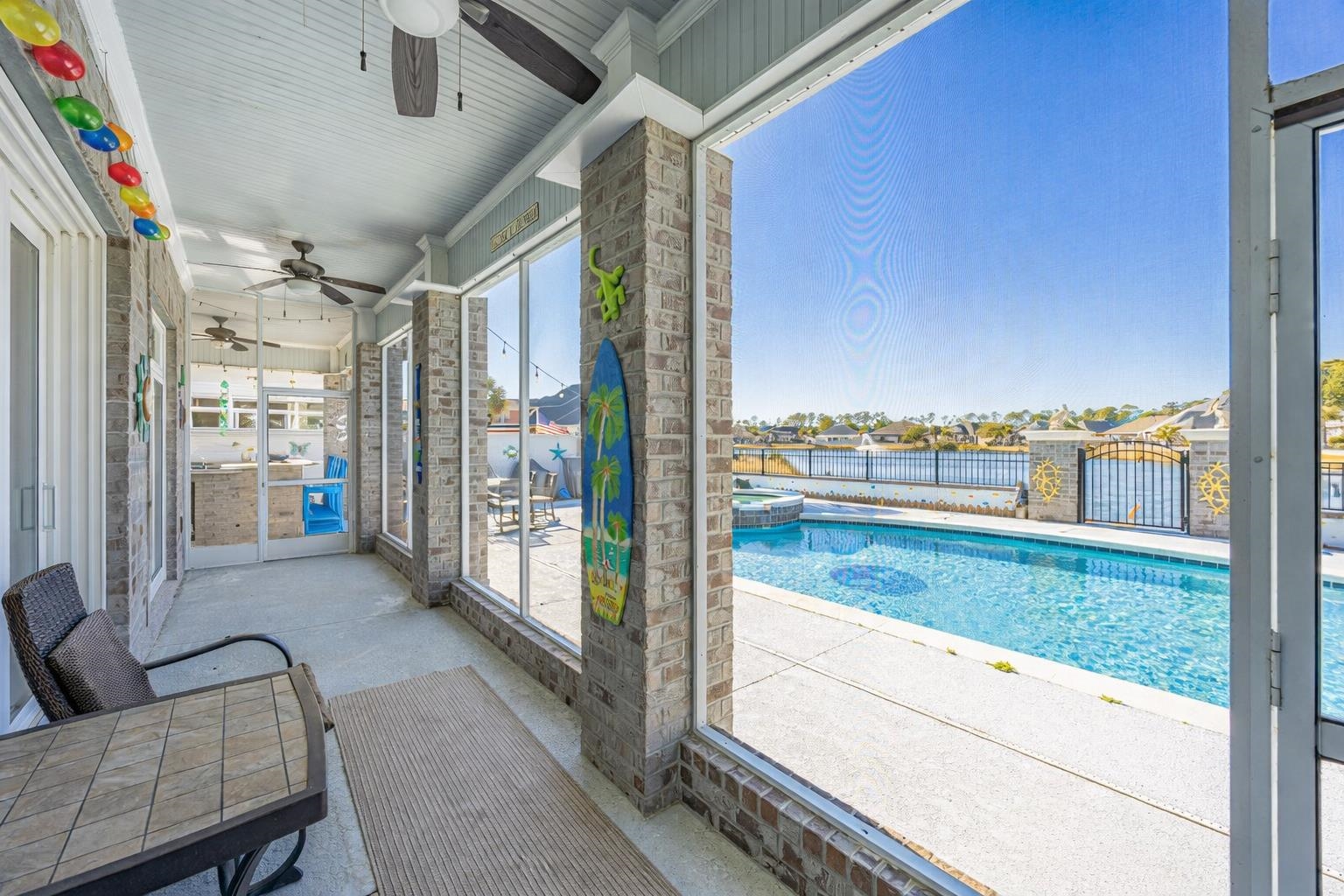 Welcome to 232 Waterfall Circle, A TRULY RARE property in the Prestigious Community of Waterfall thoughtfully appointed with a pool and hottub, outdoor Kitchen, putting green , firepit conversation area , and a large screened porch all designed to enjoy the Amazing views of the community pond and positioned to enjoy both fountains, this beautiful home truly has it all and is designed for comfort, functionality, and unforgettable outdoor living. Step inside to a spacious living room that flows seamlessly into the open-concept kitchen, creating the perfect space for everyday living and entertaining alike. The primary suite is a private retreat, featuring an elegant tray ceiling, a cozy lounge area ideal for relaxing, and two walk-in closets. The luxurious ensuite bath offers double sinks and a walk-in shower, a private bath with a Bidet, providing both style and convenience. Two additional bedrooms are generously sized and share a well-appointed bathroom with a tub/shower combination, making this home perfect for family or guests. Step outside and discover where this home truly shines. The fenced backyard is designed for enjoyment and low maintenance, complete with turf grass, a screened-in back porch, and breathtaking views of the pond. Entertain with ease in the outdoor kitchen, perfect for grilling and gatherings, then unwind in the in-ground pool and hot tub, creating your own private backyard oasis. Additional highlights include a two-car garage and thoughtful features throughout that enhance both comfort and style. Whether youre hosting friends, relaxing poolside, or enjoying peaceful pond views, 232 Waterfall Circle offers a lifestyle youll love coming home to.